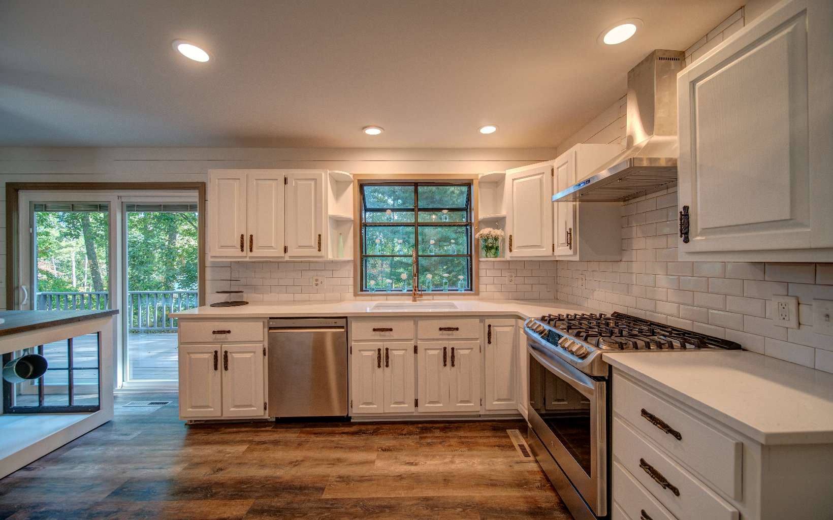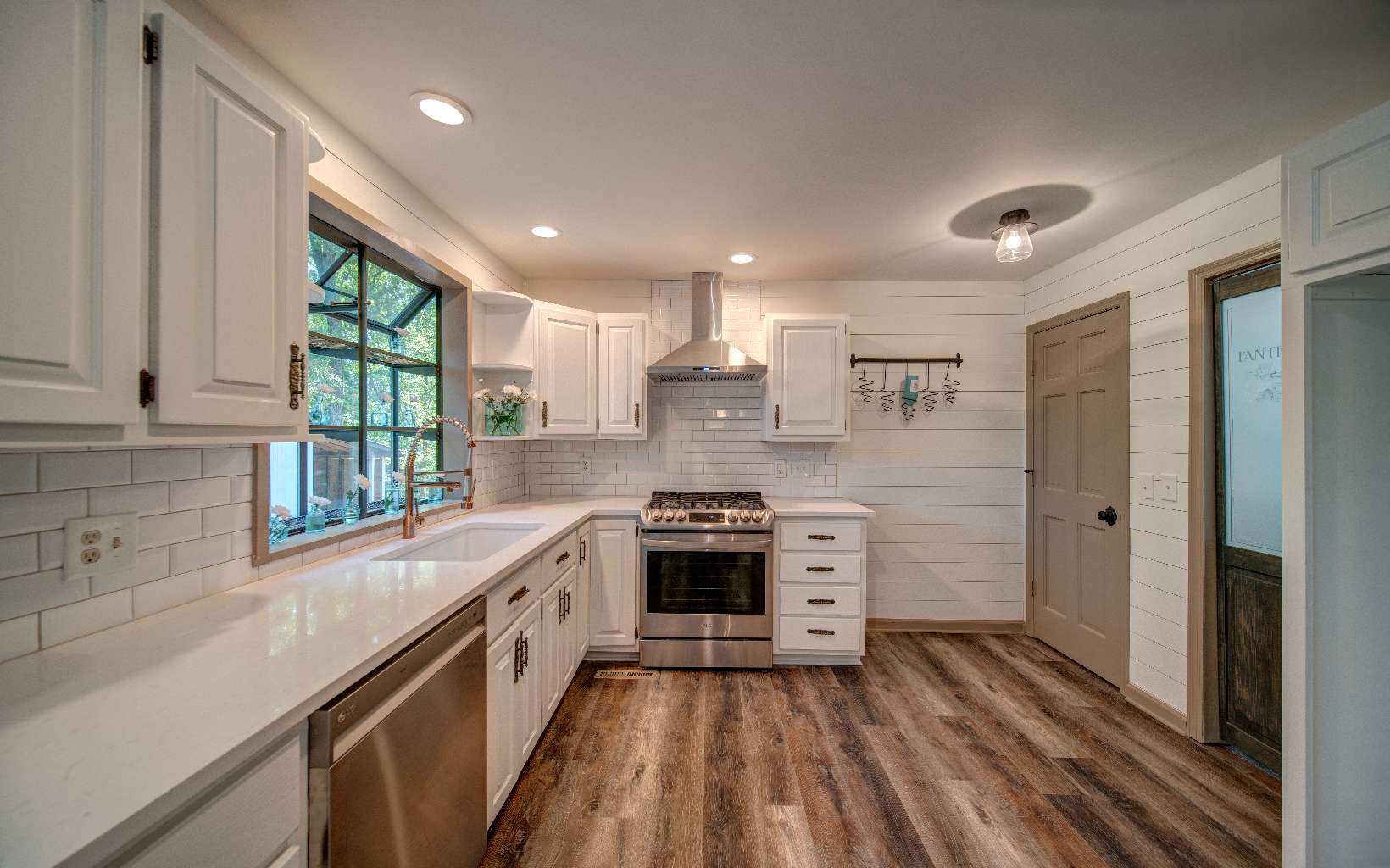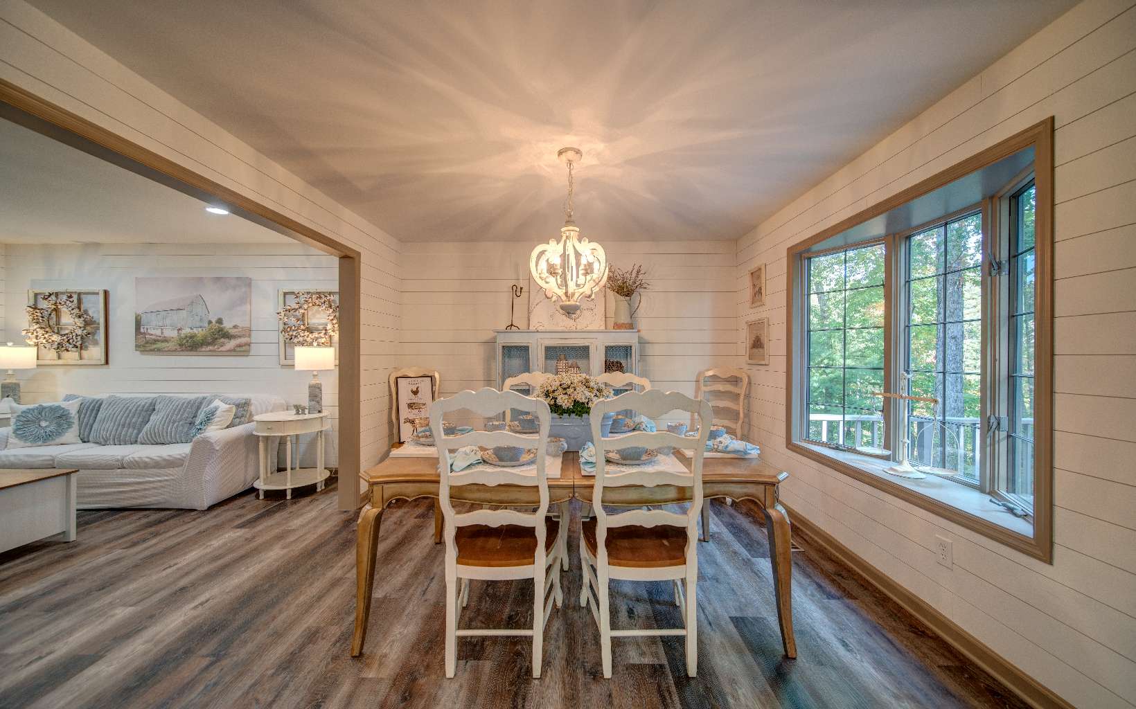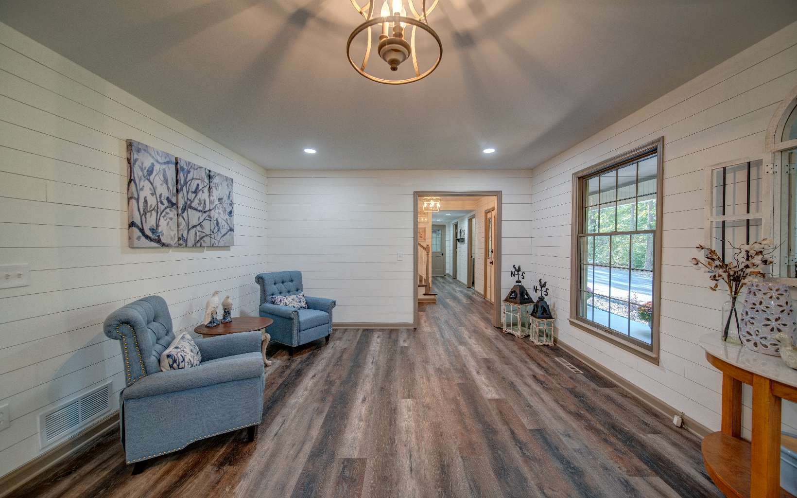 BEAUTIFUL just renovated modern farmhouse conveniently located within walking distance to popular events on Main Street yet located at the end of a quiet single street cul de sac. This roomy home offers 2 large ensuites, an in-law or income producing basement apartment with efficiency kitchen and private entrance, an additional bedroom with huge closet upstairs and 2 additional flex rooms to accommodate a large family. The gorgeous modern bathrooms attached to the primary suites are huge and amazing and total number of bathrooms is 4 1/2. The farmhouse features a large kitchen with a wonderful walk in pantry, quartz countertops, gas range, herb window and a large island that can moved around where needed. A separate dining room with a large bay window for picturesque seasonal mountain views. Luxury vinyl plank flooring and shiplap walls throughout. Laundry on the main with lots of cabinets and closet space. Two new HVAC systems and water heater recently installed. Great workshop and storage building for all your outdoor needs in the backyard and a workspace and storage area in basement. Wait 'til you see the massive wrap around porch that ends in a private oasis complete with swing bed and curtains. Underground utilities. You'll love the convenience of deliveries to your front door from local stores and restaurants. If you love the decor of this incredibly designed home, most items are available to be sold with home.