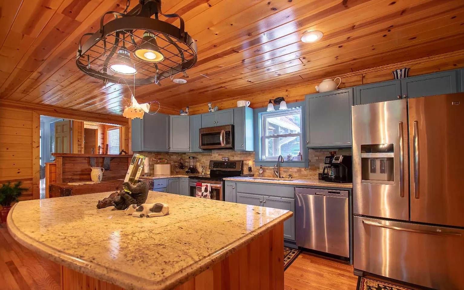 LAKEFRONT HOME! This home features a lake view from every room! The large great room is perfect for entertaining or sitting by the fire and sipping coffee on chilly mornings. Split bedroom plan on the main floor with an extra bedroom with deck on the lower level. This home is fully furnished. This property also offers an outdoor kitchen/barbeque deck and fire pit to enjoy the lake and mountain views. There are extra sleeping quarters in the fully, furnished duplex that also have lake and mountain views and potential rental income. Don't miss this unique, lake property in the mountains!