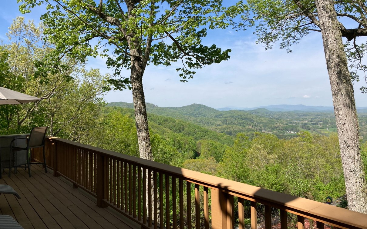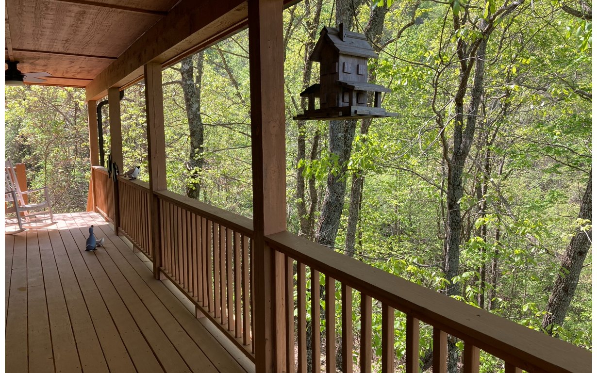 Million Dollar View in upscale gated community of Brasstown Heights. Located near John C Campbell Folk School, and nearby downtown Murphy, hospital, college and restaurants. When you walk onto this property, you immediately feel a sense of peace. Well maintained 2bd/3ba chalet with bonus rooms and laundry in basement (laundry hookup on main lvl as well). Unique beautiful stone fireplace competes with the mountain views for attention in the spacous greatroom, central heat and air, wood floors on the main level, and large pantry. Full master suite upstairs with walkin closet. Wraparound deck and walking path among the trees to enjoy the serenity of the mountains. Only used part time by current owners. Furnishings negotiable.