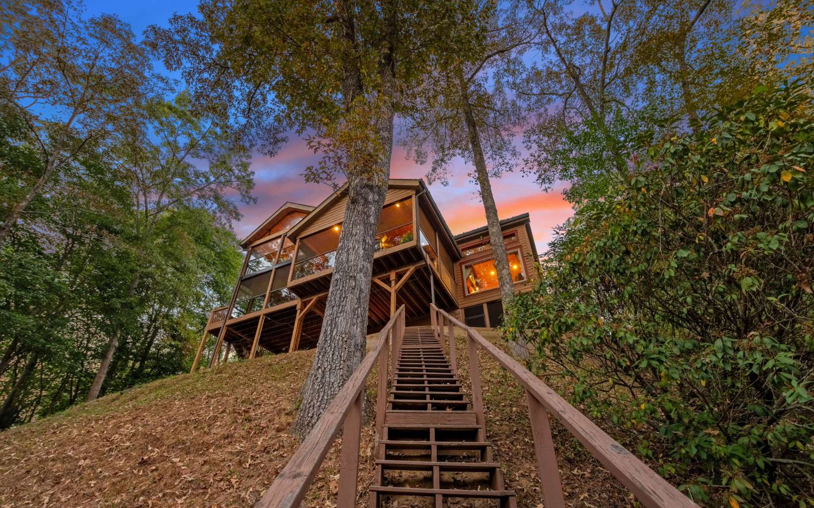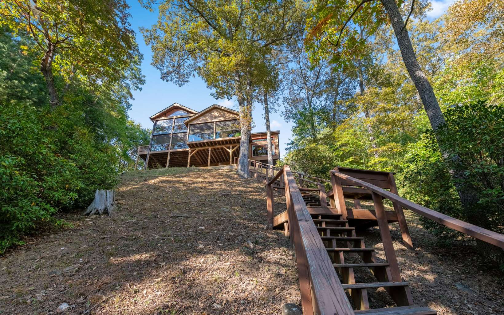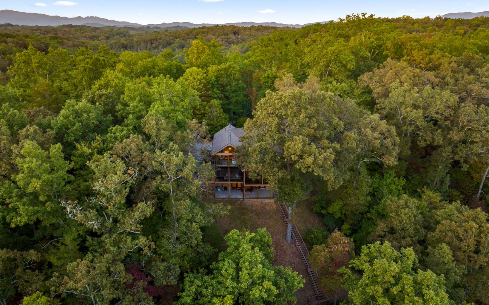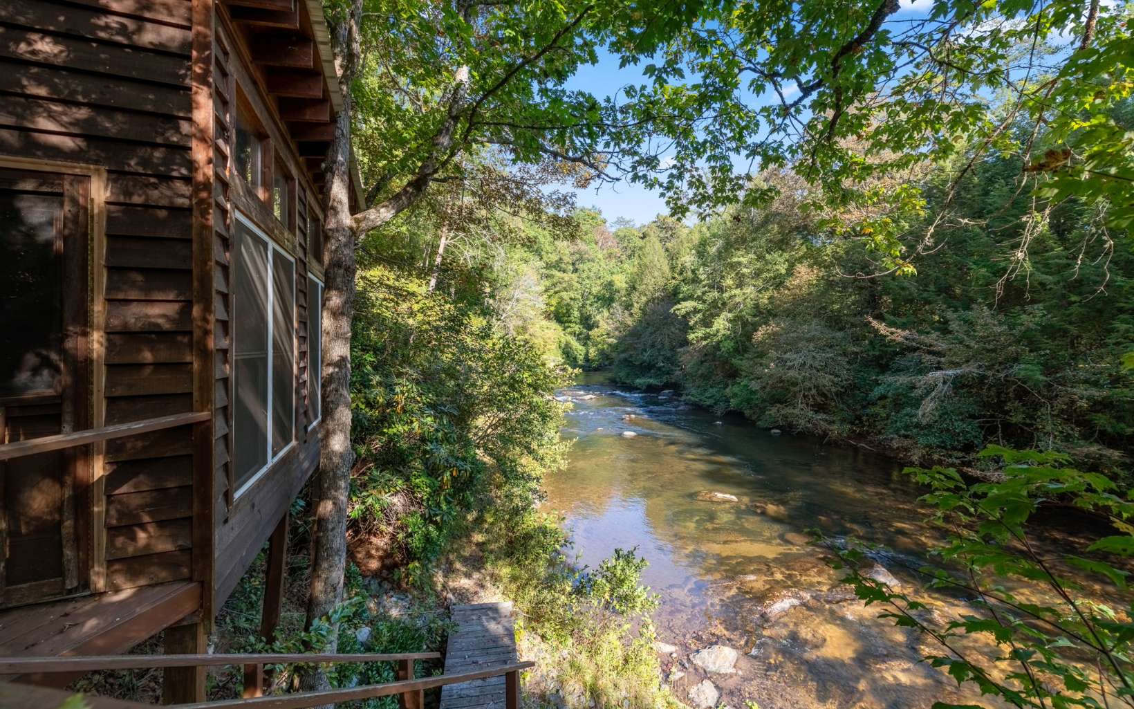 This gorgeous cabin has it all!! Situated on Fightingtown Creek where you hear the water flowing from the back porches.... Views of the Blue Ridge Mountains from nearly every room... Porches on every level that make it more relaxing to stay outside... There is a seperate road to access the creekside guesthouse. Or you can walk down the steps on the property to it and the creek. The guesthouse has an incinerator toilet.