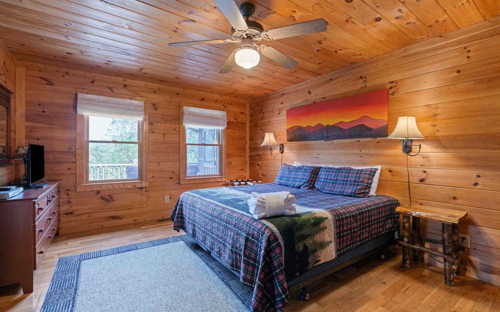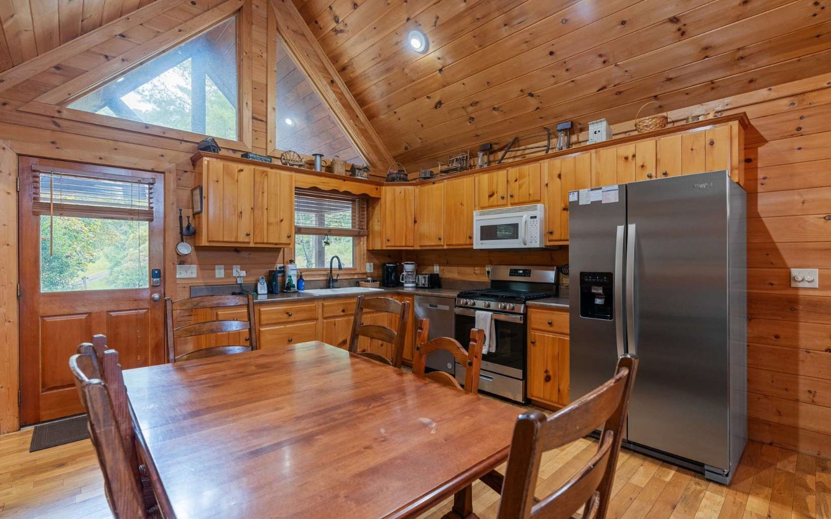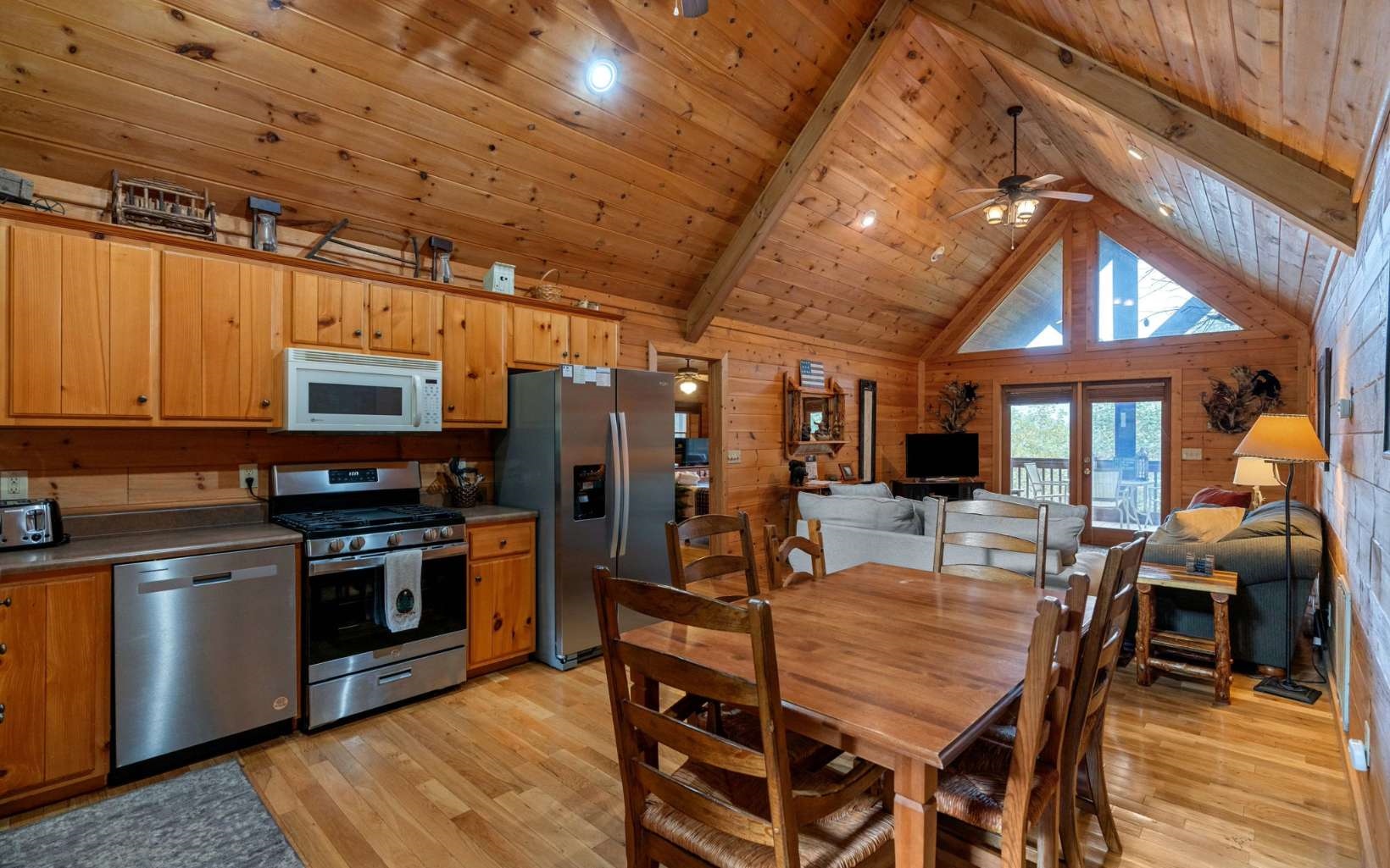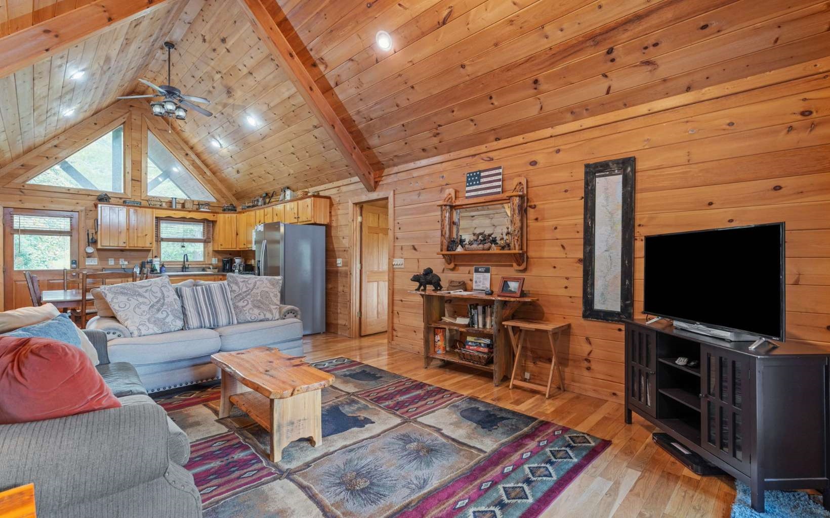 Welcome to the highly sought-after STR Mountain High Subdivision, where you'll find an extraordinary Long Range Mountain View cabin. This stunning 3-bedroom, 3-bath home is beautifully adorned with wood finishes, hardwood flooring, and tiled bathrooms, creating an elegant atmosphere. To add to its appeal, all new appliances and a new water heater have just been updated. As you explore this cabin, you'll be pleased to discover three ensuites, including two master ensuites and a half bath on the main level. One of these ensuites features a dual vanity, jacuzzi tub, and exquisite tiled flooring, adding a touch of luxury to your stay. This cabin is not only aesthetically pleasing but also conveniently located with paved access, making it easy to navigate. The warm and welcoming atmosphere lends itself perfectly to socializing and hosting events. The generously sized kitchen is ideal for meal preparation and gatherings with loved ones. To further enhance your experience, we have added a screened porch where you can relax and enjoy the surroundings.The finished basement offers additional space, featuring a game room and an an additional master ensuite.The rental potential of this cabin is limitless, allowing you to create the outdoor retreat of your dreams and enhance the breathtaking views it offers.To make your transition smooth, this property is being sold fully furnished. This Mountain retreat by downtown Blue Ridge, offers lots of outdoor and local activities.