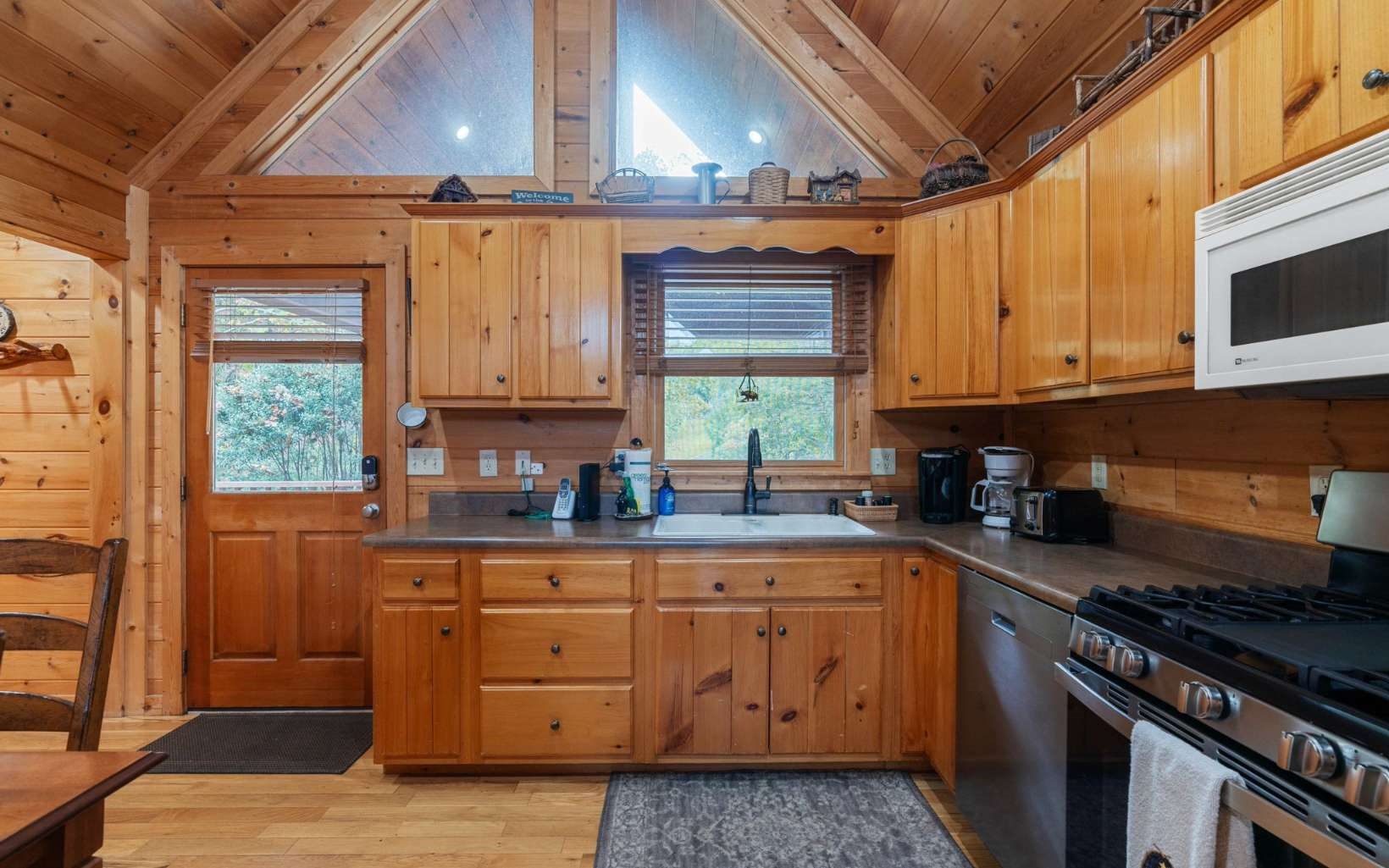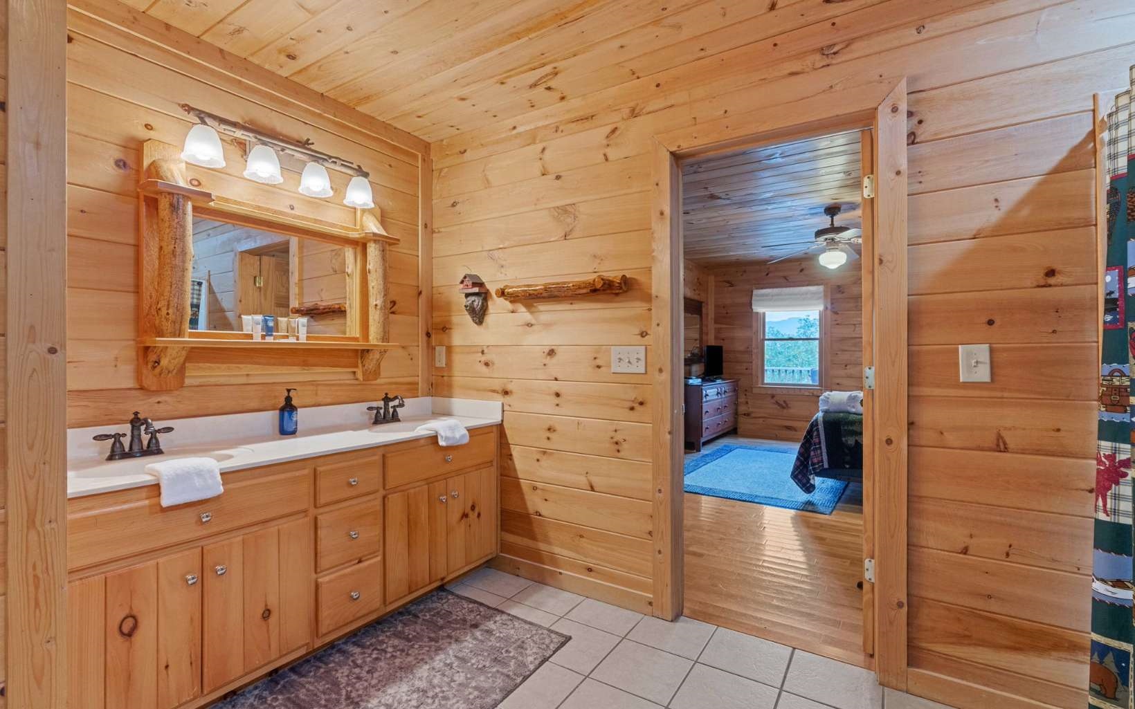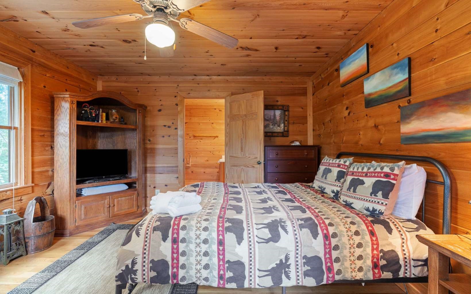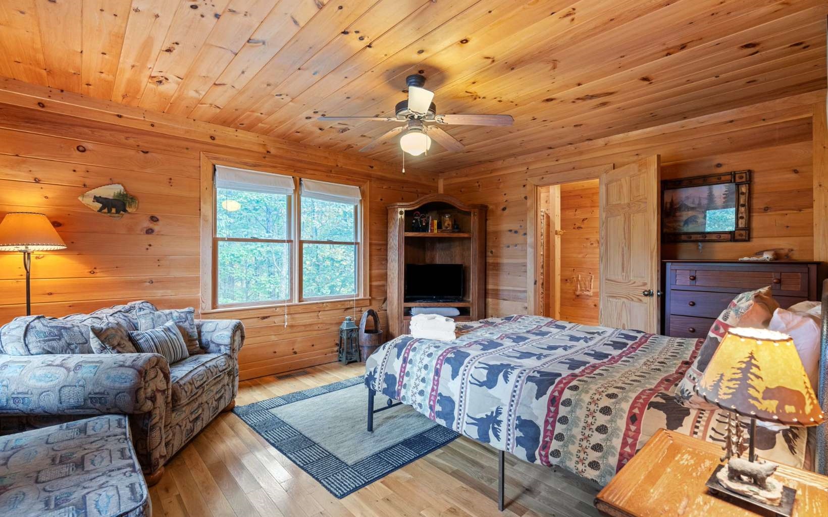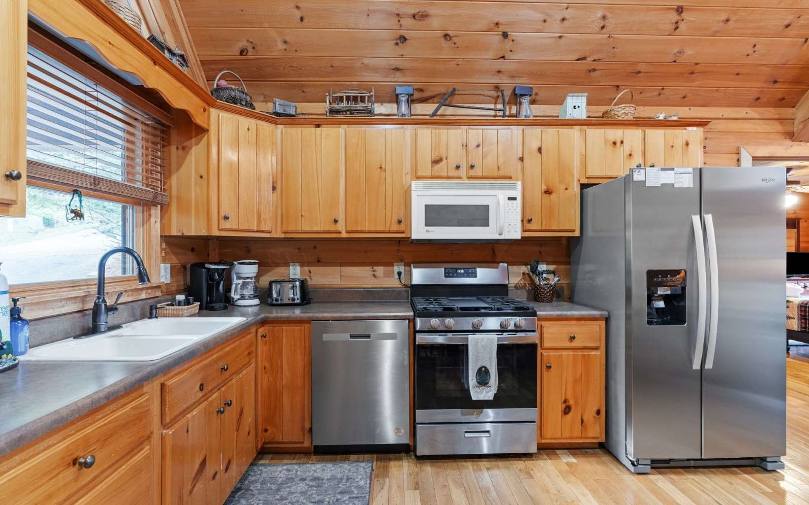 Welcome to the highly sought-after STR Mountain High Subdivision, where you'll find an extraordinary Long Range Mountain View cabin. This stunning 3-bedroom, 3-bath home is beautifully adorned with wood finishes, hardwood flooring, and tiled bathrooms, creating an elegant atmosphere. To add to its appeal, all new appliances and a new water heater have just been updated. As you explore this cabin, you'll be pleased to discover three ensuites, including two master ensuites and a half bath on the main level. One of these ensuites features a dual vanity, jacuzzi tub, and exquisite tiled flooring, adding a touch of luxury to your stay. This cabin is not only aesthetically pleasing but also conveniently located with paved access, making it easy to navigate. The warm and welcoming atmosphere lends itself perfectly to socializing and hosting events. The generously sized kitchen is ideal for meal preparation and gatherings with loved ones. To further enhance your experience, we have added a screened porch where you can relax and enjoy the surroundings.The finished basement offers additional space, featuring a game room and an an additional master ensuite.The rental potential of this cabin is limitless, allowing you to create the outdoor retreat of your dreams and enhance the breathtaking views it offers.To make your transition smooth, this property is being sold fully furnished. This Mountain retreat by downtown Blue Ridge, offers lots of outdoor and local activities.