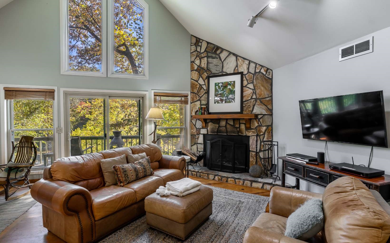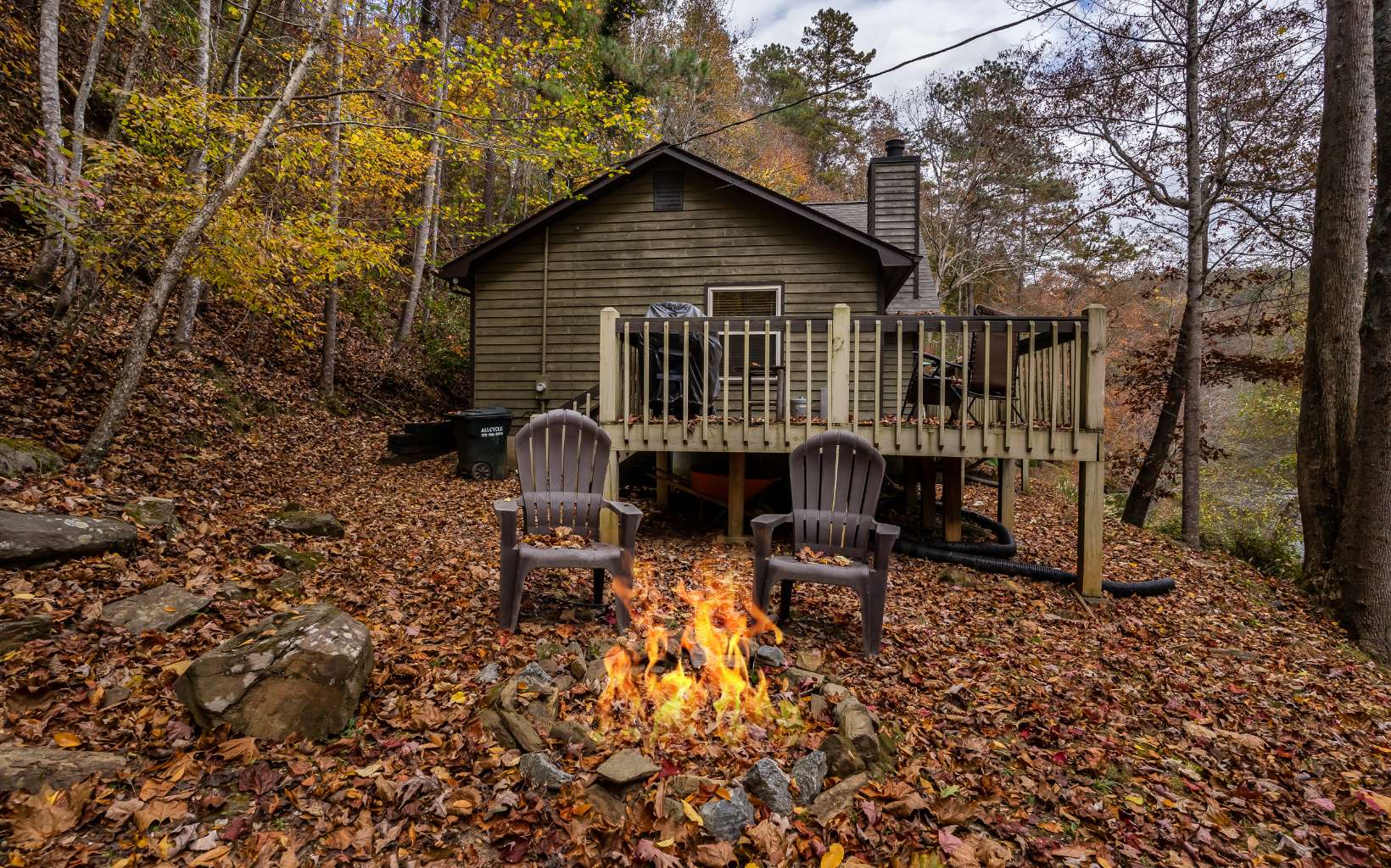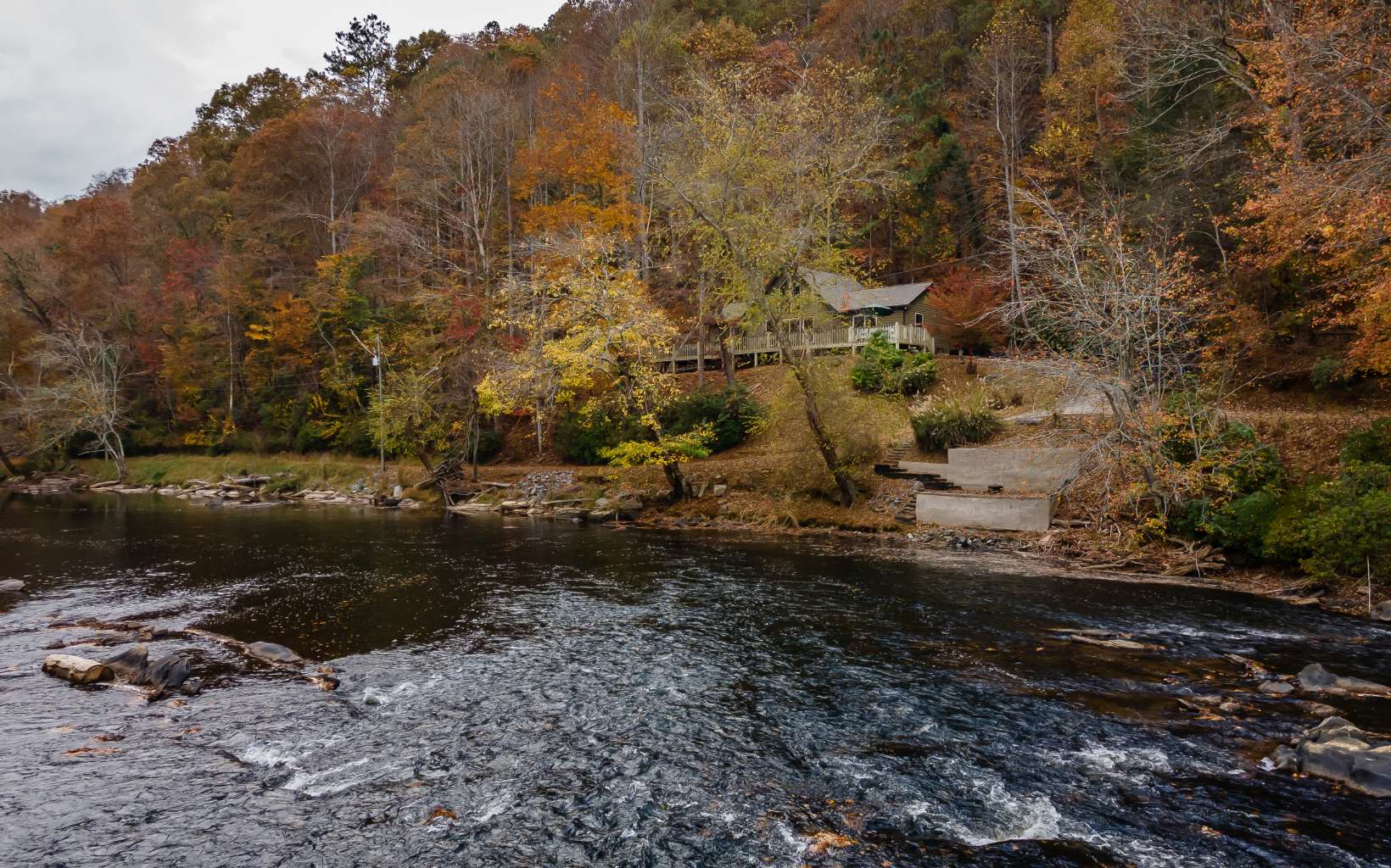 No rental restrictions! Perfect location perched over the Coosawattee River would make a perfect short term rental or vacation home. Rustic cottage with large open deck, firepit area and a patio down at the water’s edge. Open floorplan with wood burning FP, laundry, 2BR/2BA all on the main level PLUS 3rd BR/sleeping loft and views of the river from every room. Fish, tube, kayak, swim or just enjoy the rushing river right outside your door.