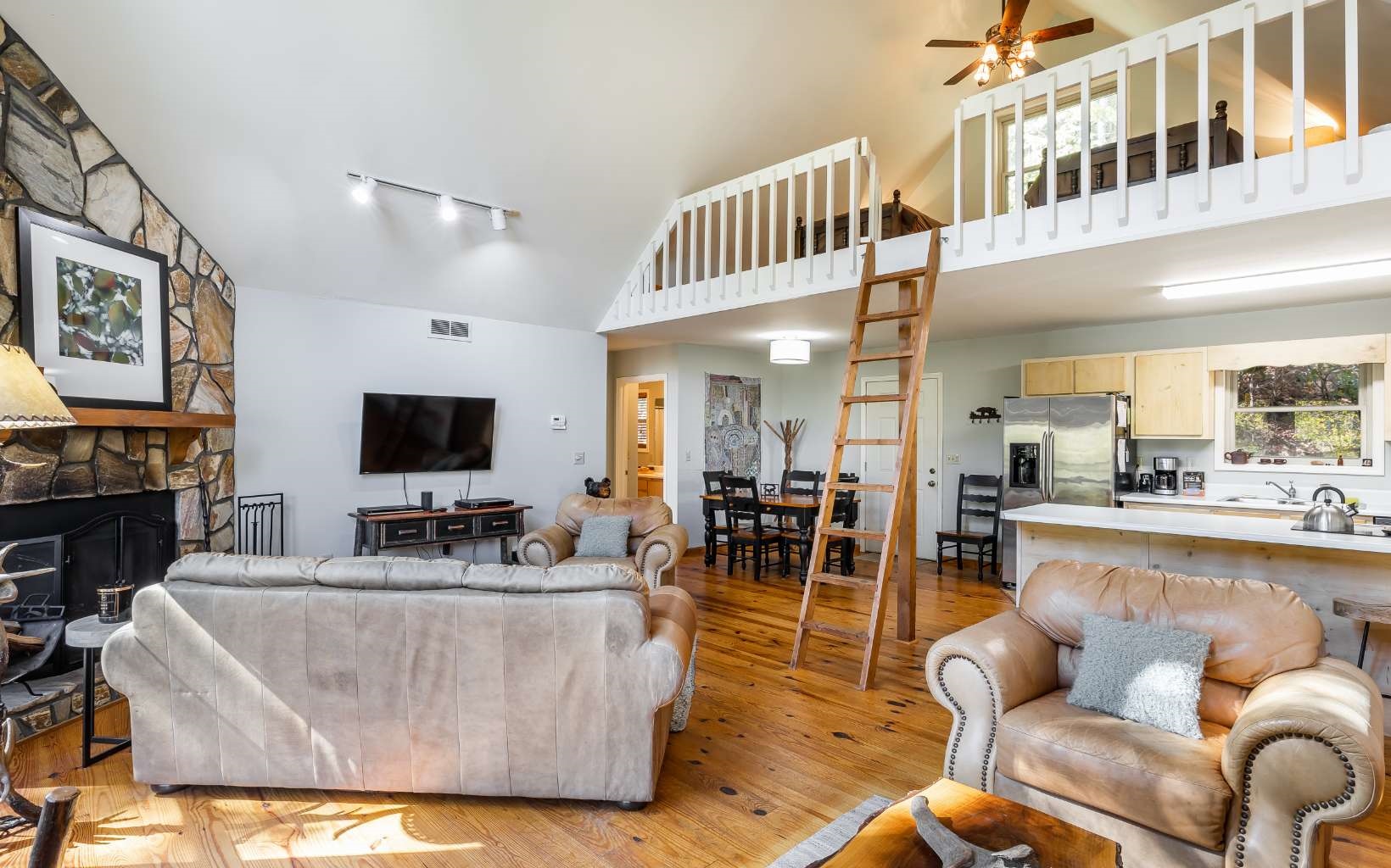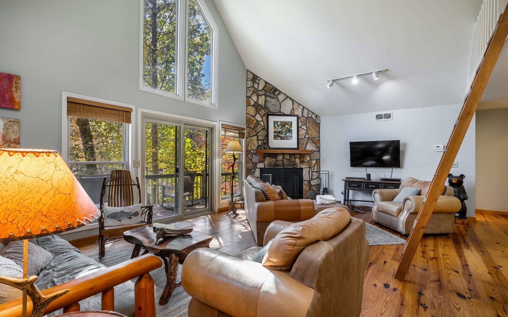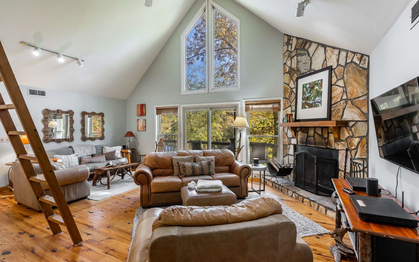 No rental restrictions! Perfect location perched over the Coosawattee River would make a perfect short term rental or vacation home. Rustic cottage with large open deck, firepit area and a patio down at the water’s edge. Open floorplan with wood burning FP, laundry, 2BR/2BA all on the main level PLUS 3rd BR/sleeping loft and views of the river from every room. Fish, tube, kayak, swim or just enjoy the rushing river right outside your door.