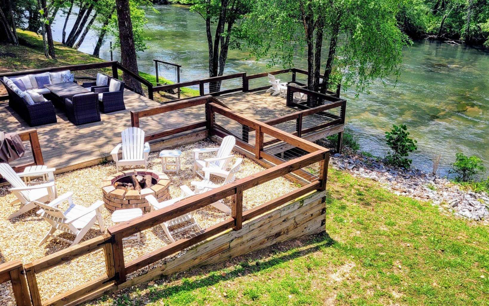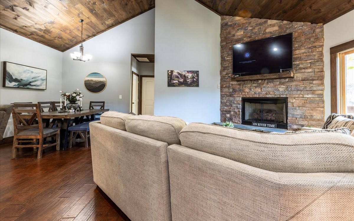 Welcome to your dream retreat on the serene Toccoa River! This stunning 4 bedroom, 4.5 bath sanctuary offers the perfect blend of rustic charm & modern elegance. Nestled in nature's embrace, this home is a haven for those seeking tranquility and breathtaking views. Step inside and be captivated by the warm and inviting ambiance. The open floor plan connects the spacious living, dining space & kitchen, creating an ideal environment for hosting. Natural light floods the space through large windows, allowing you to soak in the picturesque views that surround you. The main level offers 2 primary suites - imagine waking up to the soothing sounds of the river and step outside to enjoy your morning coffee while taking in the awe-inspiring beauty of the landscape. On the terrace level, you’ll find 2 more generously sized bedrooms and an additional living area that opens to the sprawling deck, where outdoor entertaining is elevated to an art form. Immerse yourself in nature's symphony as you listen to the gentle flow of the river and marvel at the stunning sunsets that paint the sky. Escape the hustle and bustle of everyday life and embrace the serenity that this home offers. Don't miss the opportunity to make this extraordinary retreat your own. Contact us today to schedule a private showing and experience the magic of this cabin firsthand.