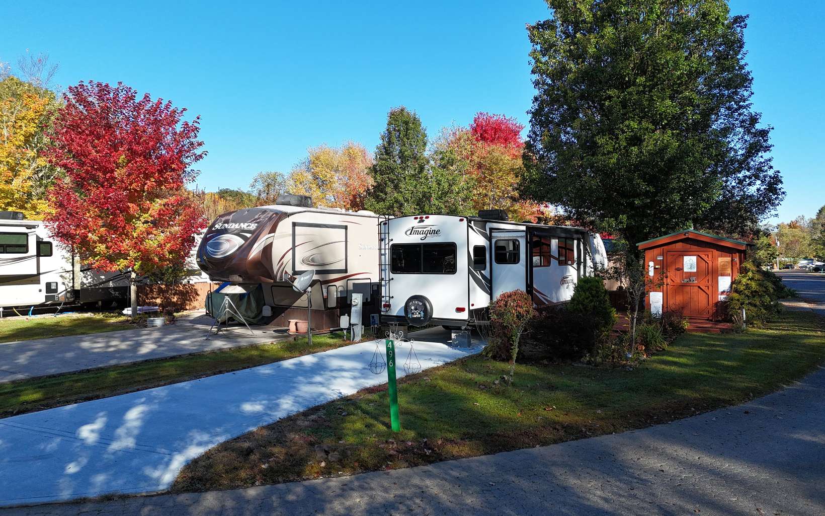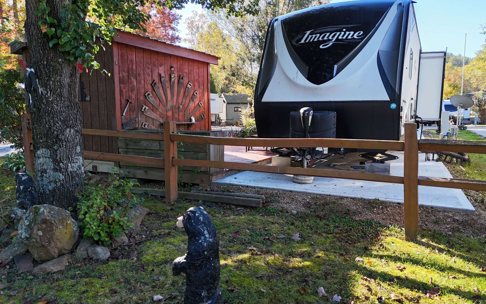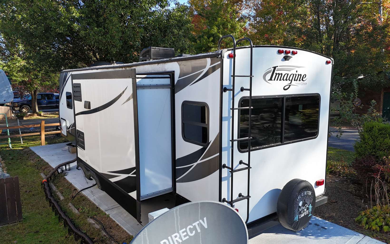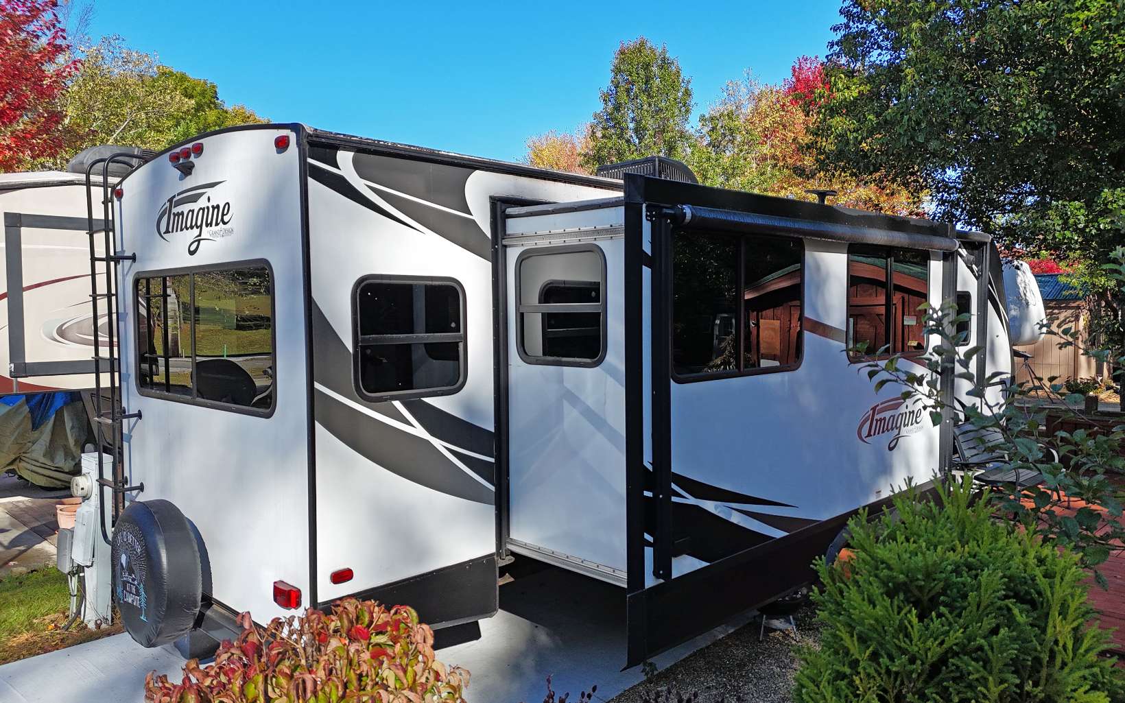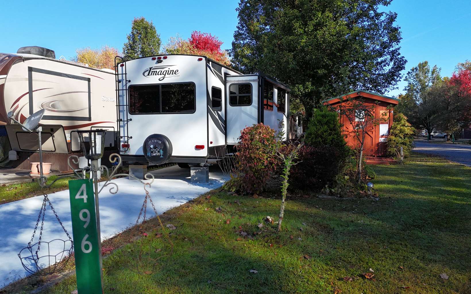 Introducing your dream RV getaway! This exquisite 2018 Imagine by Grand Design is on a Brand new concrete pad! Step inside this 1BR/1BA featuring an electric fireplace, well appointed Kitchen with a pantry. Outbuilding with electric and Lots of Storage! Blue Tooth Outdoor Speakers with 2 Awnings. Level Lot with Beautiful flowers and best of all it is within walking distance to the Clubhouse and Laundromat. The HOA Fee covers the water, trash, mowing, sewer and common area maintenance. Call me today!