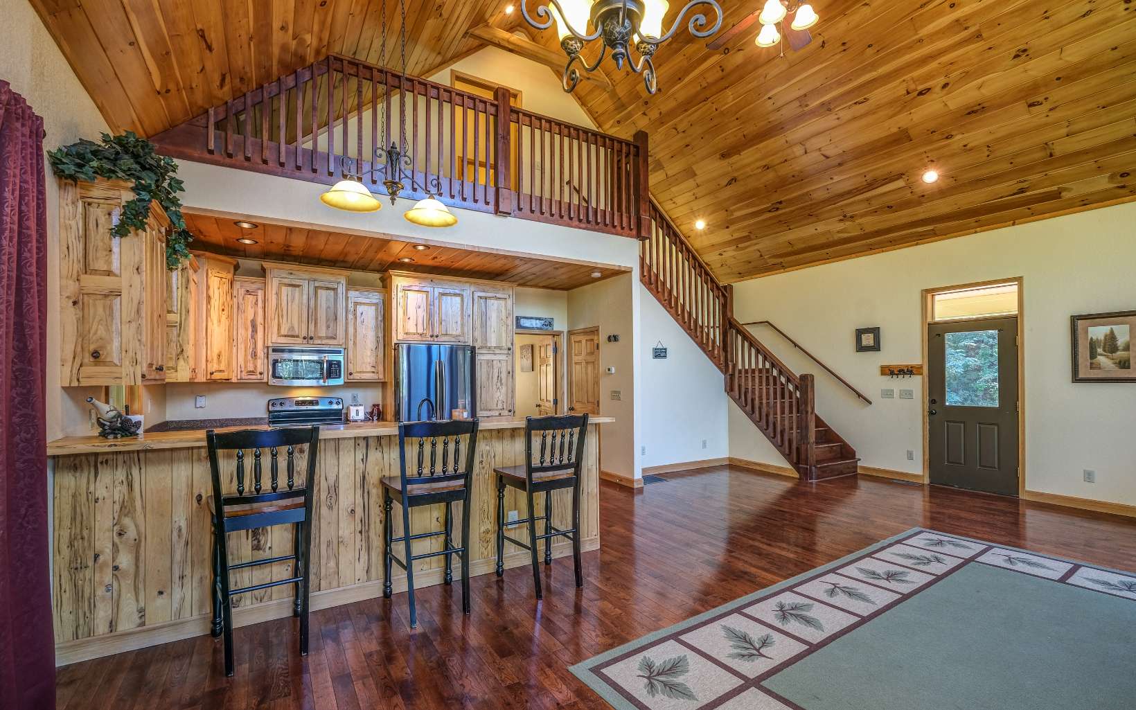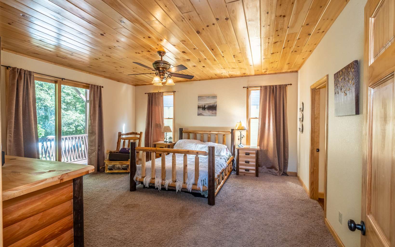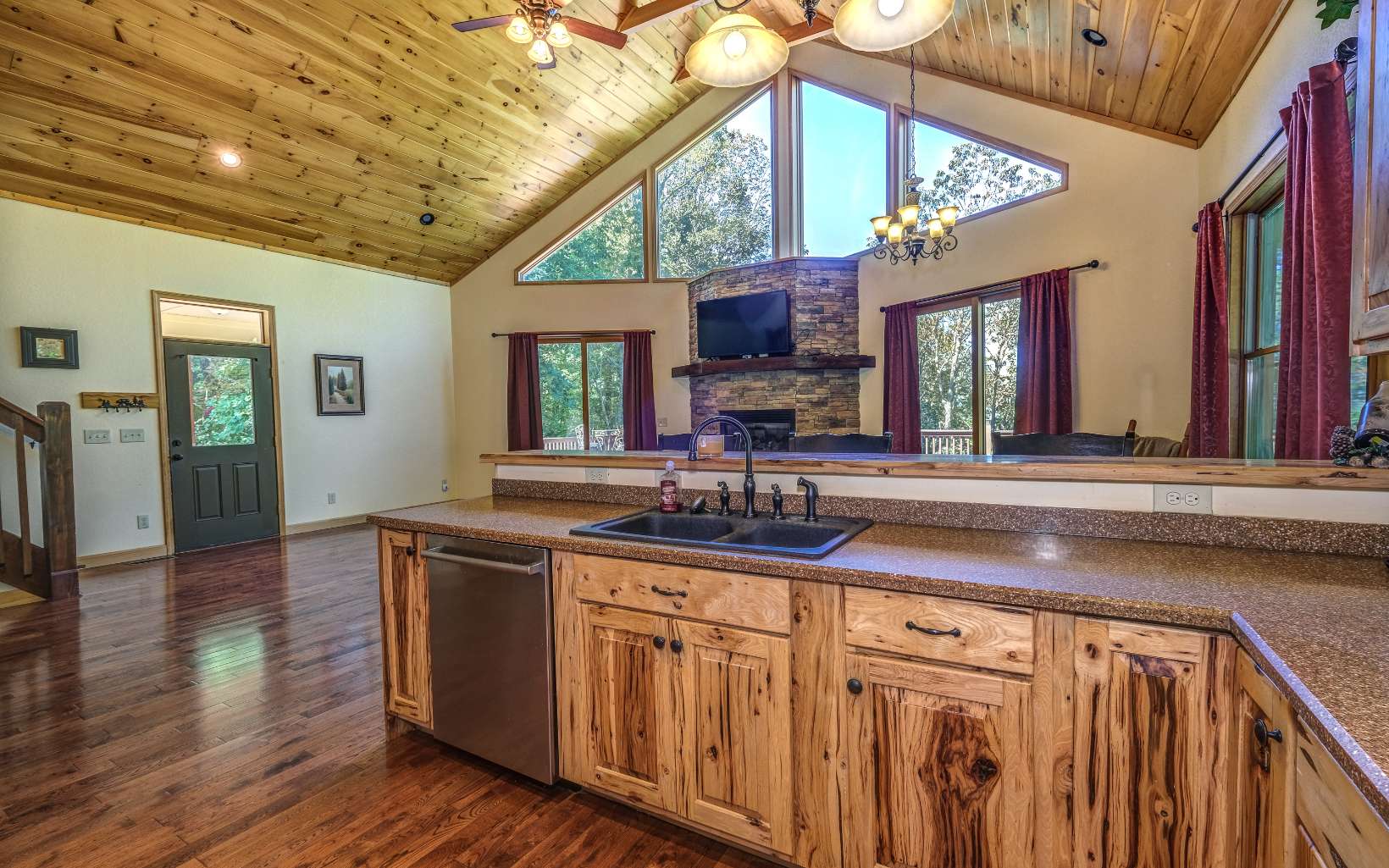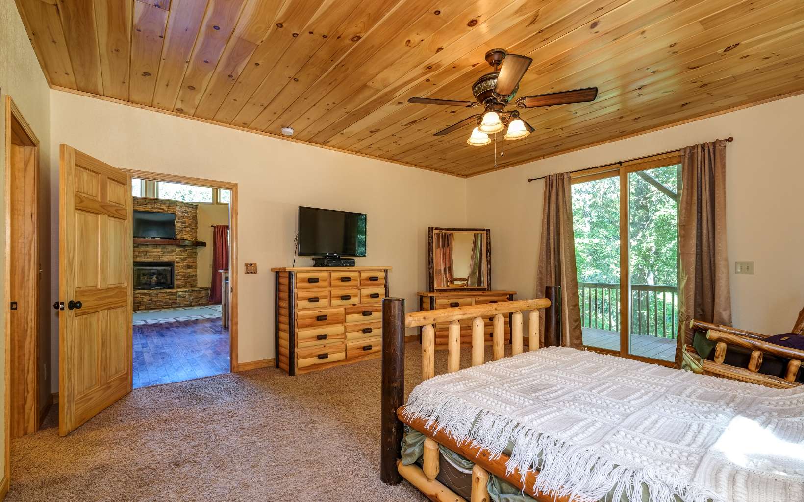Come check out this spacious and bright home located on a private wooded lot in Oak Ridge Estates. Step inside to a large great room with stone fireplace and lots of windows streaming in tons of natural light. The kitchen has beautiful wood cabinets and a bar with seating. The master suite is located on the main level with a large walk-in closet full bathroom with a tiled shower. Upstairs you will find an open loft area, 2 bedrooms that open up to a covered deck, full bath situated in between the bedrooms. The finished basement has a large great room with stone fireplace, sliders leading to another deck, bedroom with attached full bathroom and a laundry/mechanical room. New roof installed in September 2023. Outside there is a concrete driveway leading to 2-car garage. This home has so much to offer with large living space and outdoor areas for relaxing in the sun or entertaining.