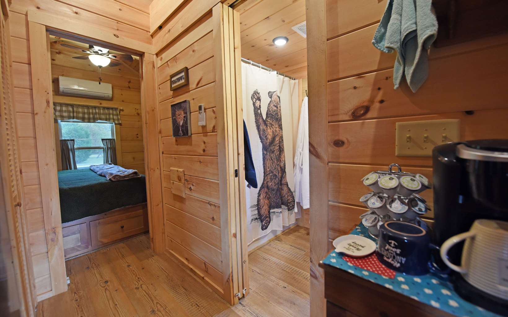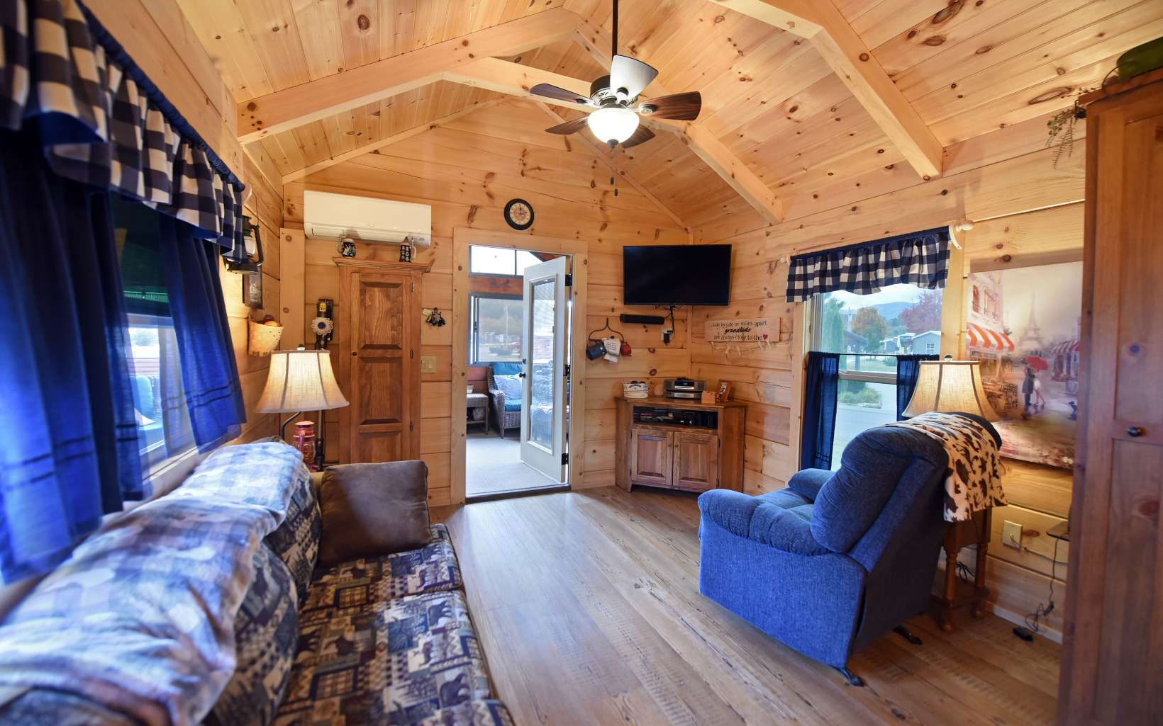 Welcome to Crossing Creeks RV and Spa. Make it your home away from home or full-time, like the sellers who have made it their full-time home for over 7 years. Step into a home that exemplifies thoughtful design and meticulous craftsmanship. Every aspect of this residence has been created with a keen eye for detail, from the well-considered storage spaces that enhance convenience to the superior insulation that ensures year-round comfort. Those with a penchant for organization will appreciate the thoughtful storage solutions seamlessly integrated into the property. An outdoor storage shed equipped with underground power provides a secure space for your belongings and could include storing a golf cart. Parking is a breeze with ample space to accommodate a 25-ft coach, driveway can be extended to accommodate a 33-ft. Sun porch transcends seasons & can be enjoyed year-round. This versatile space invites you to bask in natural light, relishing the beautiful scenic mountains in each season we have to offer. The mirror-tinted windows in this cabin provide ultimate privacy, gaze out without feeling exposed, and truly unwind from the outside world. The bedroom provides king-size space accompanied by desired storage all around. Explore beyond the immediate vicinity, the nearby town offers charming boutiques, historic sites, and an adventurous mountain trail. THE POSSIBILITIES ARE ENDLESS.
