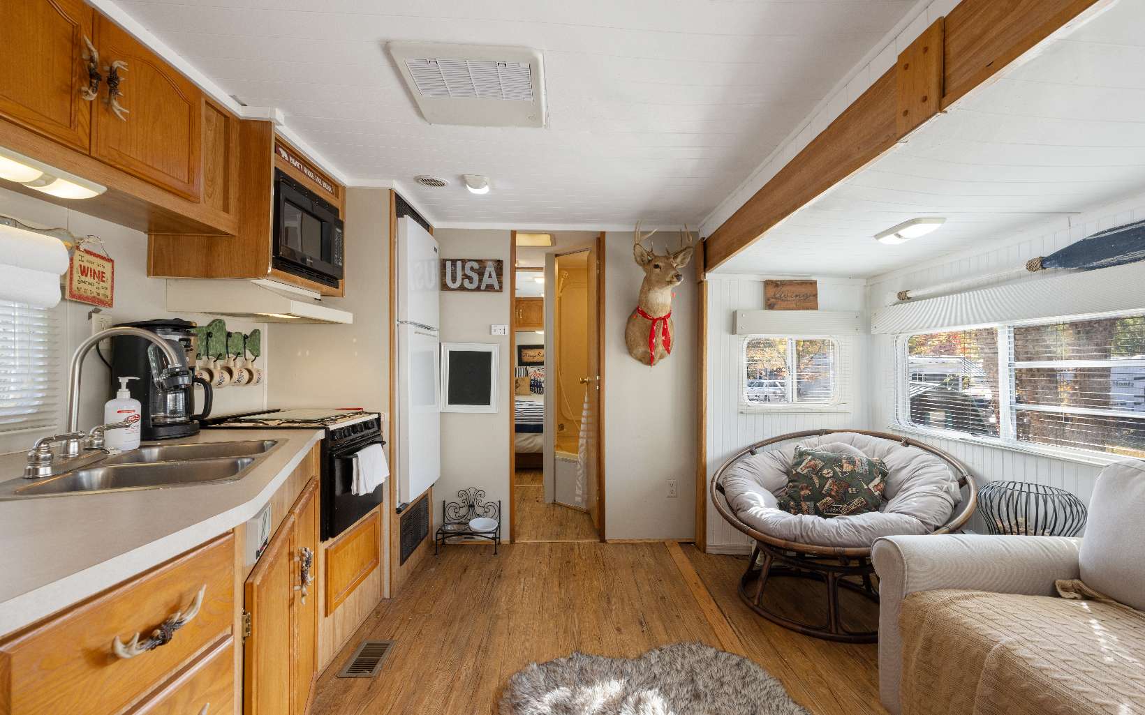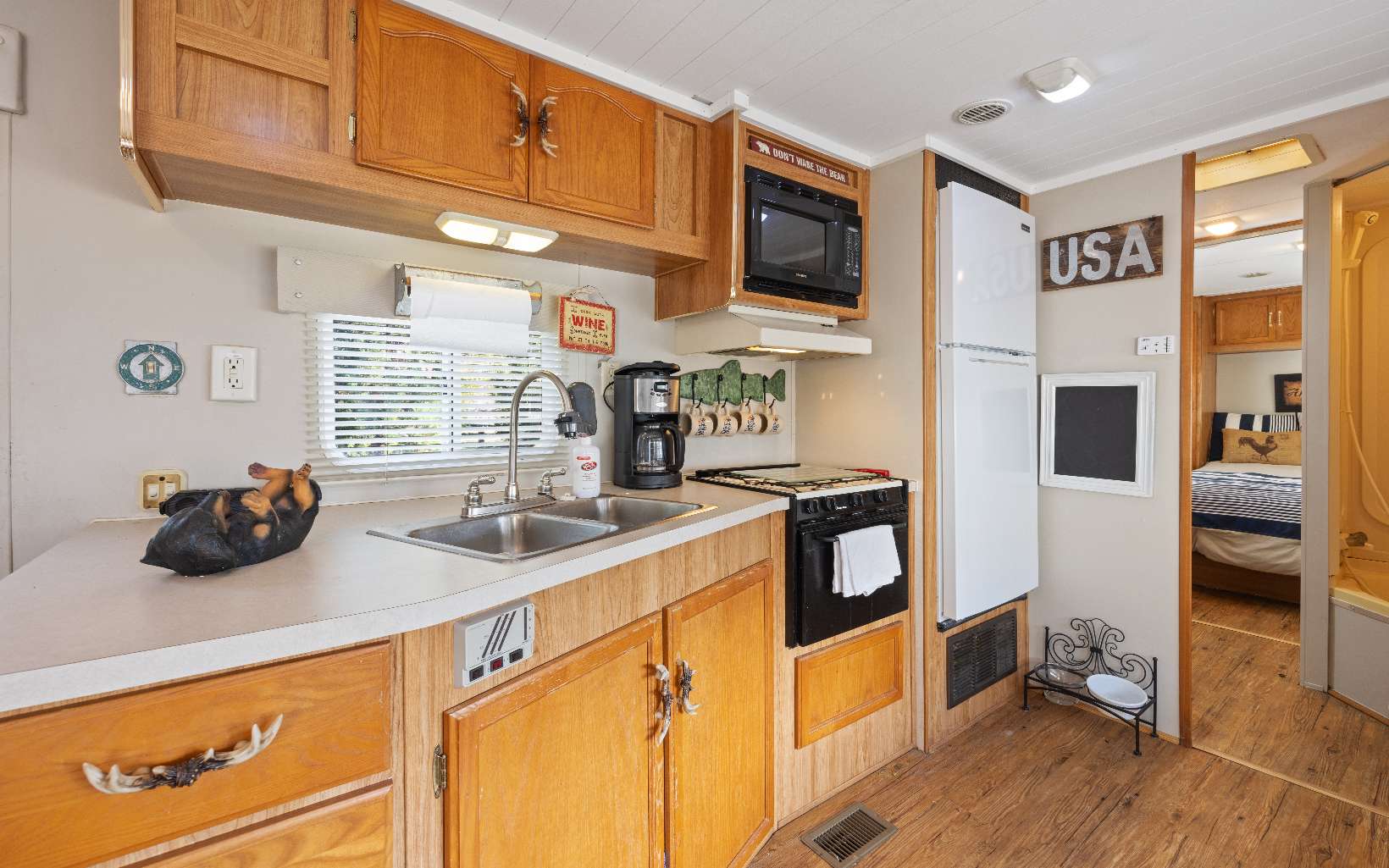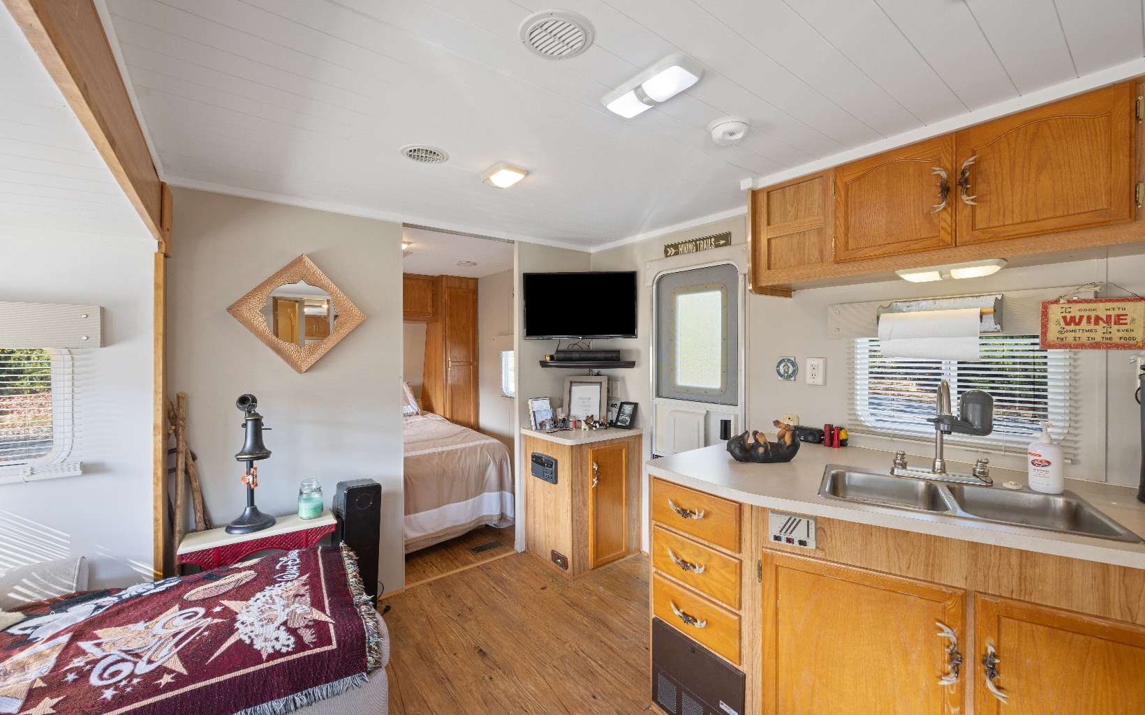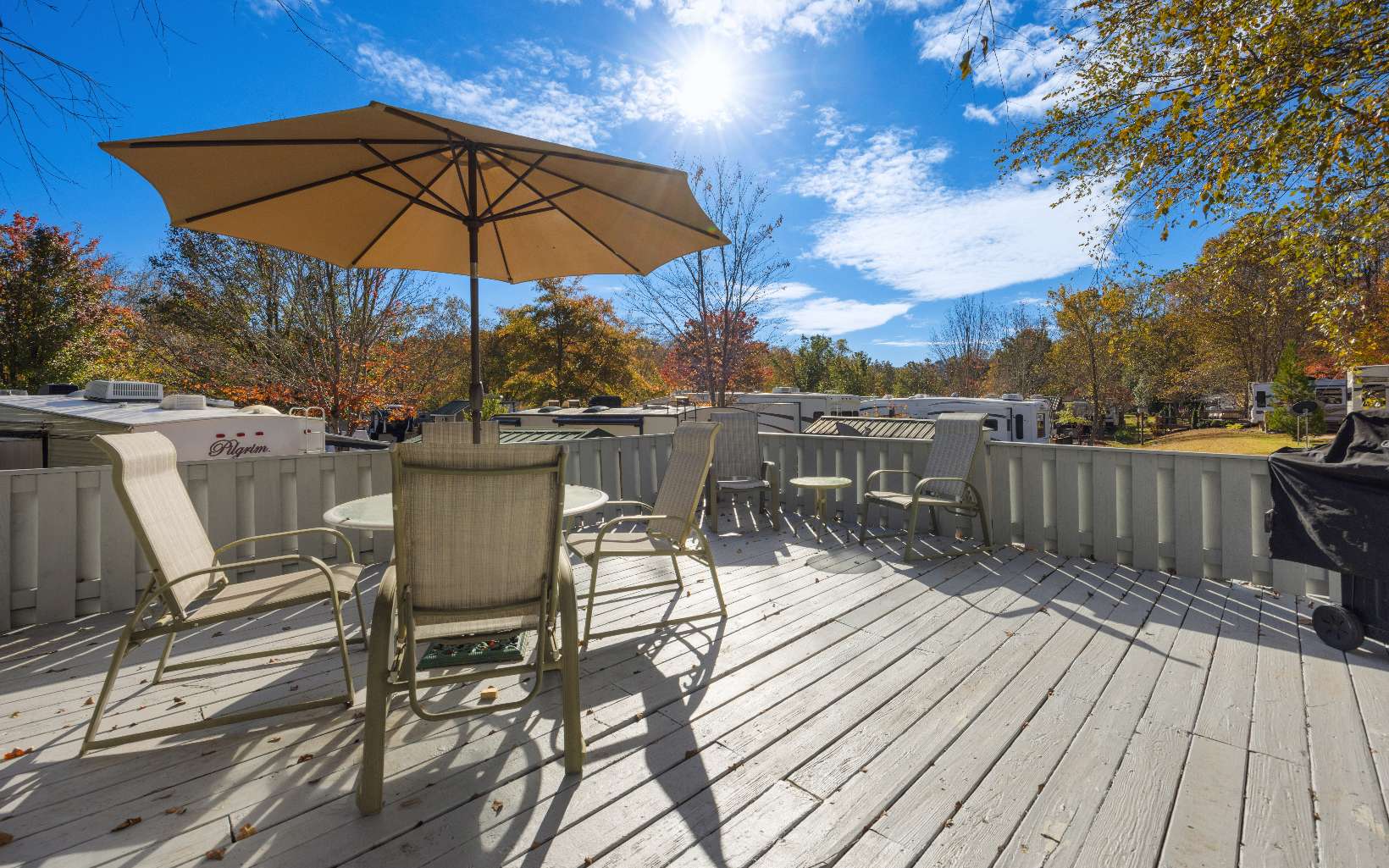 Welcome to River’s Edge…an RV community nestled along the Nottely River in the South-West section of Union Count…just moments to Vogel State Park, Helton Creek Falls, Brasstown Bald and Blairsville. This 2004 Travel Trailer is seated at the end of the Cul-de-Sac off of Timber Court with 2 Bedrooms and 1 Bath with slide out for Kitchen and Living areas. Master even has private door access onto decks. Outside you have decks galore to enjoy the great outdoors! The large party deck provides a welcoming sense of peace and serenity in the mountains. A storage shed offers loads of storage for all of your “stuff.” Rivers Edge boasts a Clubhouse and Pavilion with Shower and Laundry facilities and private community lake. HOA annual fee covers Water, Sewer, Trash, Lawn Care and common area maintenance.
