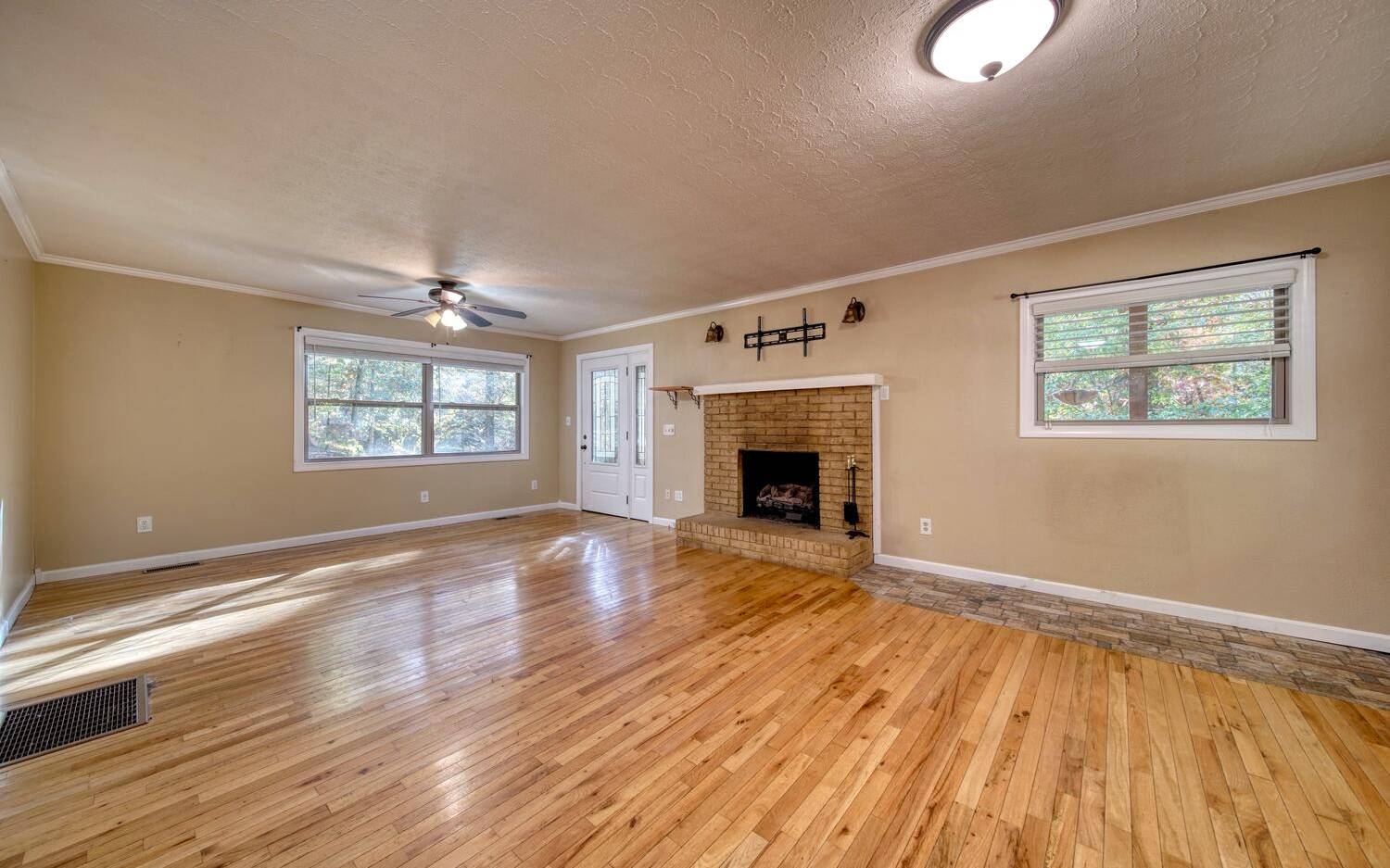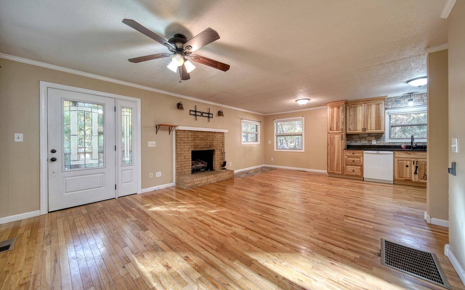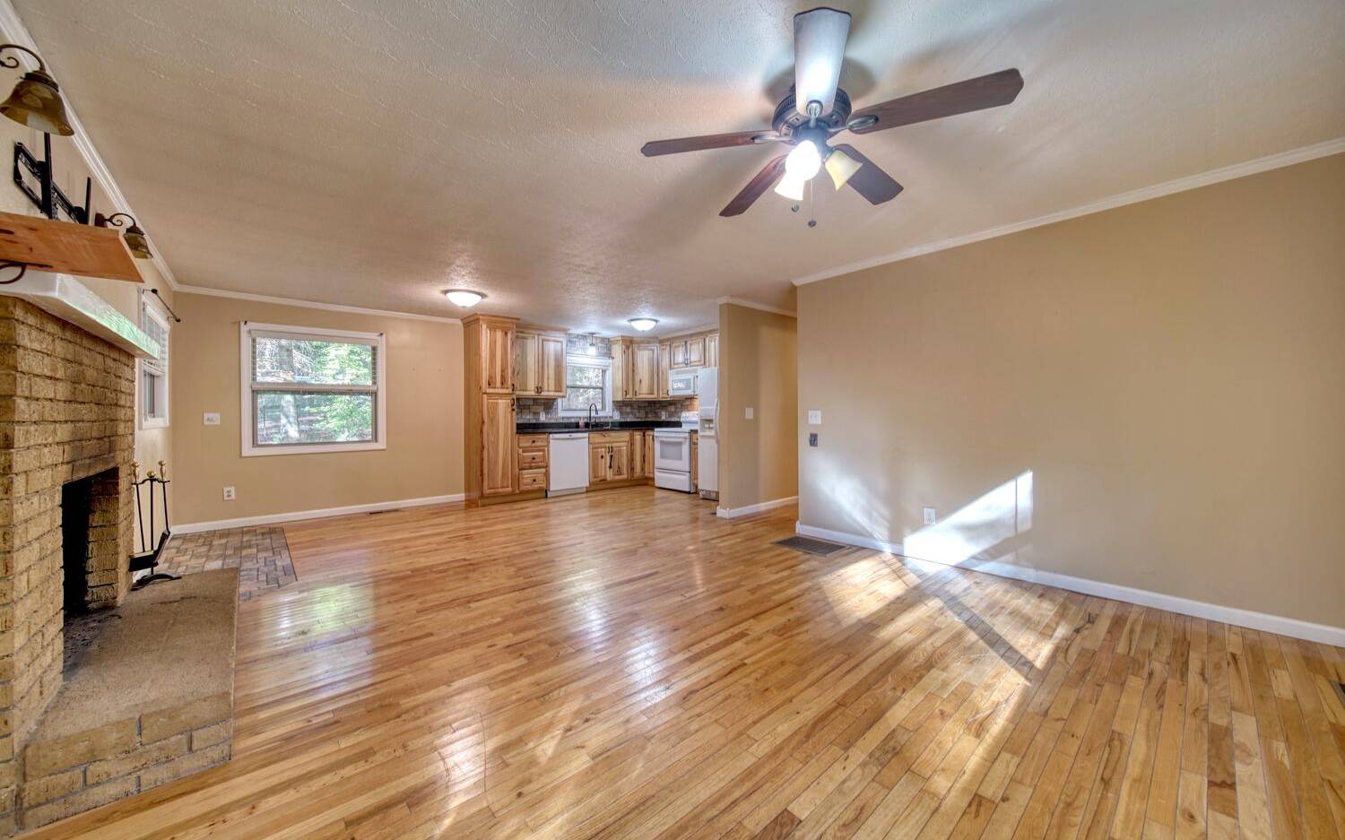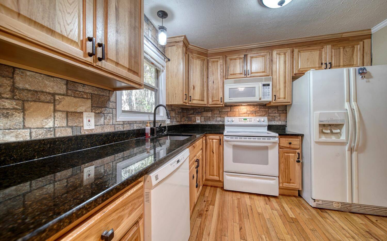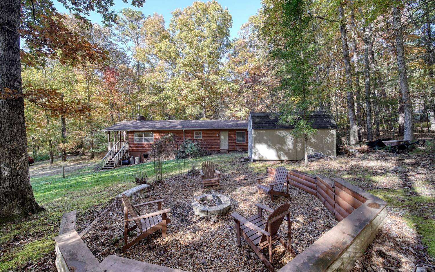 Just the Right Size ONE LEVEL 3 Bedroom 2 Bath Home. "D" Log Siding on the Exterior for that Mountain Cabin Feel. The Updated Interior has Sheetrock with a Nice Brick Fireplace, Updated Kitchen Cabinets with Granite Countertops, All Wood Floors, Cathedral Ceilings Updated Bathrooms and a Huge Master Suite! Newer HVAC 2022. Outside there's a Large Shed and a Firepit Area. Natural Landscape All Around with Seasonal Plants in the Flower Beds. Only 10 Minutes to Town. Call Now and Let's Get You in Your Very Own Mountain Home!