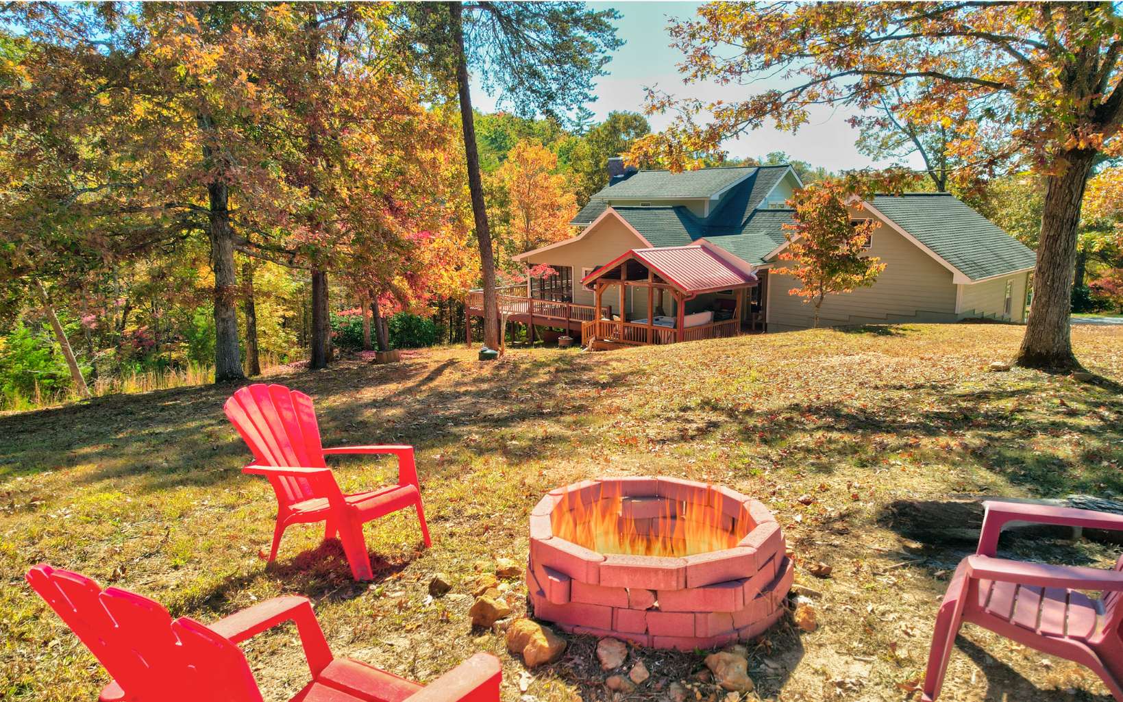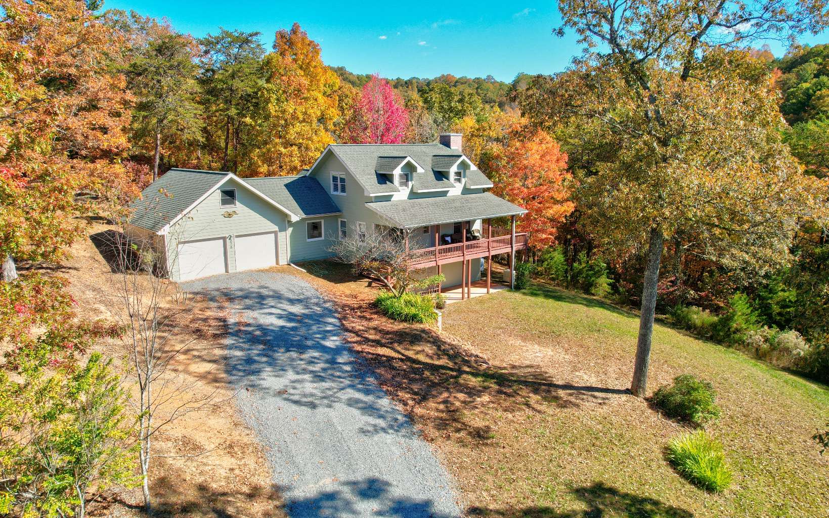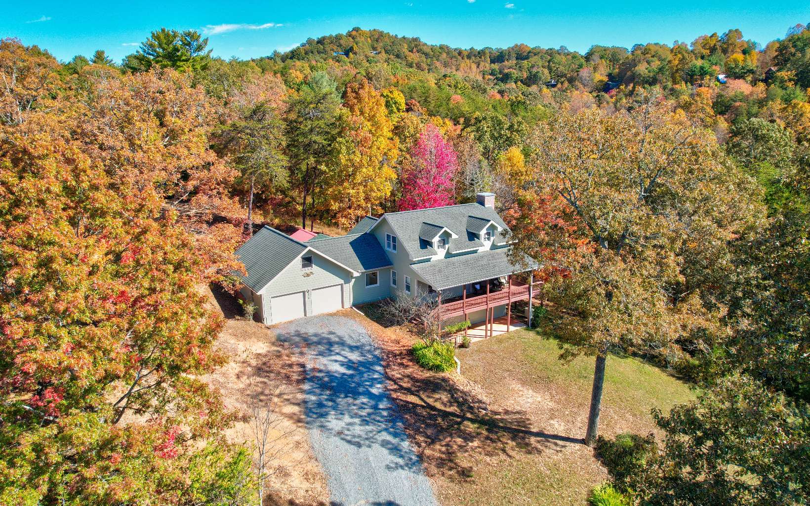 Welcome to your Mountain Home! 5 bedrooms and 3.5 bathrooms, 2 car garage on 3 Acres! Enjoy Year-Round Mountain Views, layered decks and porches, and a party porch with hot tub! Featuring nine foot ceilings on the main floor, spacious living areas including a living room with wood beams across the ceiling. Large kitchen and dining area has its own fireplace and cathedral ceiling with screened outdoor dining. Primary Bedroom on the main floor with on suite has tile showers and granite counter tops. Oversized bedrooms upstairs with mountain views. Lower Level has a large game room with lots of room to play, hang out and enjoy yourself! 2 bedrooms and a bathroom downstairs. Hot tub deck is on the main level and private! This home also features a yard, the firepit area also has a mountainview! Come fall in love with this mountain home ready for you! Sold turn-key!