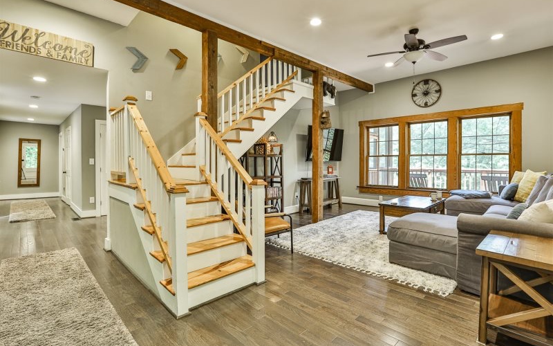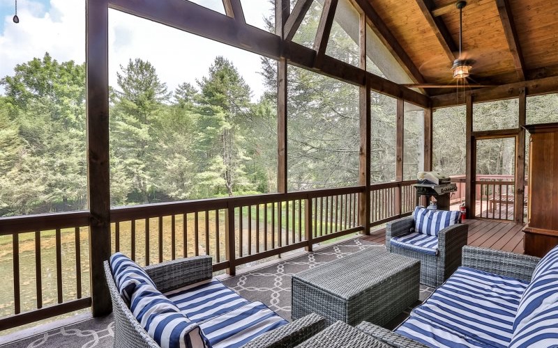 The best kept secret in North Georgia! Nestled on +/-5 acres with private pond & lighted fountain, this property offers the serenity & beauty of the mountains & peaceful water views you’ve been looking for! A perfect primary residence, 2nd home or an investment (currently in successful rental program), Mountain Spring Cottage offers the ideal blend of rustic cabin/farm house. Large family room w/ exposed beams & fireplace greets you upon entry. The chef-at-heart will appreciate the updated eat-in kitchen w/ SS appl, solid surface ctops, farm sink & gas cooktop w/vented hood. The kit and main flr primary suite w/marble shower & walk-in closet open to a massive screened porch overlooking the pond. Laundry & separate half bath are on the main floor. Upstairs offers: vaulted guest suite, renovated bath, large open family room plus sleeping loft (easily sleeps 4 adults). Hardwood floors throughout both levels. Climate controlled daylight, walk-out basement has ample room for add'l expansion to add bedroom/bath & more living/rec space. Existing oversized owner’s storage room can be used for storage/work room. Enjoy walking trails, lighted paths around the pond, firepit & hot tub overlooking the pond. Ample expansion areas for RV parking, garage, tiny home or add'l buildings. 2 miles off 76/515 w/paved access, under 10 min to d’town Ellijay, Blue Ridge, wineries, hiking, shopping, grocery, restaurants & more. Move-in ready & well maintained. Furniture negotiable w/ acceptable offer.