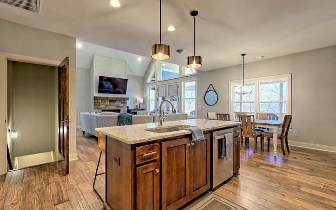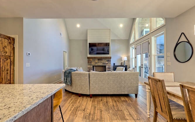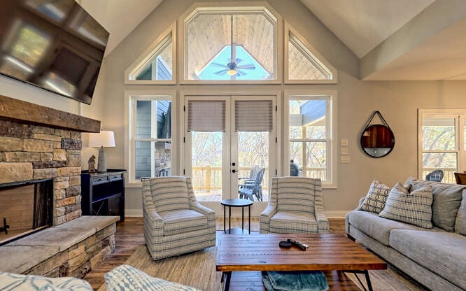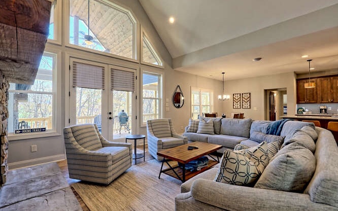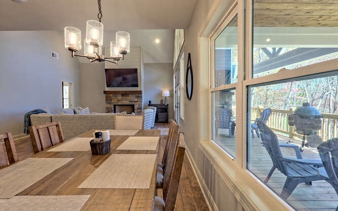 Newly Built, Fully Furnished, Custom Craftsman Style Home with 4 Bedrooms, 4 Bathrooms, Master on Main, and Stunning Seasonal Mountain Views. This beautiful new custom craftsman with a finished terrace level is the perfect place to vacation or call home. Nestled on 2.46 +/- ac with 4 bedrooms, 4 bathrooms, and master suite on the main, this property offers plenty of space for your family and guests. The home comes fully furnished and is equipped with a number of high-end features, including a commercial grade network, security camera system, 400 amp service, pre-wired for electric car charging, wired for 220 amp hot tub on terrace level patio, plumbed for wet bar/kitchen on terrace level, two wood burning fireplaces with gas start, plumbed for a gas range, Navien tankless water heater, beautifully stained Knotty Alder doors, and luxury LVT throughout the home. One of the highlights of this home is its breathtaking views from the beautiful vaulted covered porch with the wood burning fireplace. You'll never get tired of the scenery. The home also has a masterfully built retaining wall with a grand staircase that leads to an expansive paver terrace level. This is the perfect place to entertain guests by the fire pit or simply relax and enjoy the tranquil outdoors. The stunning views can be opened up for year around viewing with some canopying of the trees. This home is located within minutes of Young Harris College, Brasstown Valley Resort, Lake Chatuge & Crane Creek Vineyard.