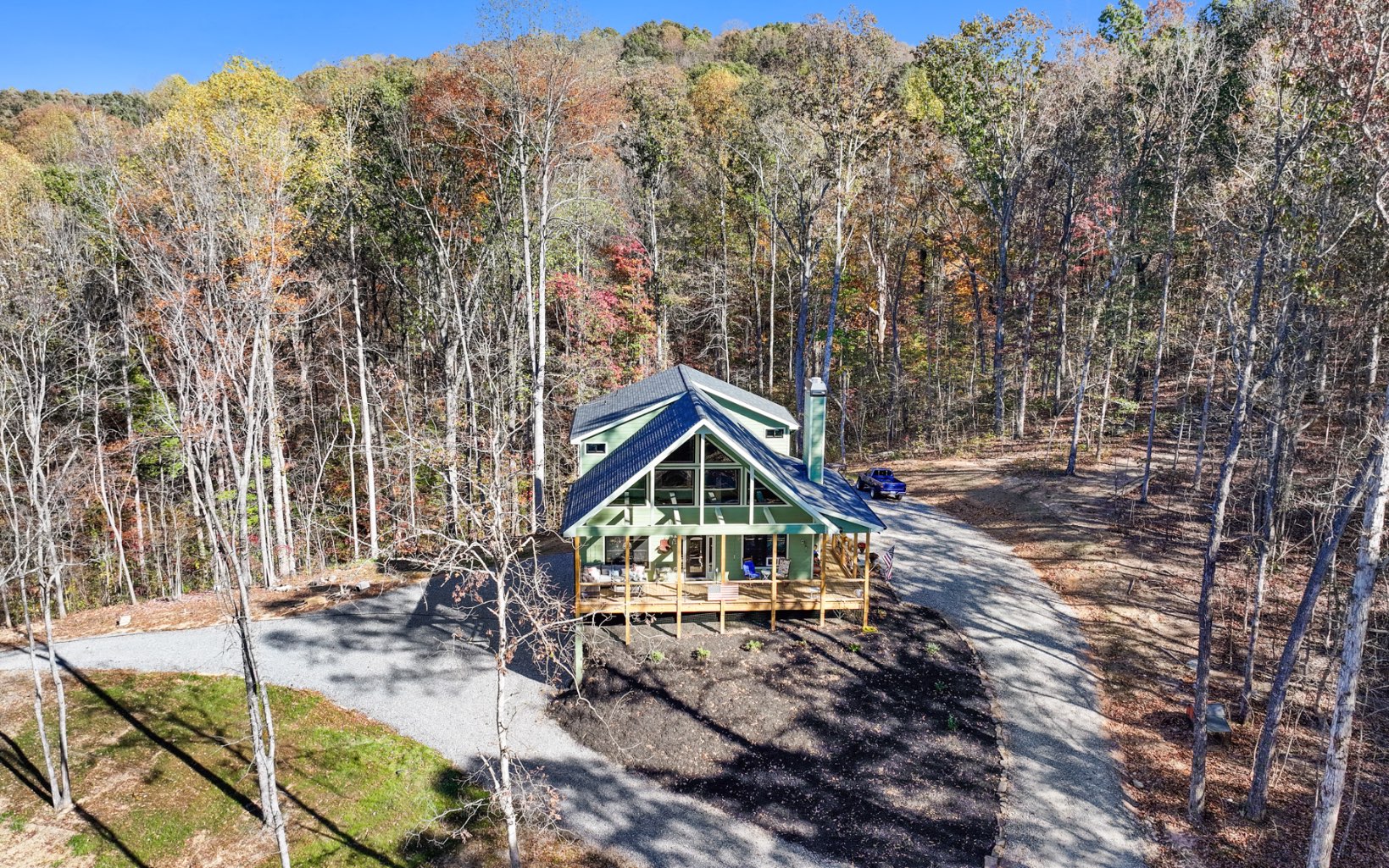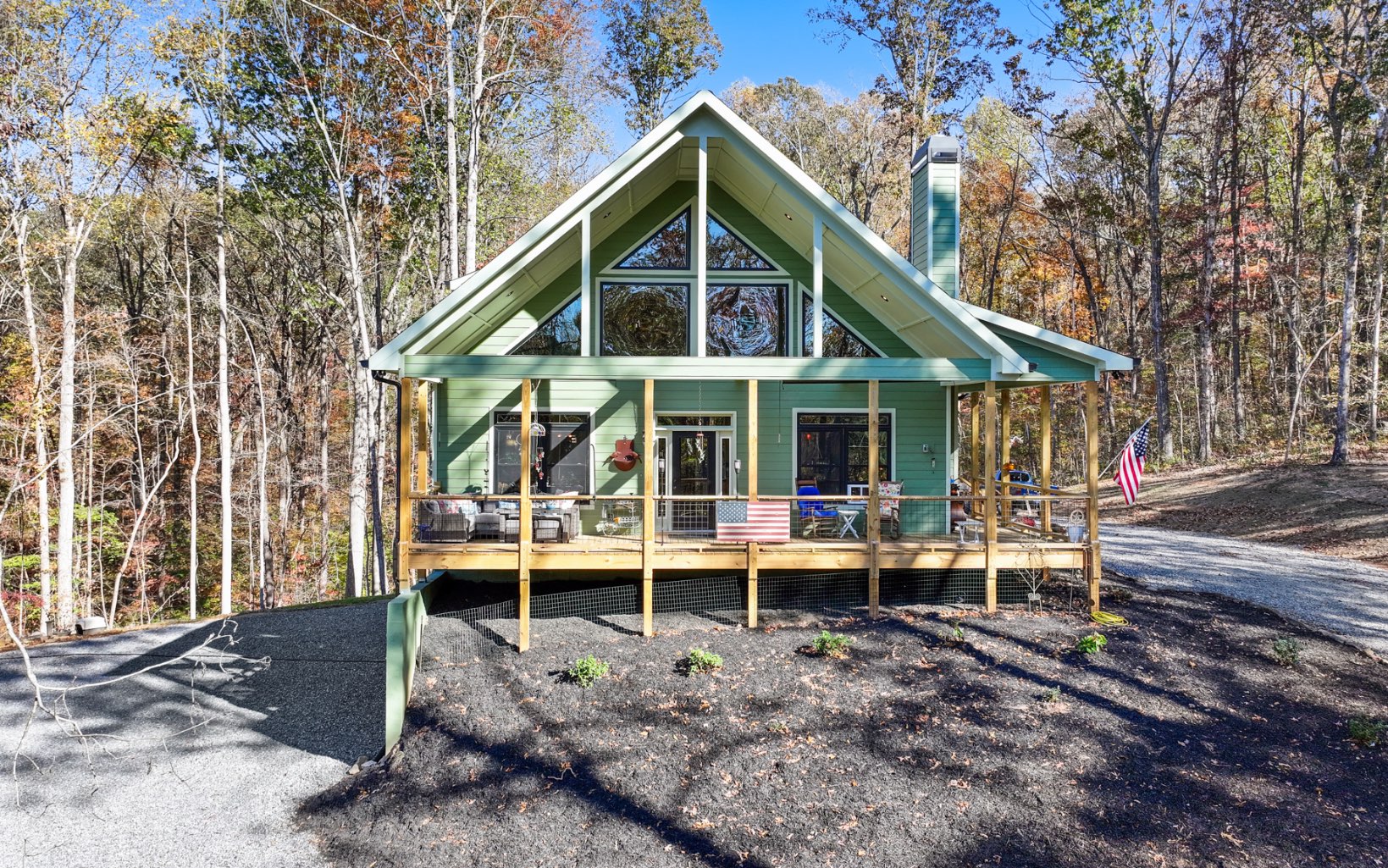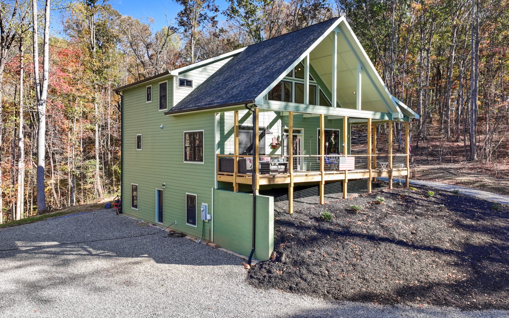 Welcome home to your private North Georgia Mountain retreat! This gorgeous chalet, built in 2023, is perfectly situated on almost 14 acres of unrestricted pristine acreage in Ellijay and Talking Rock Georgia. Built custom by the current owners, this 3 bedroom 2 bath home offers plenty of high end finishes: hand-selected granite countertops, soft close drawers, exquisite Cafe appliances in the kitchen, custom lighting, wood burning fireplace in the living area, over-sized wrap around porch, a full unfinished walk-out basement ready for a second kitchen/third bathroom/framed for extra bedrooms and living space, and so much more. Master suite with private deck and laundry room on the main floor for ease of access. The property is level and cleared in the front, with a current dog kennel area below the home. Note: kennels are not staying, but they are on a 22X30 concrete slab - a perfect start for a barn/RV space! The back of the property lays well with gentle rolling hills, mountain views with clearing, and a small spring. Very private location, but still only minutes to town. Make this your full time home or weekend getaway close to wineries, shopping, apple orchards, and all that Ellijay has to offer.