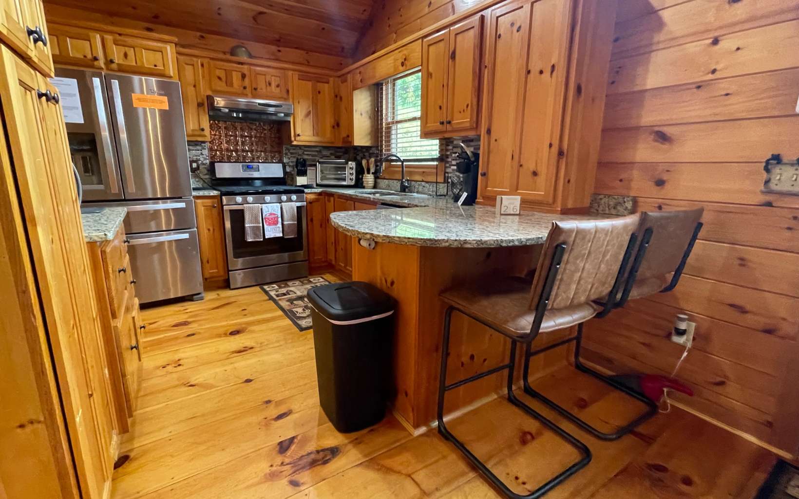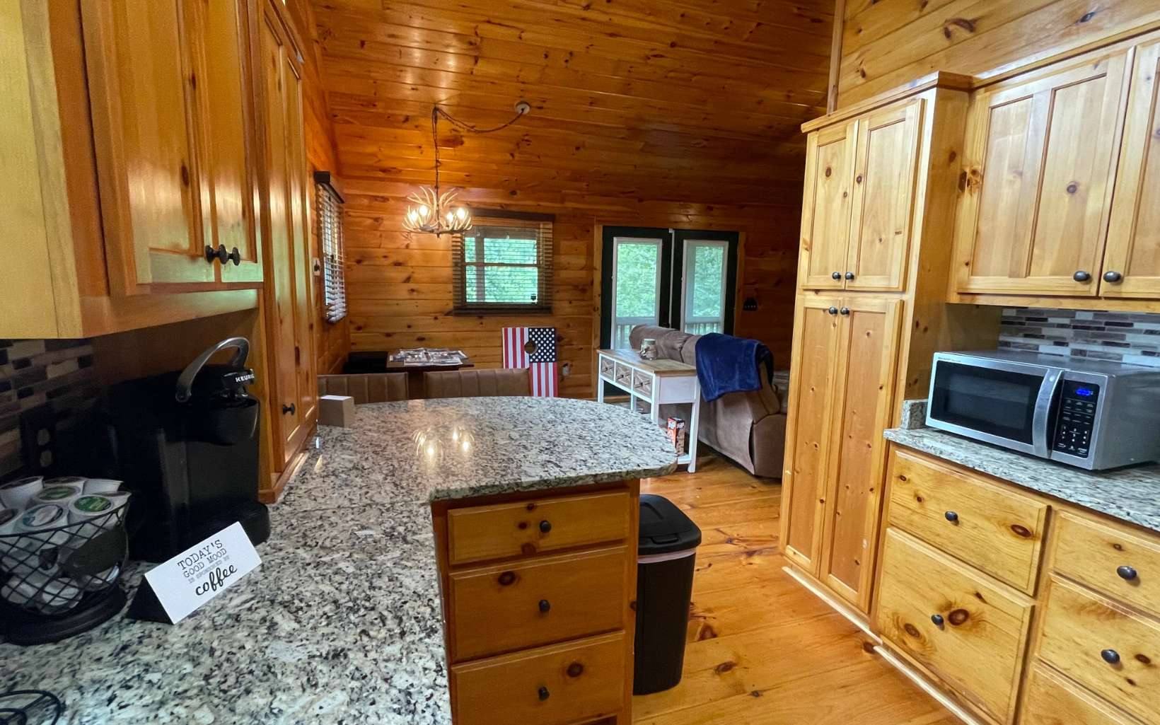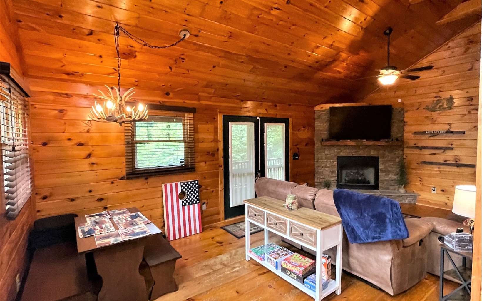 Check out this comfy cozy one-level 2 bedroom 2 full bath cabin in the mountains. Cabin sits on .74 acres with an additional .76 acre lot. The kitchen is light and bright with stainless steel appliances and granite countertops. The living room has a gas log fireplace to keep you warm and toasty on those cold winter nights. There is a covered front porch where you can relax and enjoy the view and watch for birds. Outside there's a hot tub and a fire pit. Cabin is currently used as a vacation rental with a very successful rental history and great income potential. Some dates will be blocked out through the end of the year.