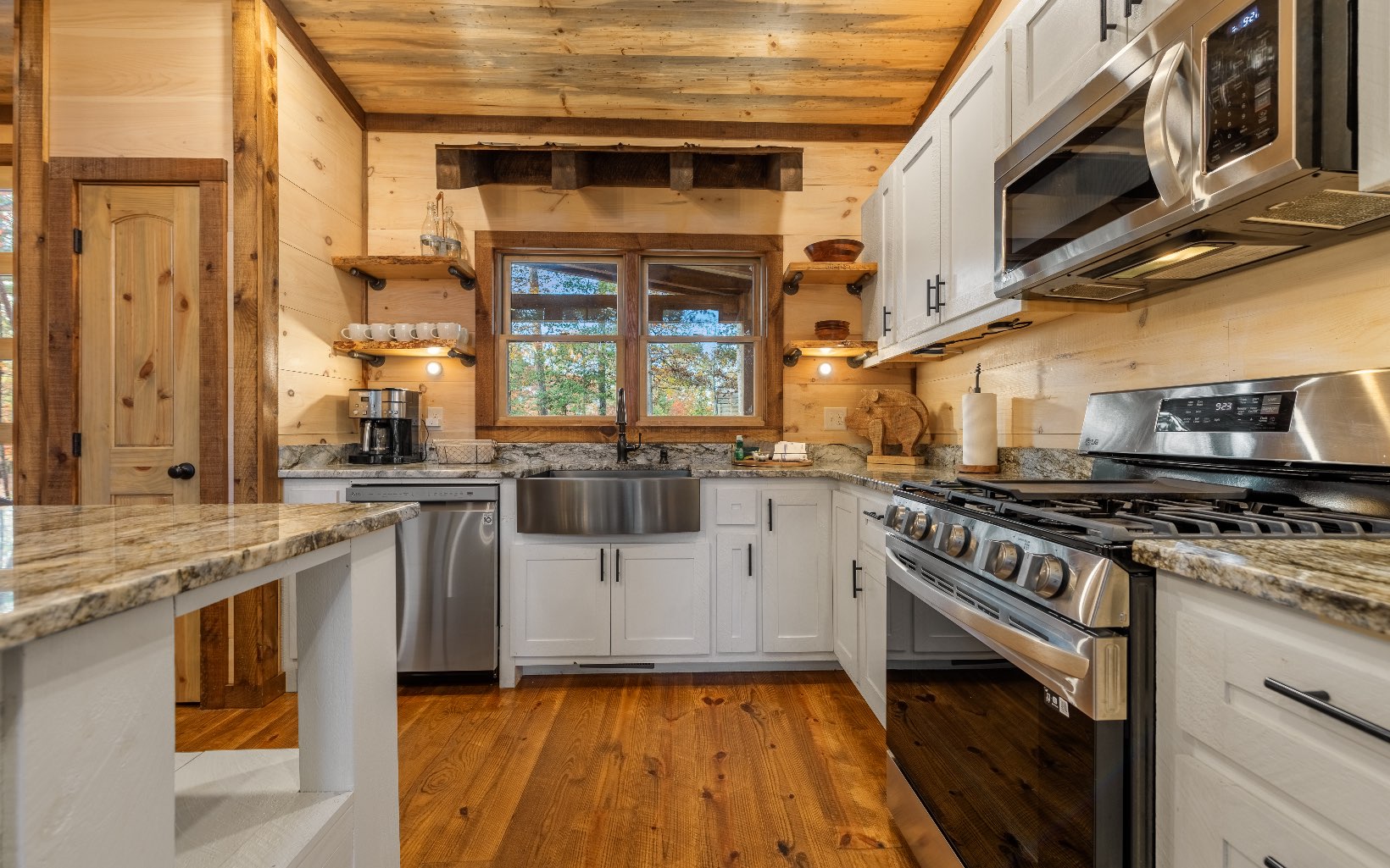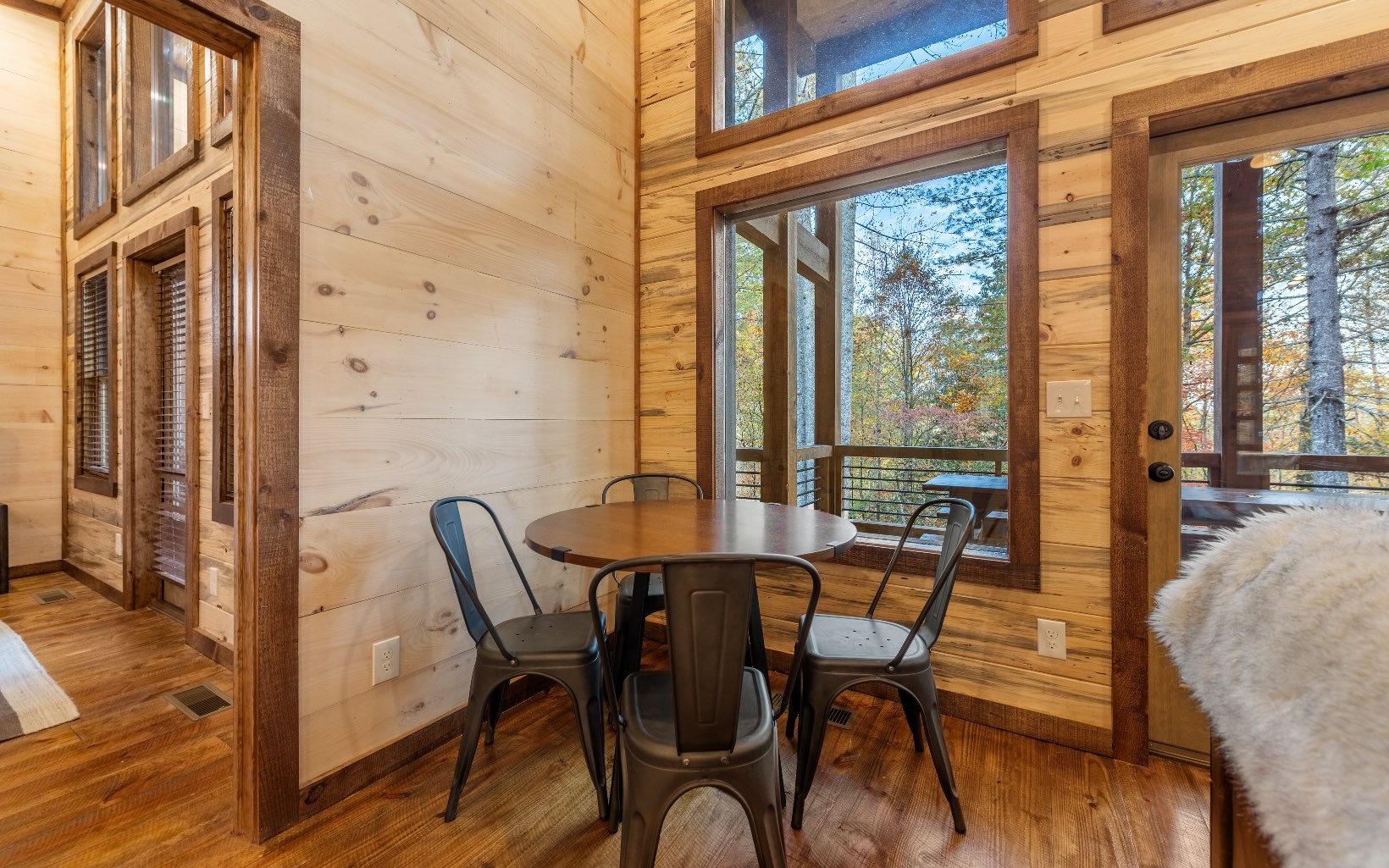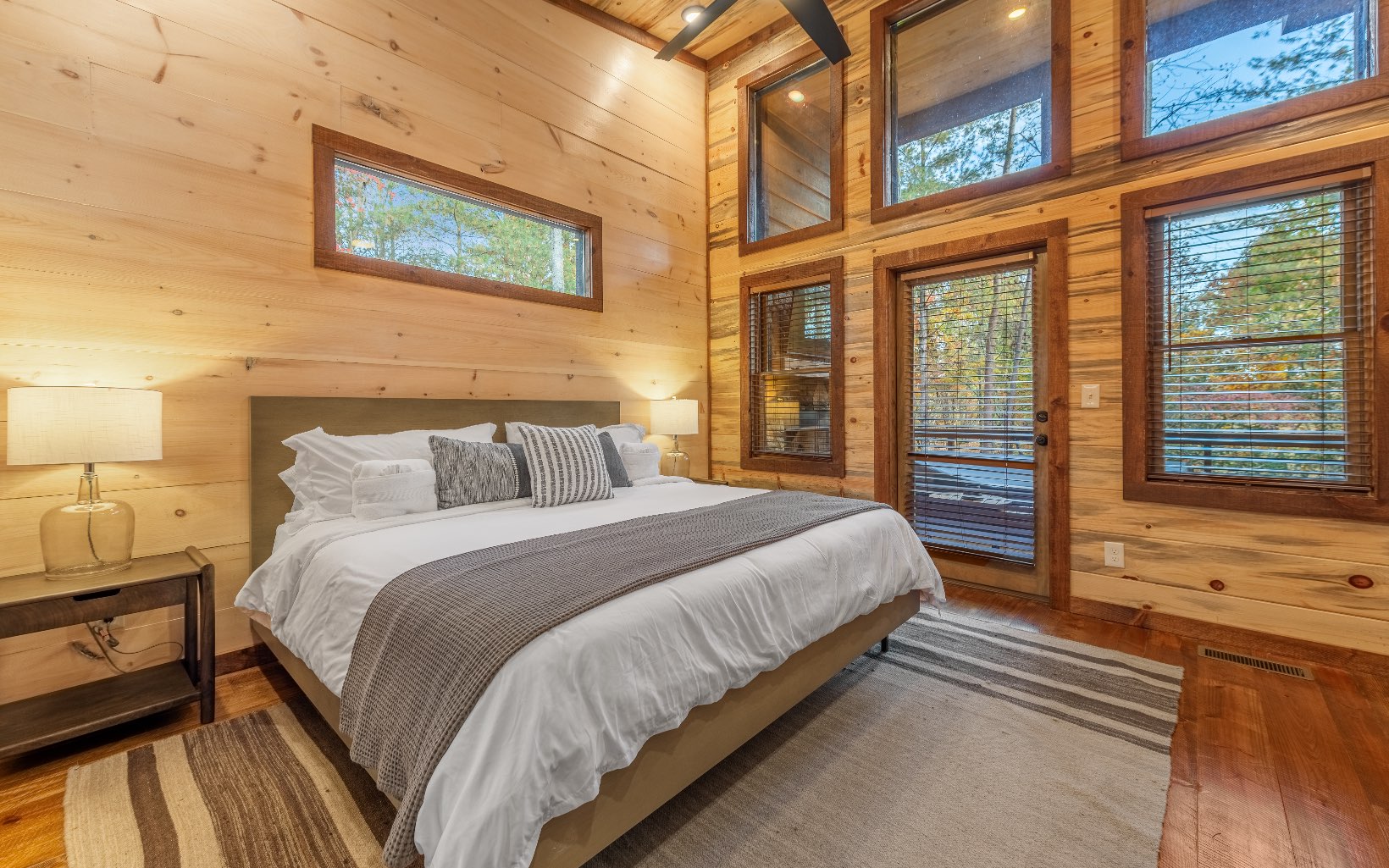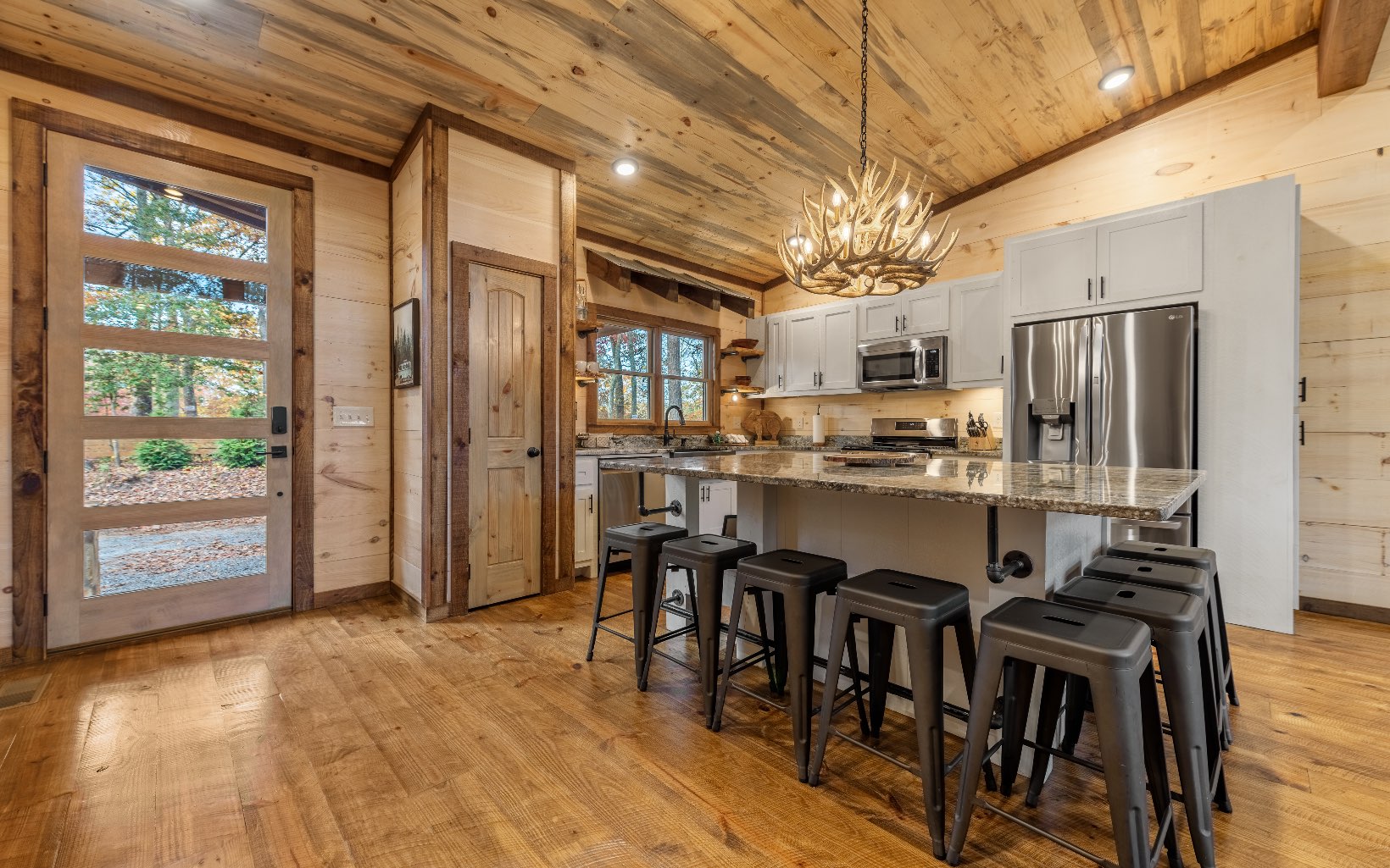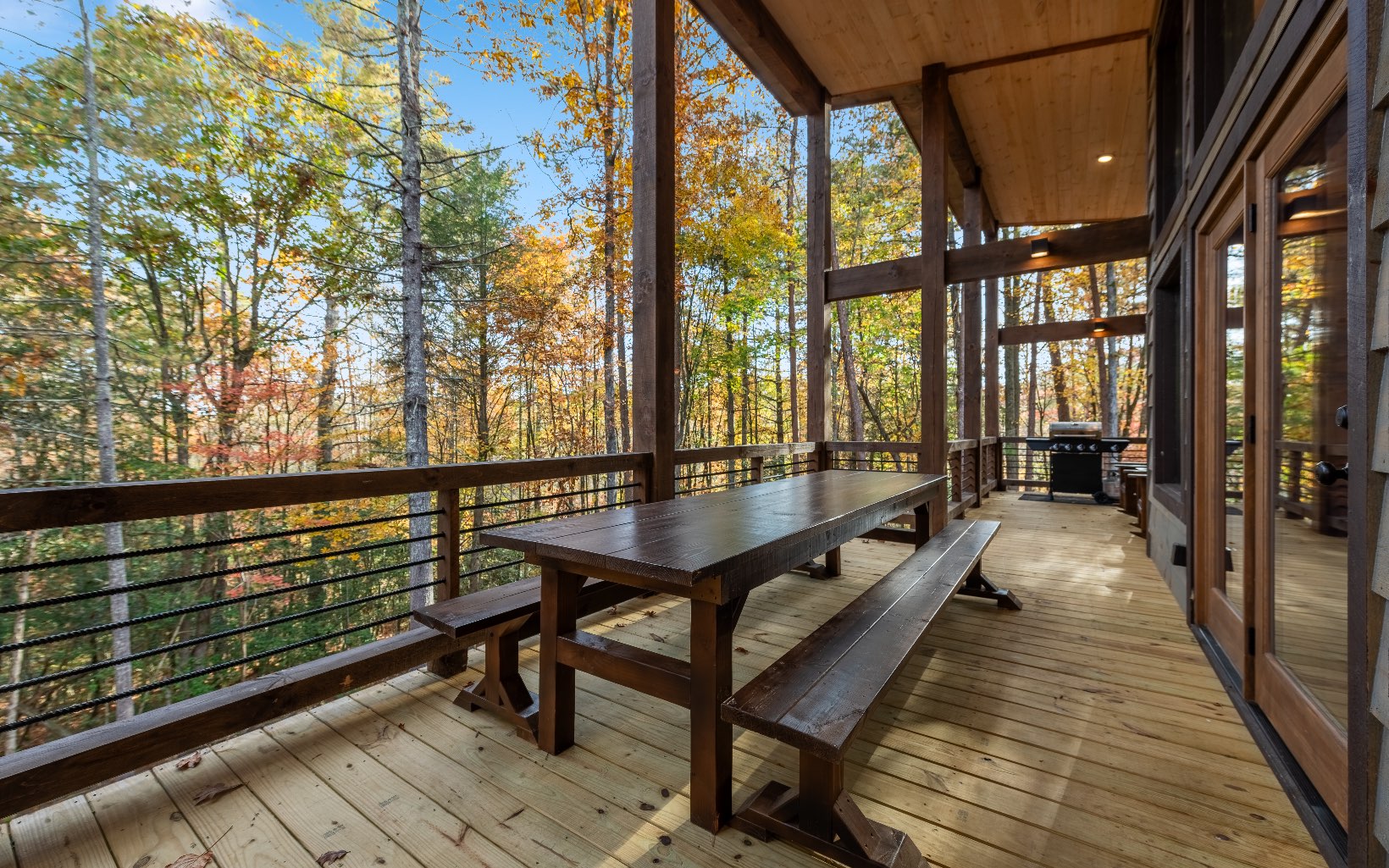 "Red Bird, Take Me Home!" -- situated within lush forestry and less than seven minutes to Downtown Blue Ridge, this contemporary rustic chalet makes for the perfect retreat! Complete with two levels of open-concept living, stacked stone fireplaces inside and out, large outdoor fire pit, jacuzzi spa area, luxury king suites, and comfortable queen bunk room! The space is the perfect blend of modern and rustic w/ bountiful natural light and walls of glass in every room. Main level is complete with large kitchen and eat-in island, comfortable living room w/ luxurious furnishings and stacked stone gas burning fireplace, french doors leading to large deck and custom farm table, outdoor living room and additional wood burning fireplace. Find two large king suites on the main level w/ their own walk-in closets, tile showers, and dual vanities. On the terrace level, home is complete w/ large den space and fireplace, wet bar, game table, walk-out terrace deck w/ swing bed, spa jacuzzi and fire pit! Find an additional large king suite w/ tile shower and an additional comfortable bunk room complete with four queen bunks, walk-in closet and ensuite bathroom. Sold TURN-KEY and grossing over $100k in rental revenue!