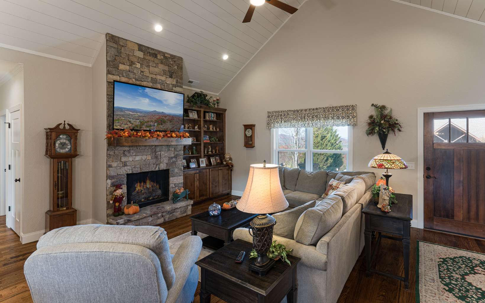 This stunning craftsman style property sits on .75 and features an open floor plan, perfect for entertaining. As you step inside, you'll be greeted by a cozy fireplace, creating a warm and inviting atmosphere. The spacious kitchen with a center island is ideal for cooking up delectable meals. Main floor master suite offers a private sanctuary with its own luxurious bath, providing ultimate relaxation after a long day. There is also a guest bedroom that offers ample space and a serene atmosphere, ensuring your guests feel right at home. Step into the finished terrace level, where you'll be greeted by an incredible entertainment room perfect for hosting movie nights or cheering on your favorite sports team. This space boasts a cozy bedroom for guests, a convenient den/office for work or study, and a full bathroom. But the real showstopper? The access to the patio area with a firepit, offering the ultimate setting for unforgettable gatherings with family and friends. Picture the glow of the fire, the sound of crackling wood, and the warmth of good company as you create lifelong memories in this exceptional outdoor oasis. Don't miss out on this rare opportunity to own a home that embodies comfort, luxury, and entertainment all in one! Whether you're craving a tranquil evening under starlit skies or seeking a vibrant space to entertain loved ones, this property has it all. Make this dreamy retreat your own before someone else does!