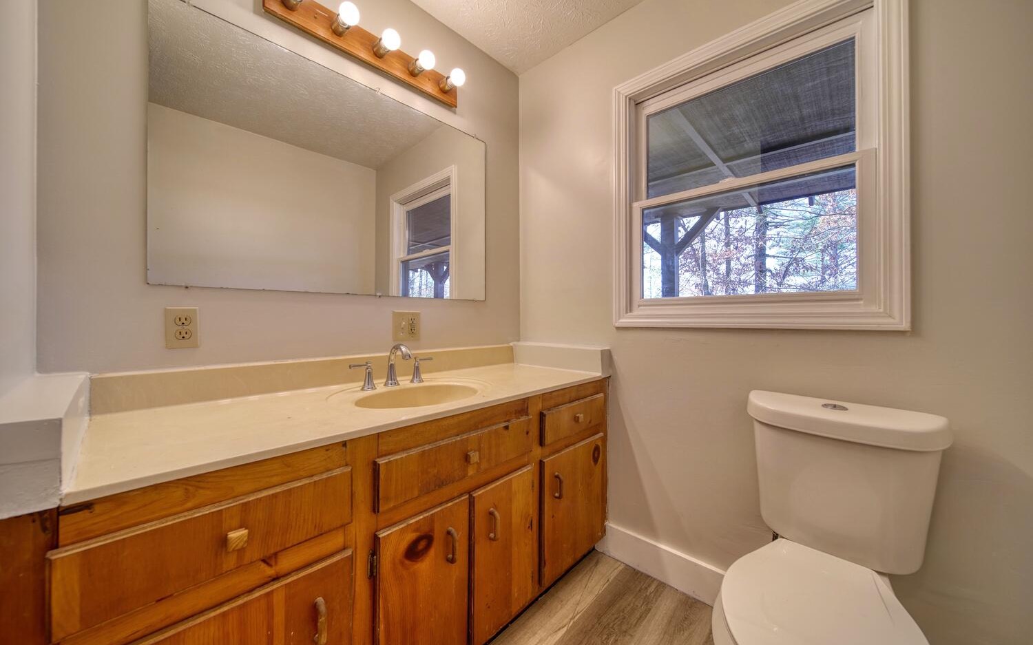 WOW Under 300k, great location, bright and spacious two-bedroom, one-bathroom cabin, .98 acres peaceful retreat overlooking Hemptown Creek, several fruit trees, views, concrete foundation, full high ceiling unfinished framed basement offering a blank canvas for you to instantly double your square footage, outbuilding, 5 minutes to Blue Ridge, beautiful neighborhood entry driving over Hemptown Creek at Forge Mill. With its recent renovations, this delightful property in the breathtaking North Georgia Mountains makes the perfect affordable investment opportunity. Step inside to discover new luxury vinyl plank floors that exude both style and durability. Fresh paint, both inside and out, adds a touch of modernity while maintaining the cabin's rustic charm. The newly installed 18 Seer mini split comes with a generous five-year warranty, ensuring your comfort all year round. As you make your way outside, a newly poured gravel driveway greets you, providing easy access to your mountain escape. And let's not forget the highlight of this property—the stunning view of the majestic mountains with the tranquil creek flowing below. The property offers beautiful trees and greenery in the warmer months and breathtaking views in the fall and winter. This is a perfect rental, weekend getaway or starter home! For a list of all repairs and improvements please see property disclosure.
