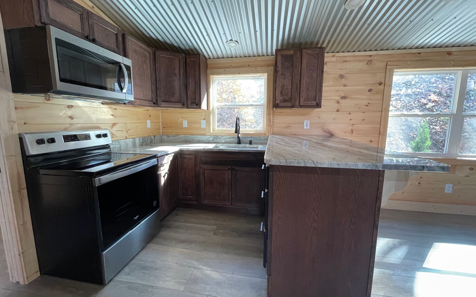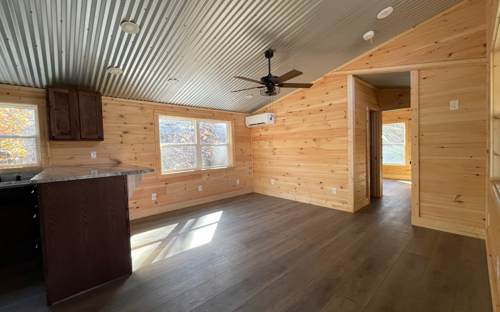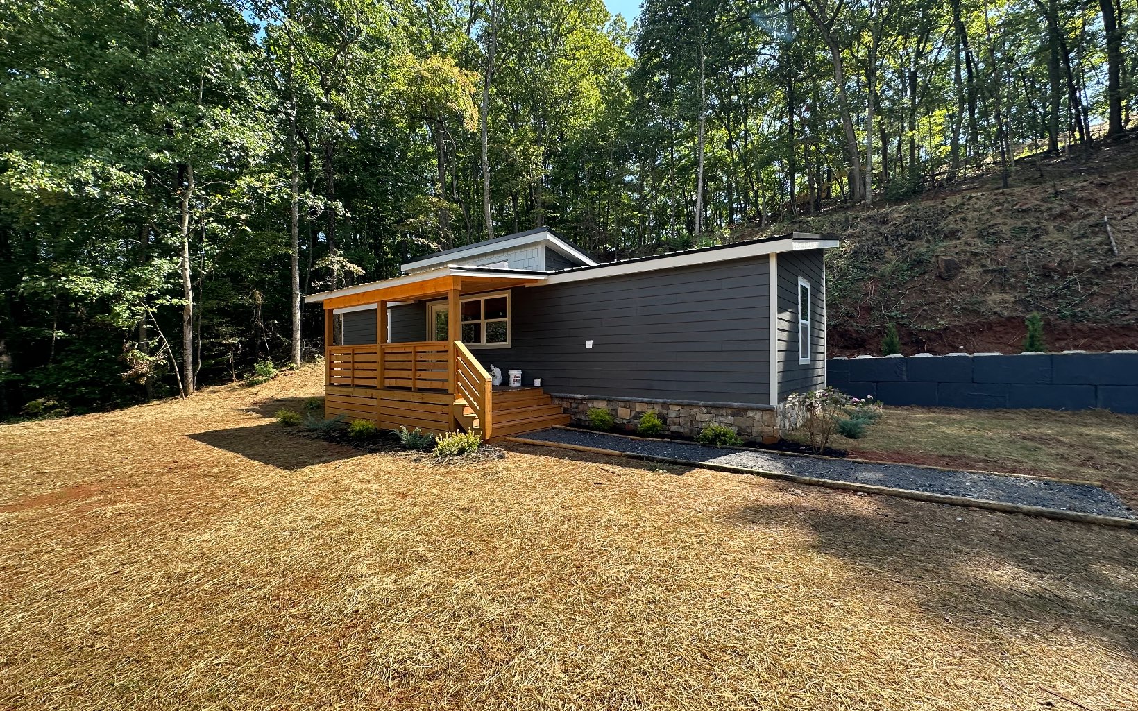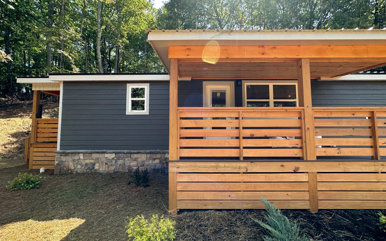 Custom Designed Home on an Un-Restricted lot, featuring a Seasonal Mountain View! Completed new in 2023 with a metal roof and covered porches with composite deck boards. As you enter the home you will see the popular metal accented ceiling along with the tongue and groove walls. This home features a spacious kitchen with granite counter tops and stainless appliances. The bar area will accommodate bar stool seating for added dining space. This floor plan is a split bedroom plan for added privacy with vinyl LVP flooring throughout. One bedroom has a bathroom adjacent in the hall with a tub shower combo and in that hallway you will find the laundry area. The opposing side of the home has a hall bathroom with a shower and the bedroom has its own private door to the exterior of the home. The level yard area offers space for a garden or more outdoor living space. All of this located close to Downtown Hiawassee, Young Harris, Shopping, Restaurants, Golf Courses, Wineries, Marinas and Lake Chatuge.