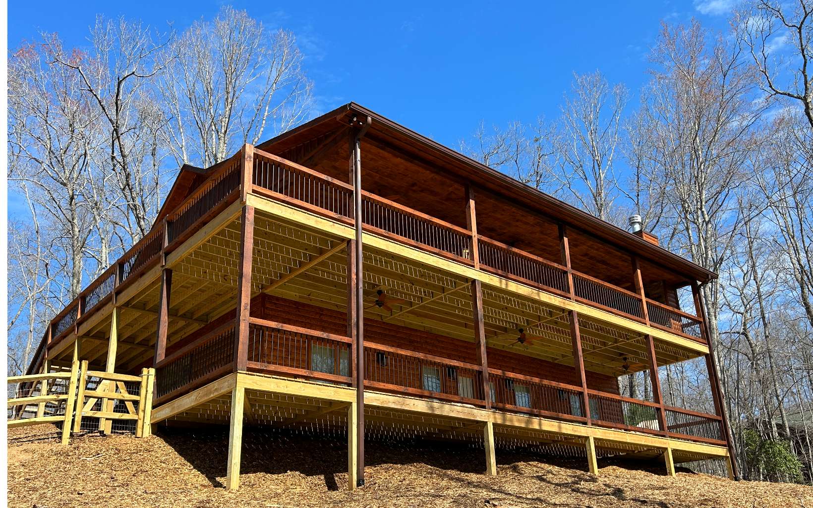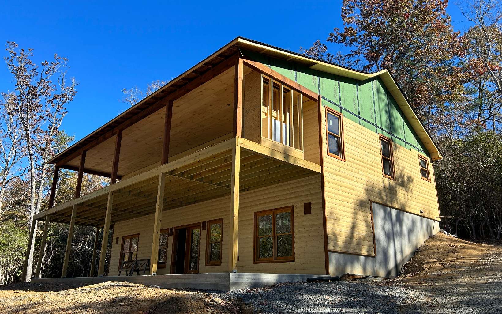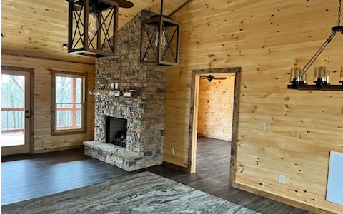 Inside one of Fannin's Premier Rustic Communities "Stuart Mountain Highlands" features Paved Road, Fiber Optic Internet, City Water, Seasonal Mtn View & a Gated Entrance w/Sensible Restrictions & a Reasonable HOA fee. Level Back Entry w/Gently Elevating (half round) Driveway leading to a "Super Private" Setting off Ross Drive near a Cul de Sac. Spacious Great Rm w/Stone Fireplace, Kitchen Island & Large Dining Area. Spacious MASTER Suite ON MAIN w/Dual Vanity & Full Tile Shower (Frameless Doors). Second Bdrm /Office ON MAIN w/Full "Tile" Bath). Wrap Around Porch/Deck w/EXTERIOR FIREPLACE on Main Level. Terrace Level features Comfortable Family Rm w/Fireplace & Wet Bar..... (2) Guest Bdrms (full bath) & Walk Out Covered Porch (Poured Concrete) to Level Front Yard (PERFECT to bring the dogs), BRAND New Construction Dried in and working on the Inside.