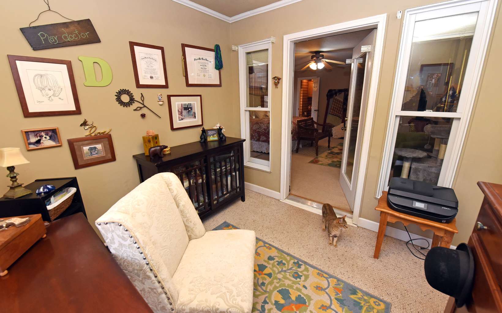 Welcome to four porches cottage in the Young Harris Valley. Charming cottage offers 2 bedrooms and 2 full baths. Screened porch off the primary bedroom and Living room with large private office. Could work as nursery or sit back and work from home and listen to the creek. Large living room/dining combo. Open kitchen with access to grilling porch. Stone dry-stacked fireplace and custom hardwood floors. Attention to details with oversized crown molding and baseboards. Light and bright! New split fence with enclosed trash area and privacy fence. Hobby room and workshop on the Terrace Level. Artist kiln stays with the property. Level parking for all you boat toys. All on unrestricted property. Priced to sell!!