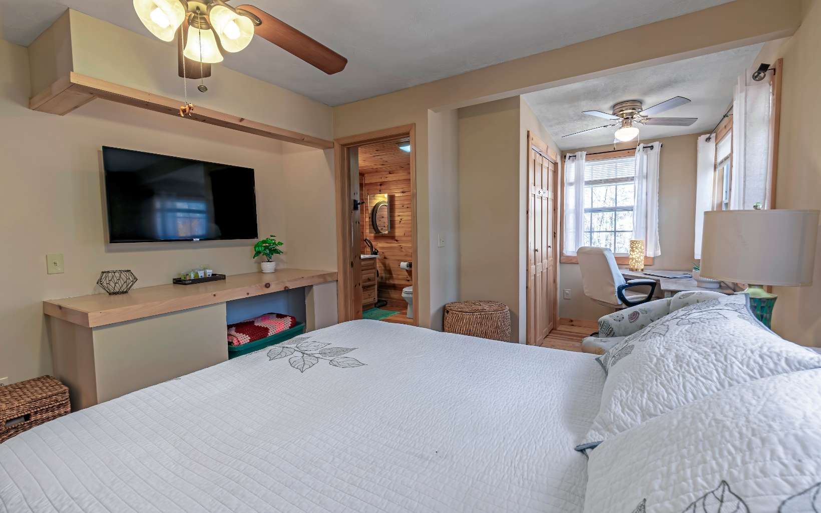 This 2BR, 2BA 1,000 sq. ft. cabin has 1.07 acres and was totally renovated in 2022. Its ranch-style layout is designed with comfort and simplicity in mind, with all living space conveniently located on one floor: including the master suite with an office/reading nook, a second bedroom and bath, a living room, and a kitchen. Next to the dining area is the rear entrance, leading to a porch and private deck with a soothing hot tub surrounded by woods and a seasonal mountain view in the distance. Just below is the private backyard and a fire pit. The front porch has a seating room and is nearly attached to the carport (mostly sheltered for those rainy days!), with an EV charging port conveniently nearby. A fully fenced side yard provides security for your furred family members and also includes a work/tool shed. You will also be well prepared for mountain weather with the generator wired into the home. The Mineral Bluff location ensures a peaceful retreat surrounded by natural beauty, with an array of fun outdoor activities and scenic landscapes of Fannin County. This property presents a great opportunity for a tranquil escape that does not compromise on modern necessities and comforts and although it is NOT being sold furnished, STRs are permitted. Don't wait around on this one or it will be gone before you know it -- reach out today to schedule a viewing!
