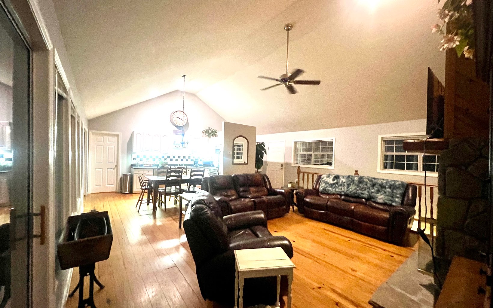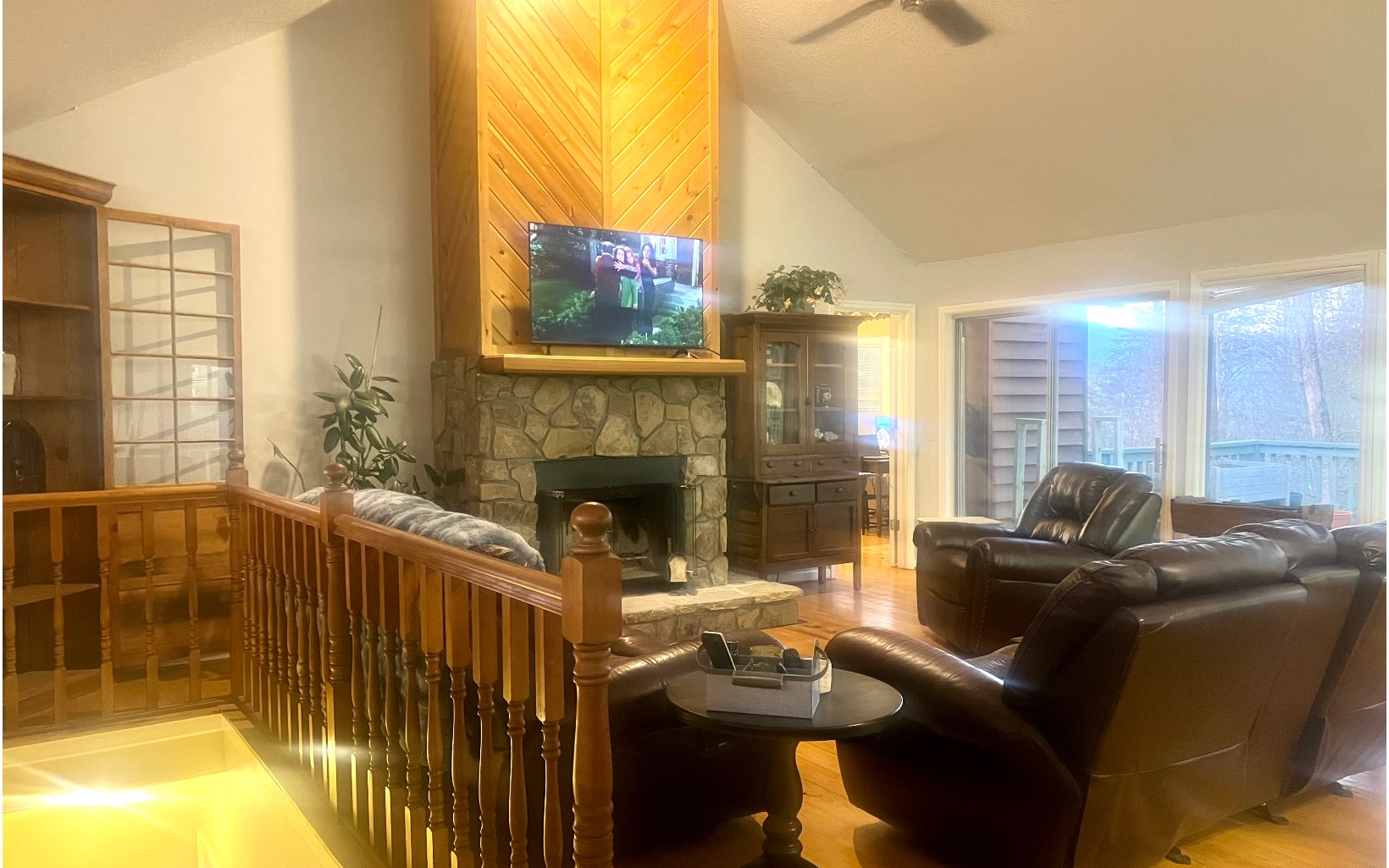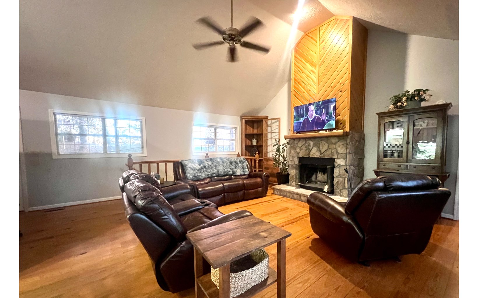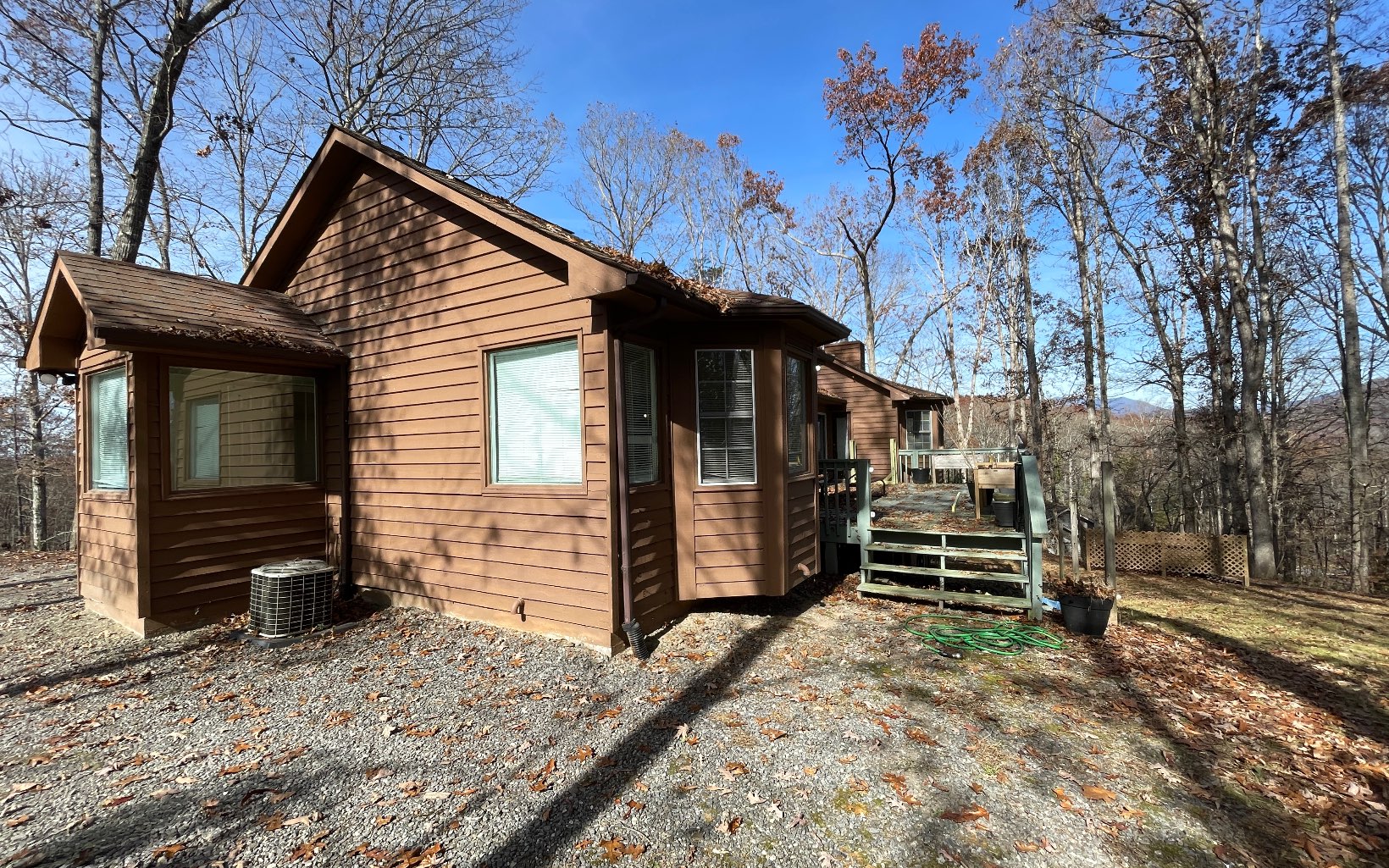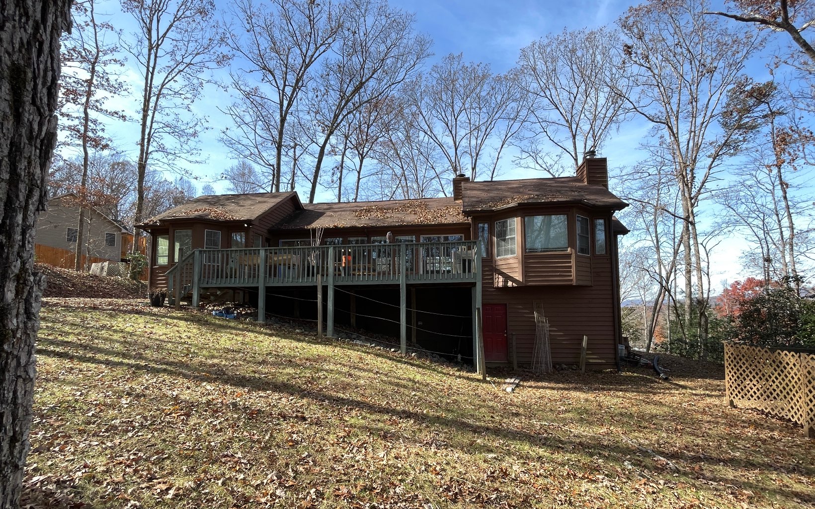 Your Mountain getaway or permanent resident with open living concept and vaulted ceilings. Home Features two wood burning Stone fireplaces located on the main floor with one being in the bedroom the other being in the living room. All the main floor is the living area with two master bed rooms one on each end of home, two baths, kitchen/dining area, living room, laundry room. In the basement you have a good sized den with bar and another full bath room with another room that could serve as sleeping quarters.Looking outside you have some gorgeous mountain views to the south from the covered rocking chair front porch and seasonal views to the north off open back deck, if you look close there's a small seasonal lake view. Located within a few minutes of Lake Chatuge and several public docking facilities less than 5 miles away.