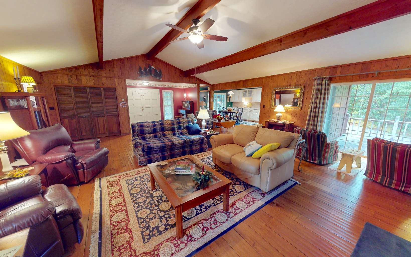 FULLY FURNISHED Private home on 2+ acres with garage is waiting for you! Located a short distance from town in a quiet area in the forest. Step inside to find a beautiful brick fireplace & vaulted ceilings. The massive living room has space for the whole family & eat in kitchen. Single level living with all rooms on the main level including pantry and washroom. Master bedroom features walk in his/her closet and the biggest bathroom you've ever seen featuring a double vanity with beautiful tile shower. Full unfinished basement/workshop/garage for your tools or finishes. Located in the Granny Squirrel Community this neighborhood has a community clubhouse, pond and gated entrance with community water system. The additional 2+ acres bordering this home is also for sale if desired. This move in ready home is ready for you to enjoy so don't wait! 3D virtual tour available!