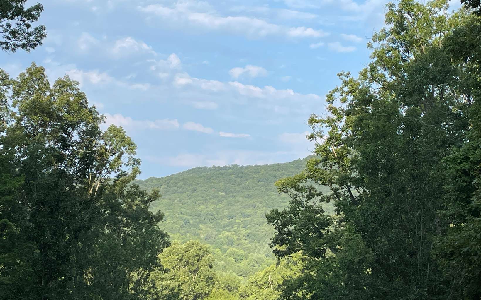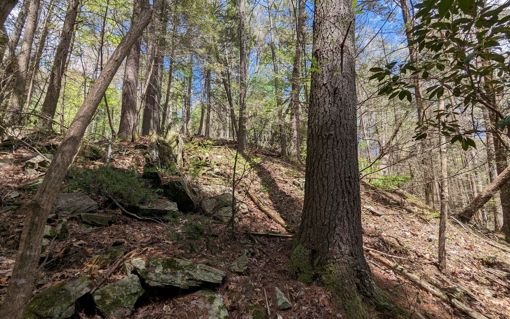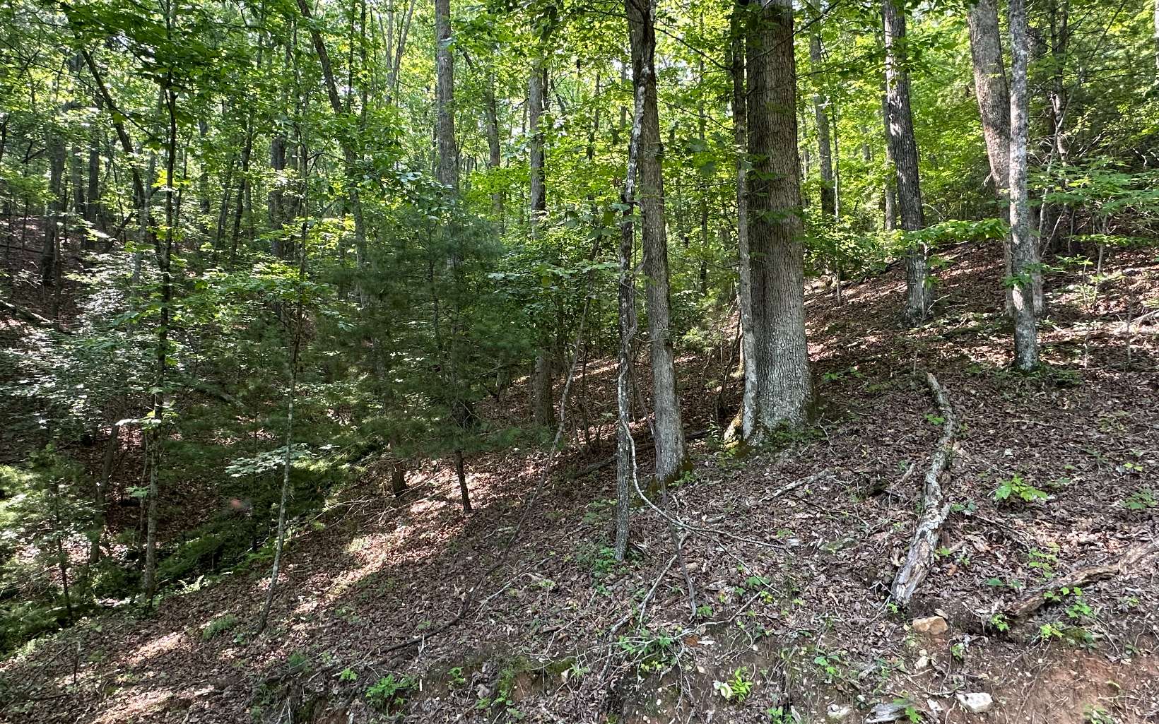 3 Acre Mountain Lot with Spring. This upsloping lot can offer a very easy driveway up to a large fla