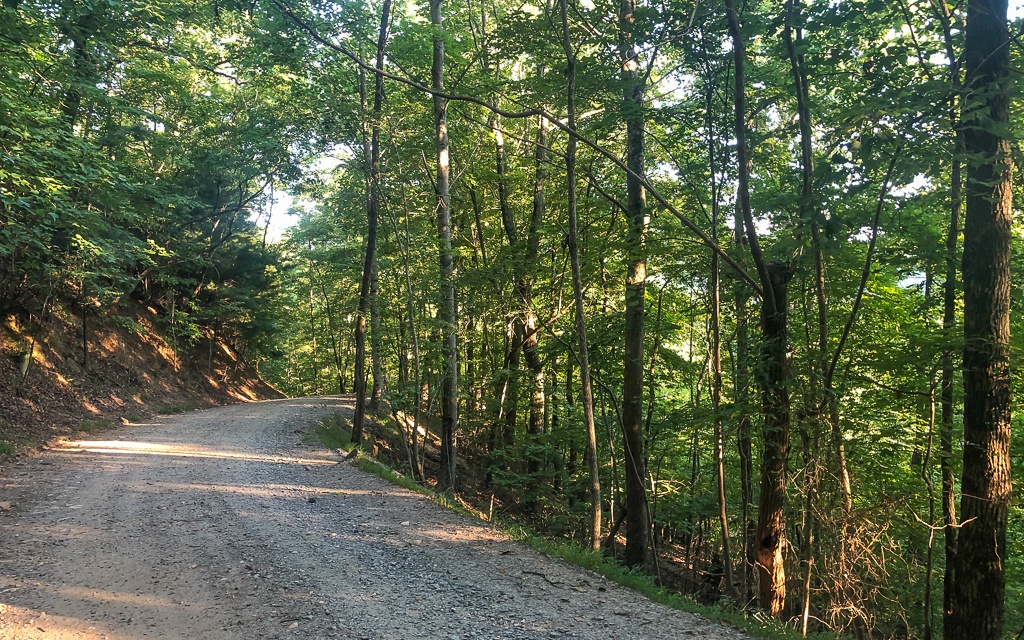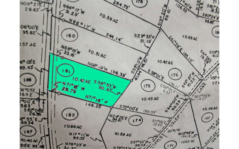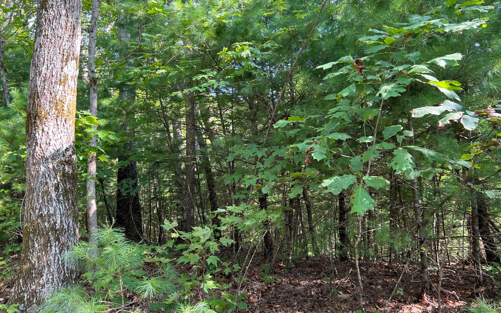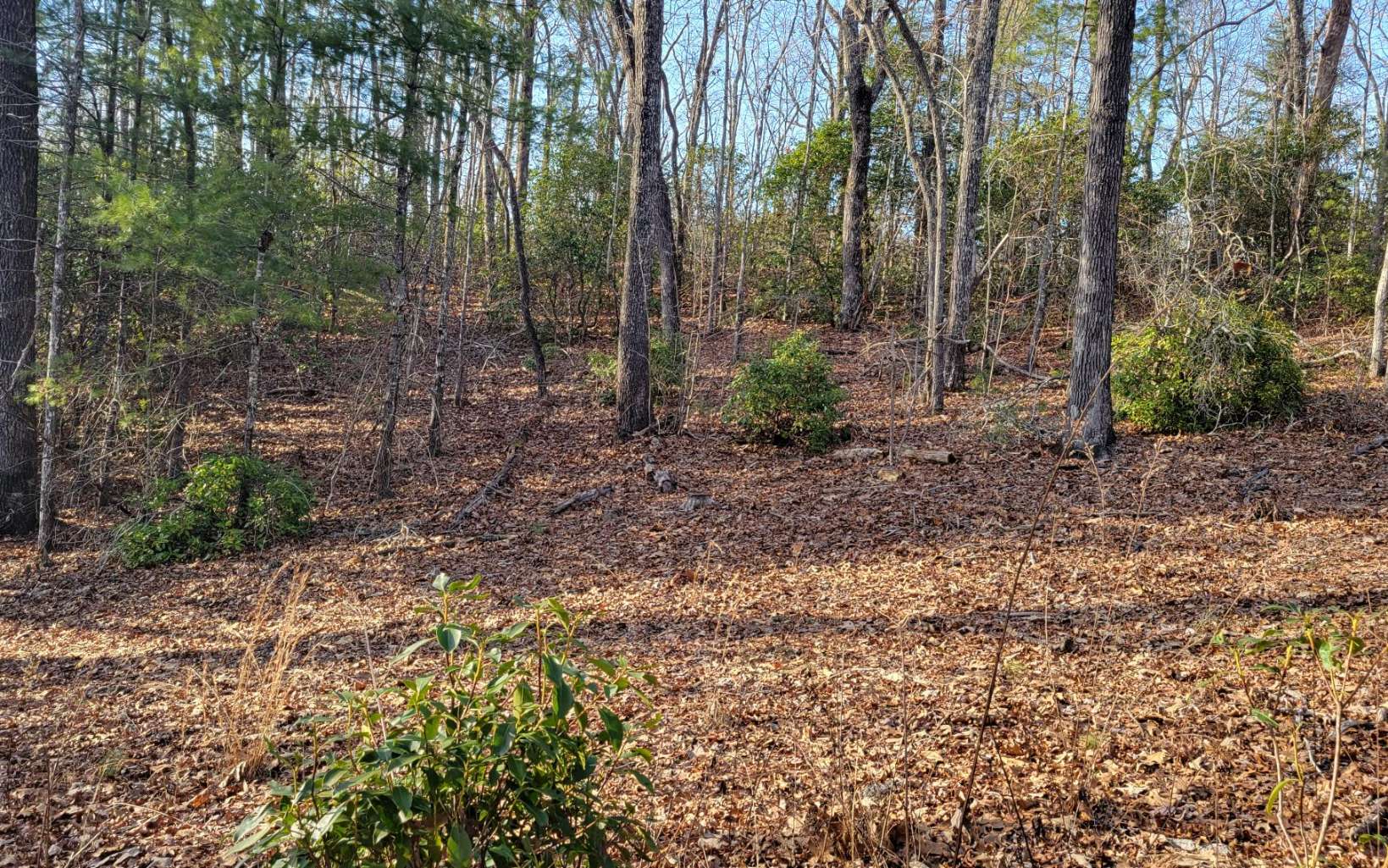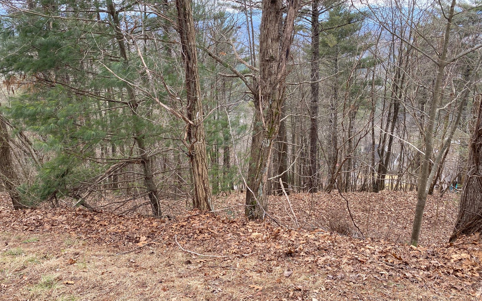 Wooded lot with circular rustic drive pushed in. Nice elevation with seasonal views. Paved Road deve