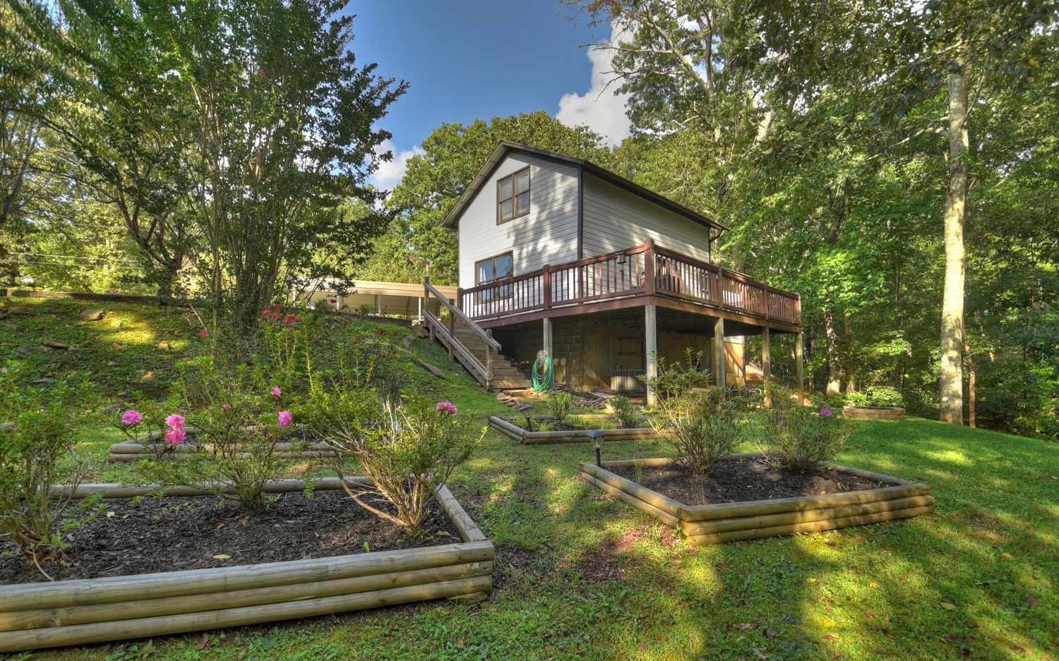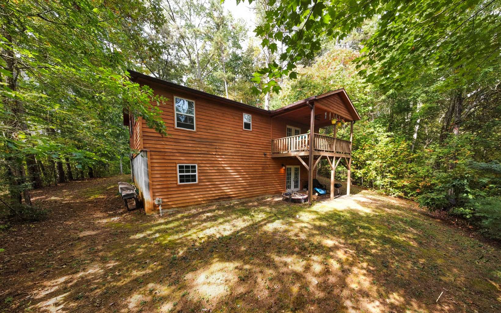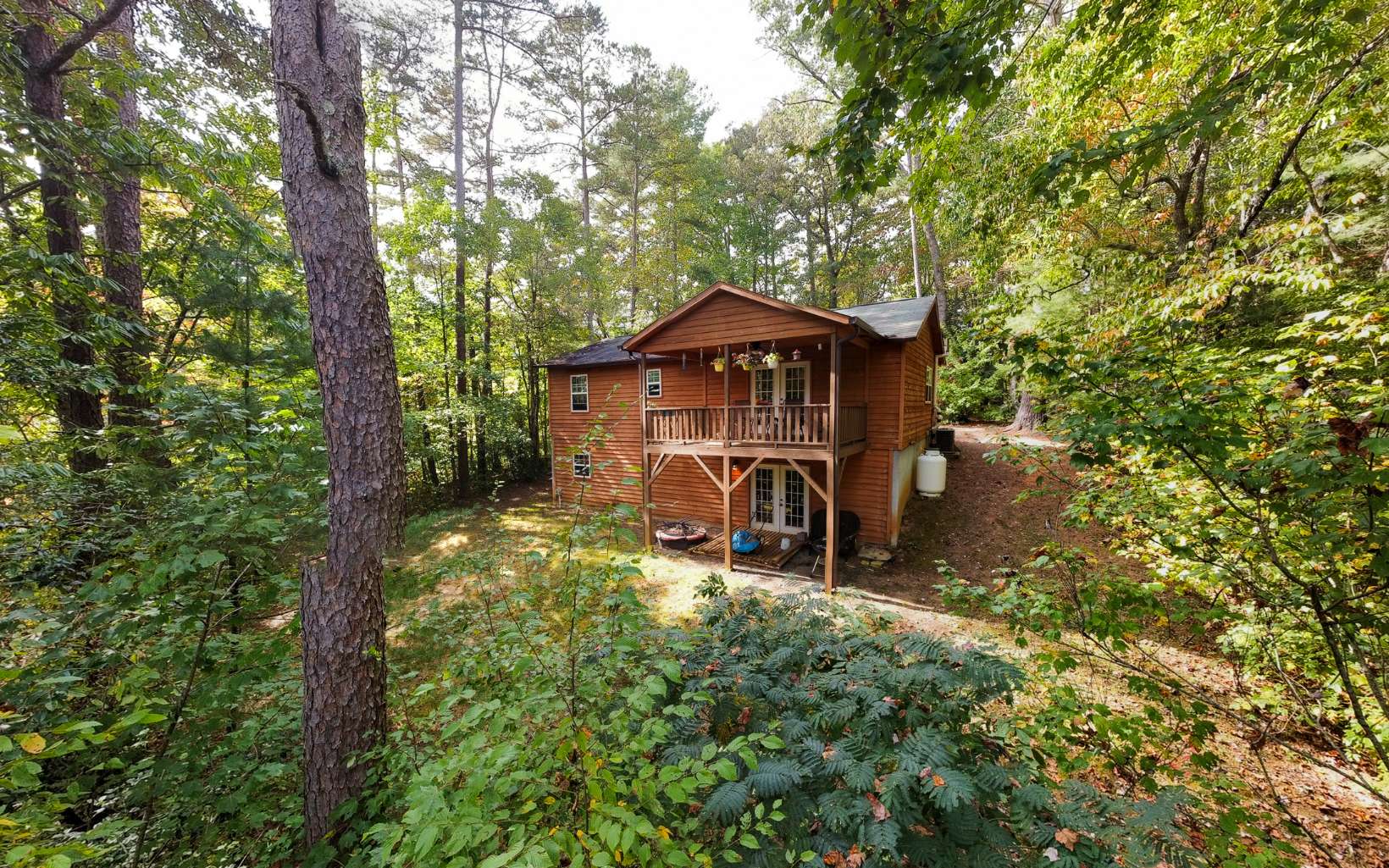 Truly “Above it All” with PANORAMIC views that will absolutely take your breath away! This upgraded/updated FULLY FURNISHED 3BR/3BA log mountain home will satisfy all your wants & needs. WRAP AROUND DECKS! Master Suite is located upstairs with majestic views while soaking in the jetted tub. Warm