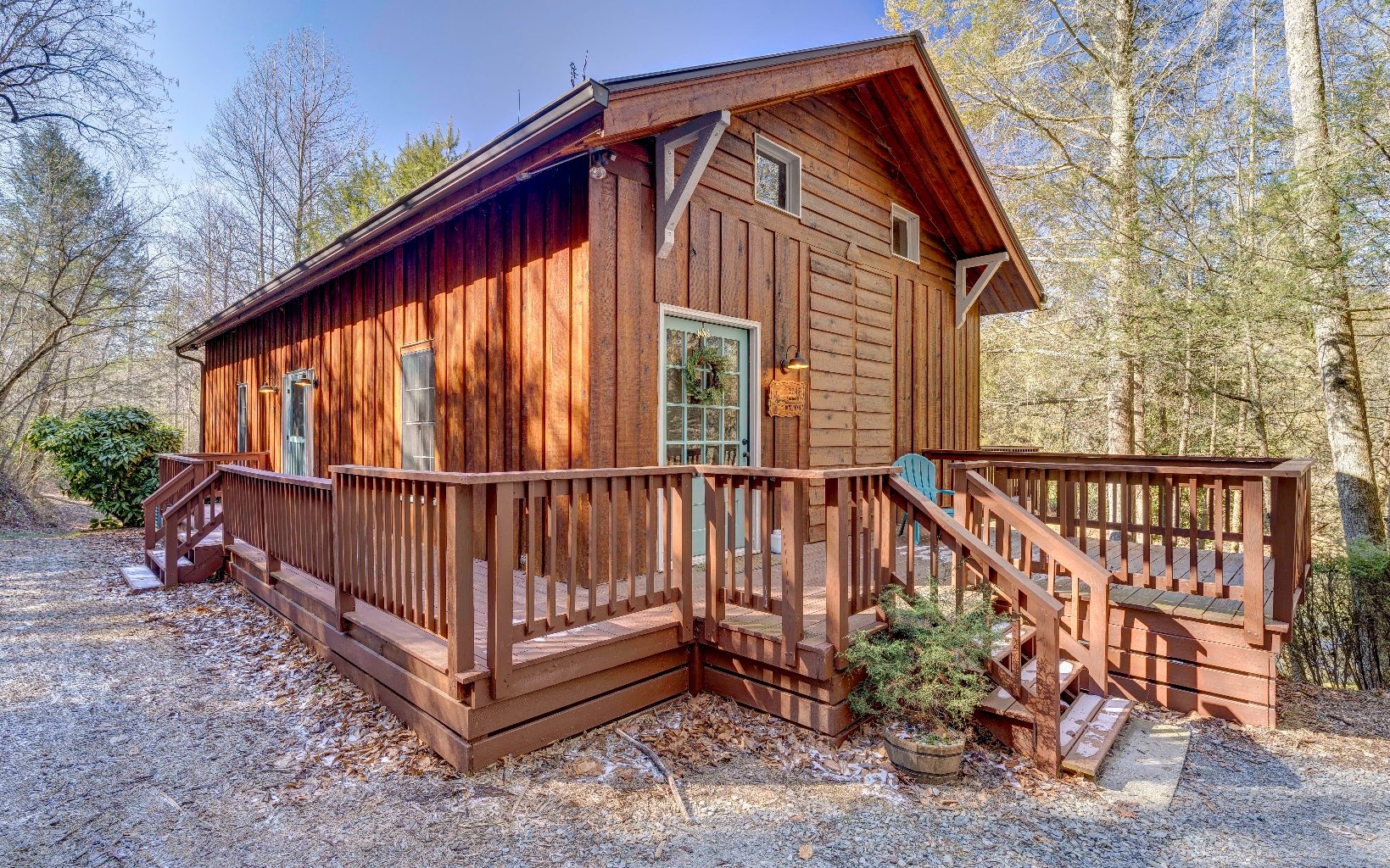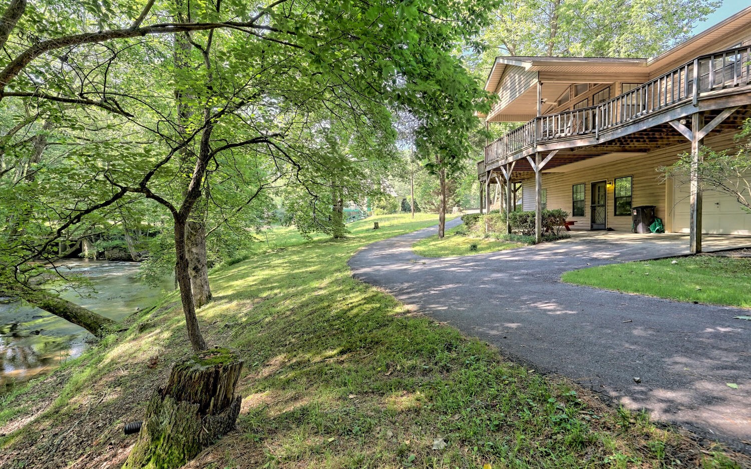 Cozy & Comfortable Creekfront Charmer is tucked away on private & level wooded tract just minutes from historic downtown area and perched on the banks where rushing Fightingtown & Madola creeks meet…a truly unique property…2 bedroom/2 bath rustic cabin boasts easy one level living is situated ju