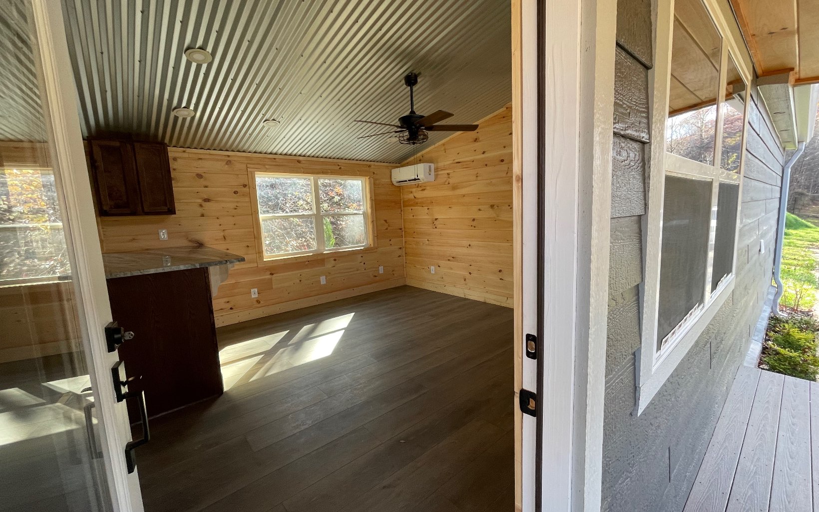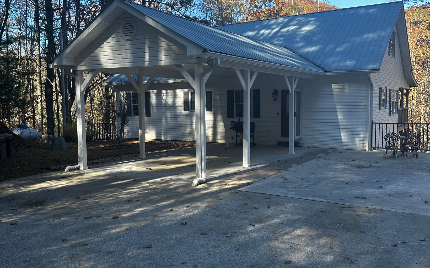 Custom Designed Home on an Un-Restricted lot, featuring a Seasonal Mountain View! Completed new in 2023 with a metal roof and covered porches with composite deck boards. As you enter the home you will see the popular metal accented ceiling along with the tongue and groove walls. This home features a