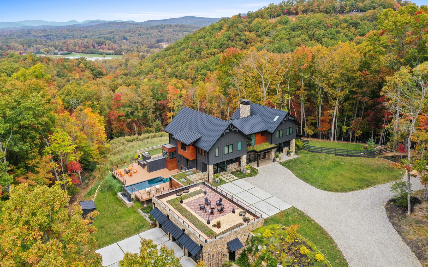 This amazing listing features a one-of-a-kind mountain top estate on one of the last large acreage tracts just 10 minutes from Blue Ridge. Includes a beautiful main house with state of the art modern amenities and breathtaking views, a fully loaded guest house, private hiking and ATV trails, greenho
