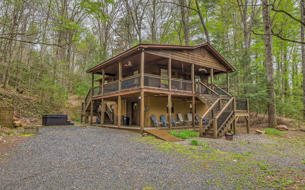 Are you looking for a peaceful retreat in the mountains? FULLY FURNISHED! Look no further than this beautiful 3 bed 3 bath cabin located in the North Georgia Mountains near Blue Ridge Ga and the Cohutta Wilderness area . An amazing outdoor entertainment area provides a great space for hosting gather
