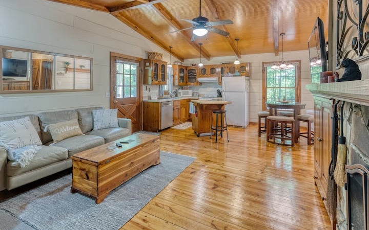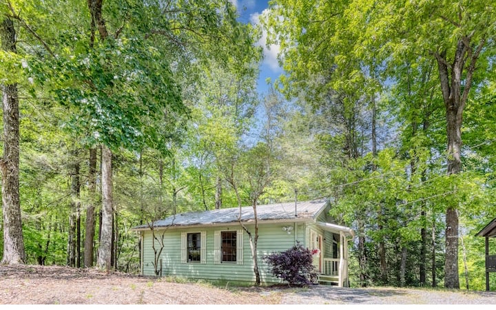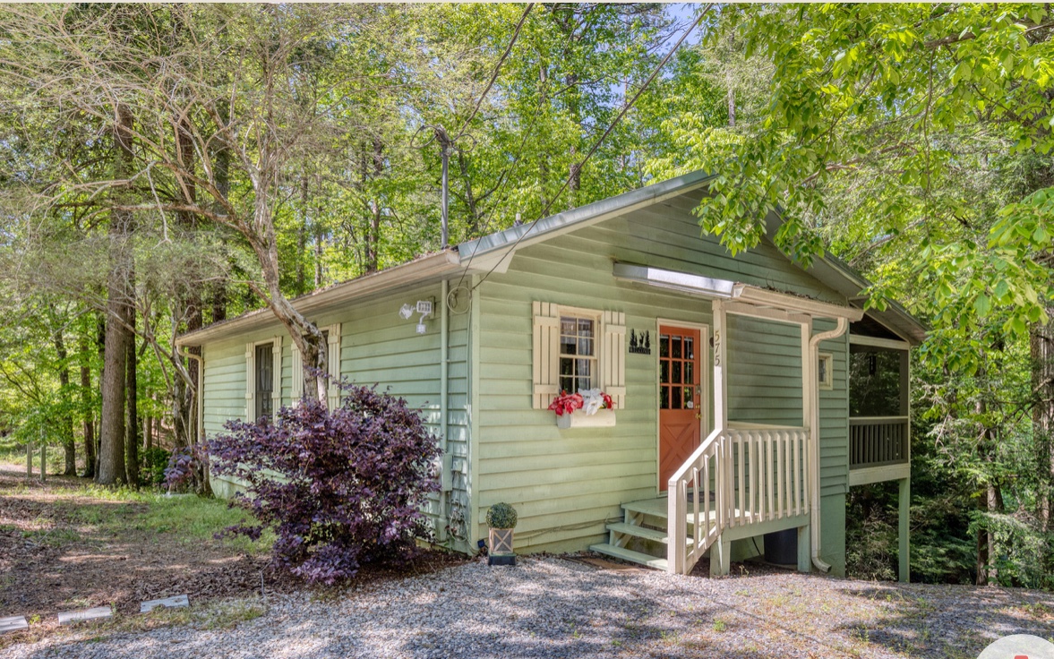 Rustic Cottage on a babbling creekfront lot and 10 minutes to Downtown Blue Ridge! Low maintenance concrete board siding, hardwood flooring, custom kitchen cabinetry w floating shelves, open great room with cathedral ceilings, MBR & 2 additional bedrooms on the main level, beautiful rock fireplace,