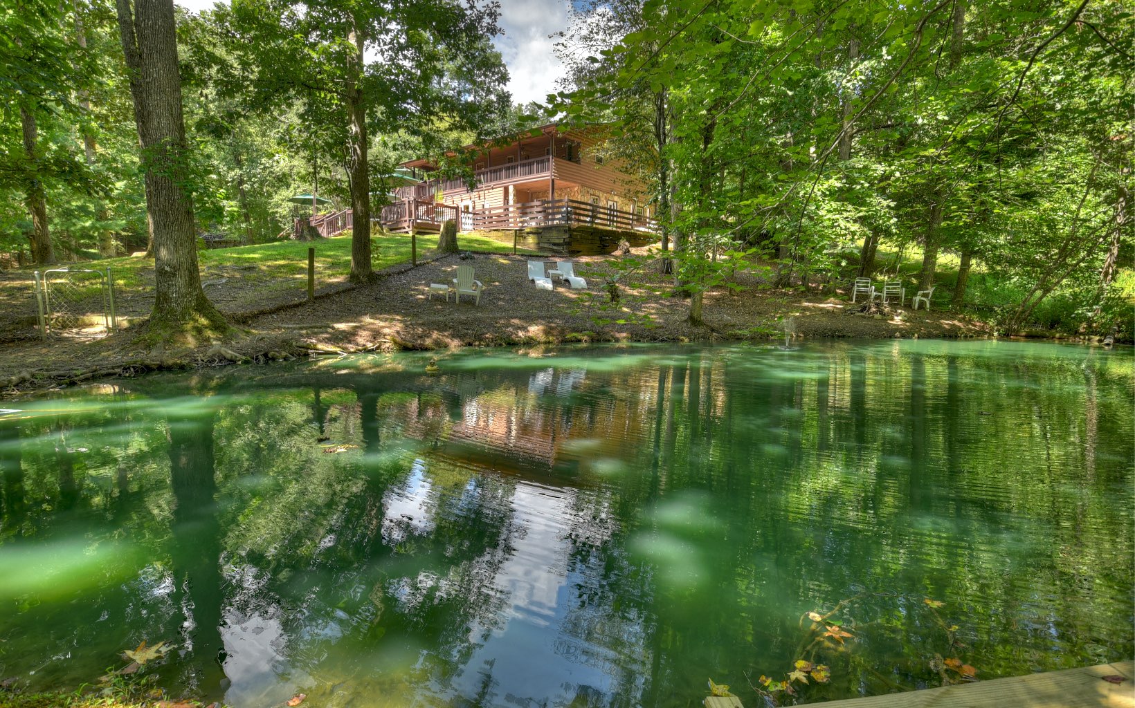 Immaculate 4 bedroom 3.5 bath Dove Tail Log mountain cabin complete with additional 1 bedroom 1 bath guest house. Privately tucked away on 3 acres in the heart of the Cohutta Mountains offering easy terrain, gorgeous long range mountain views, horse stables, private lake with fishing, and more! Sold