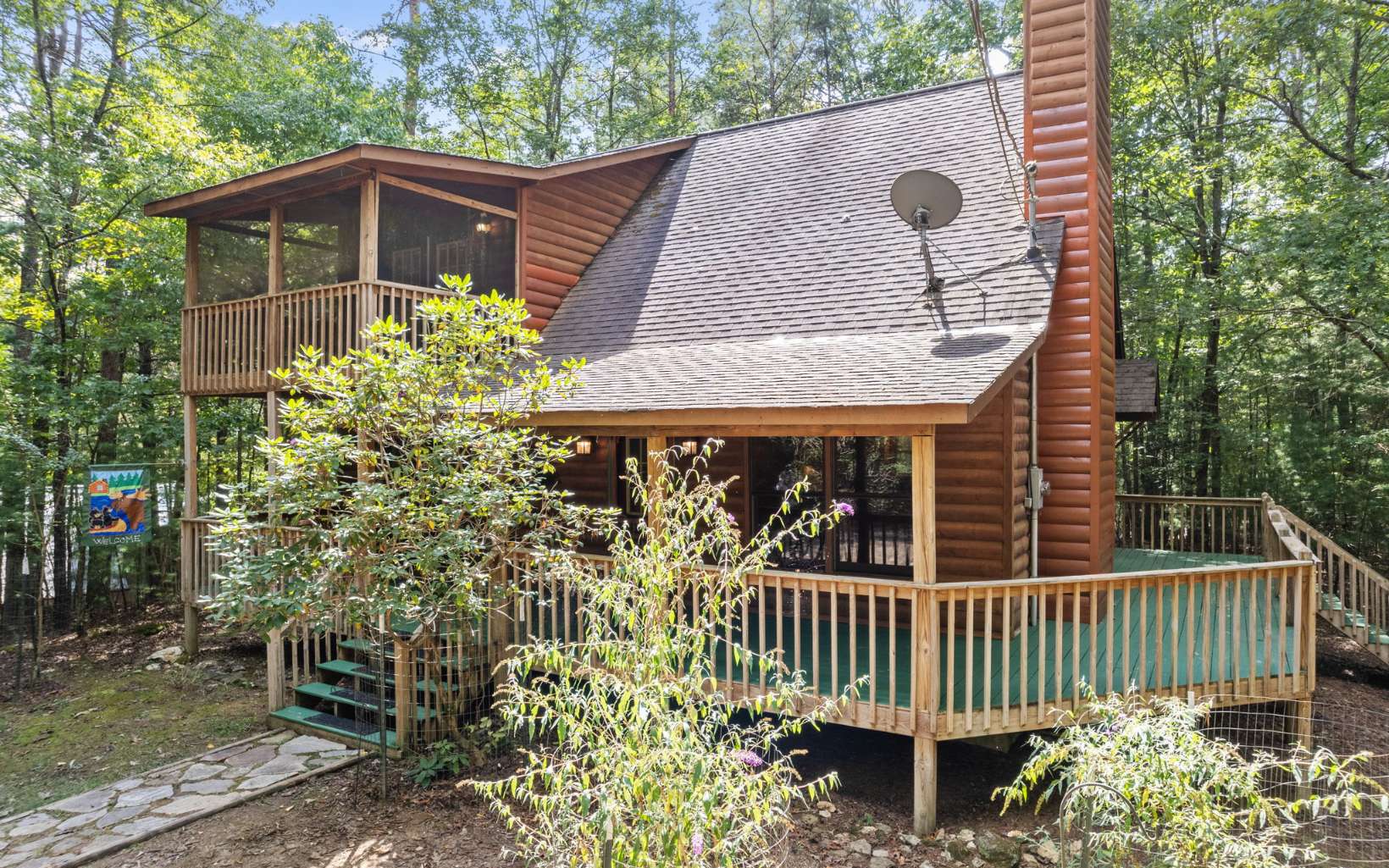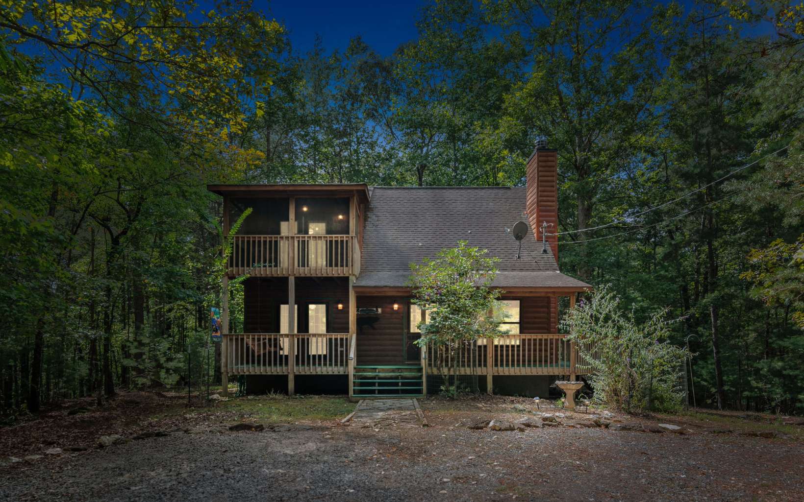 Adorable mountain bungalow only 6 miles to downtown Blue Ridge! 2 bedroom/2 bathroom getaway features seasonal mountain views, wrap-around decks, screened front and back porches, and an incredible stacked stone wood-burning fireplace. Spacious interiors with abundant natural light. Oversized primary
