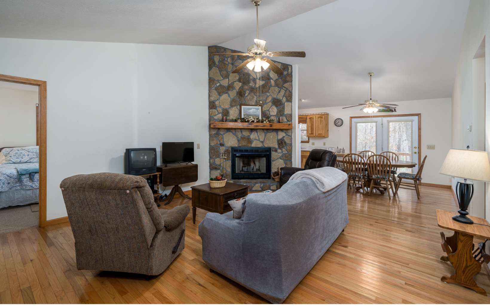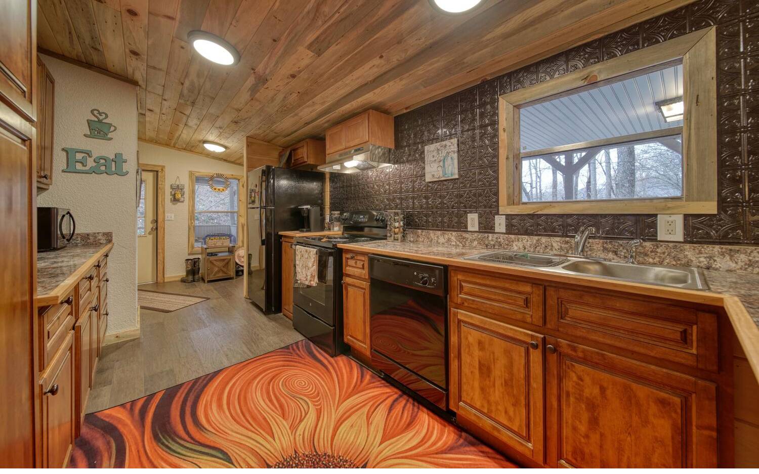 Gorgeous cabin well maintained nestled amidst 1.85 acres of picturesque, level terrain! This 2BR/2BA retreat offers the perfect blend of serenity and comfort. Inside, you’ll find stunning all wood floors that exude warmth and charm. Master bedroom and the Laundry is on the main level. Open Living