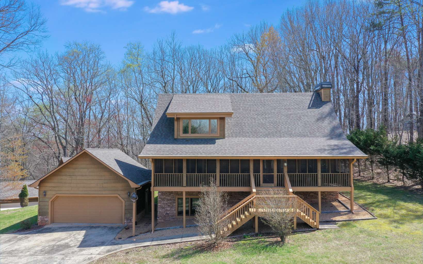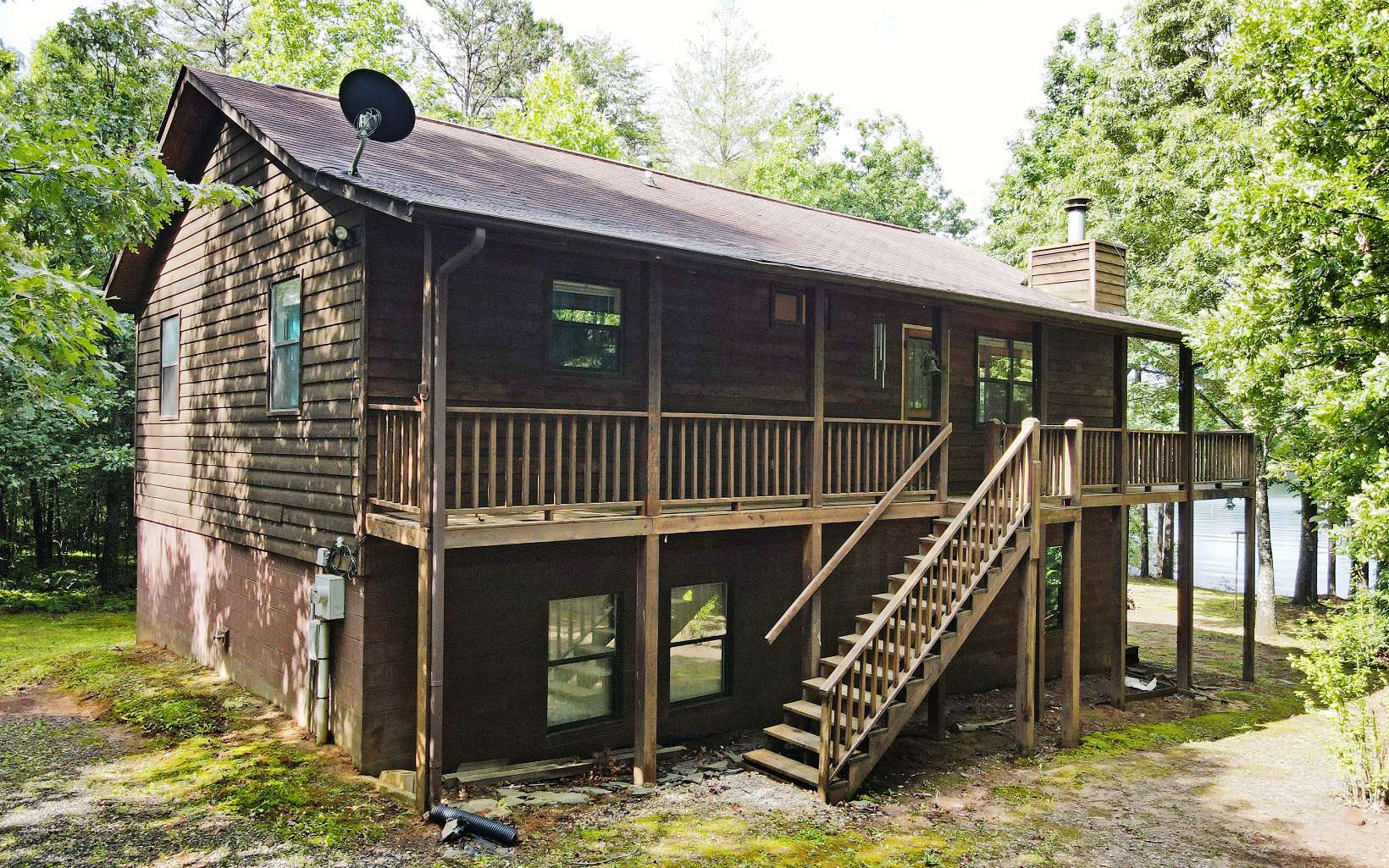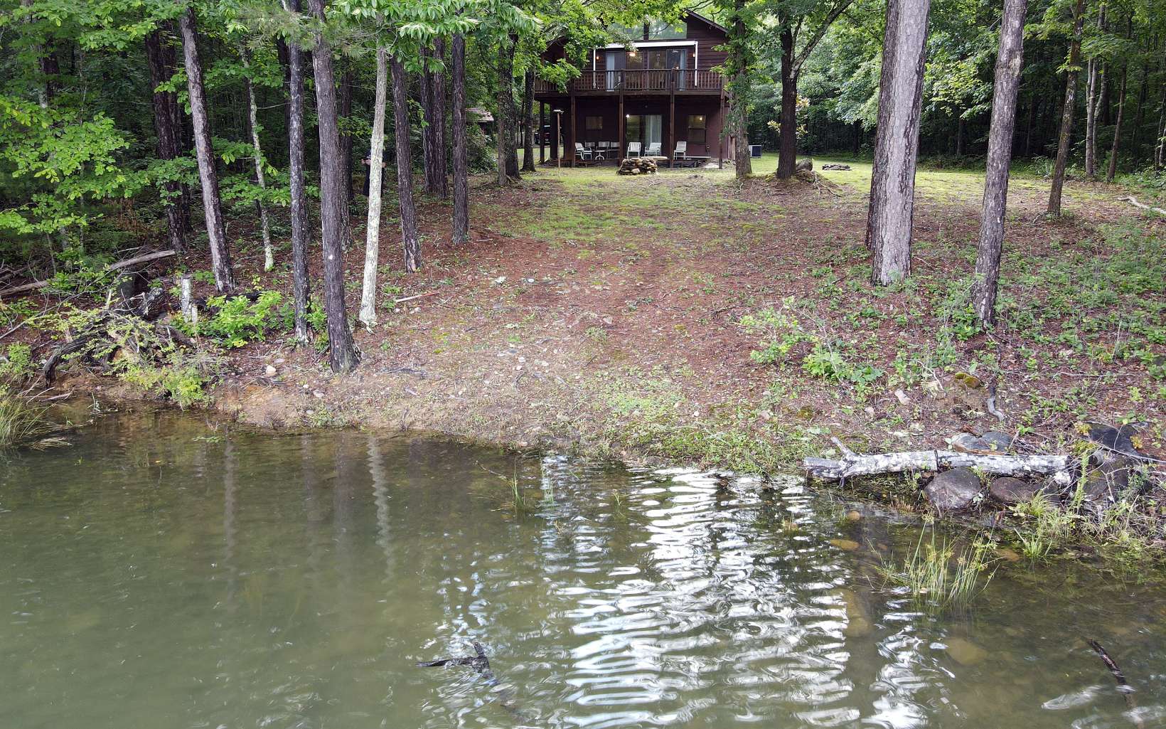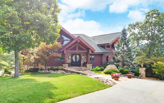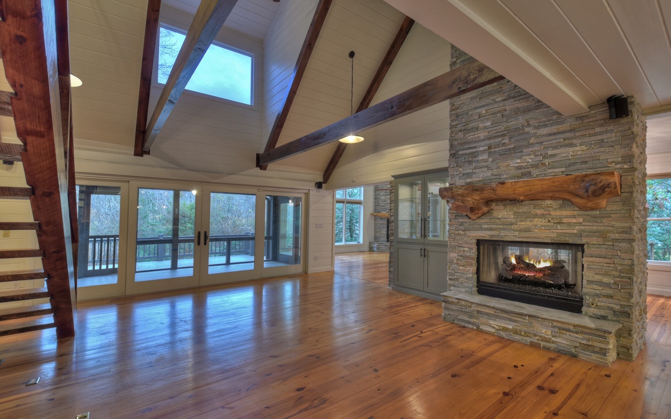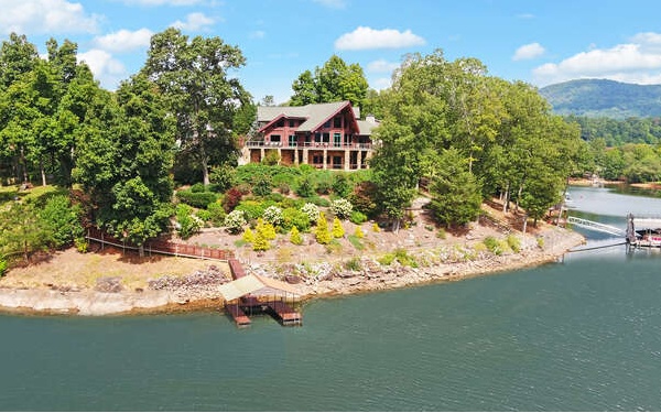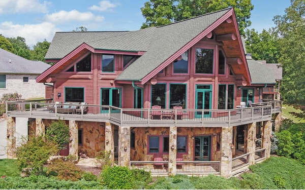 **Beautiful, large lakefront home on Lake Chatuge with wonderful view. Three-level lodge with large log post & beam interior, wood floors, wood walls, fireplace, and open kitchen with granite counters. Master on Main Level plus 2 bedrooms on Upper Level and 1 bedroom on Lower Level.**Soaring ceiling