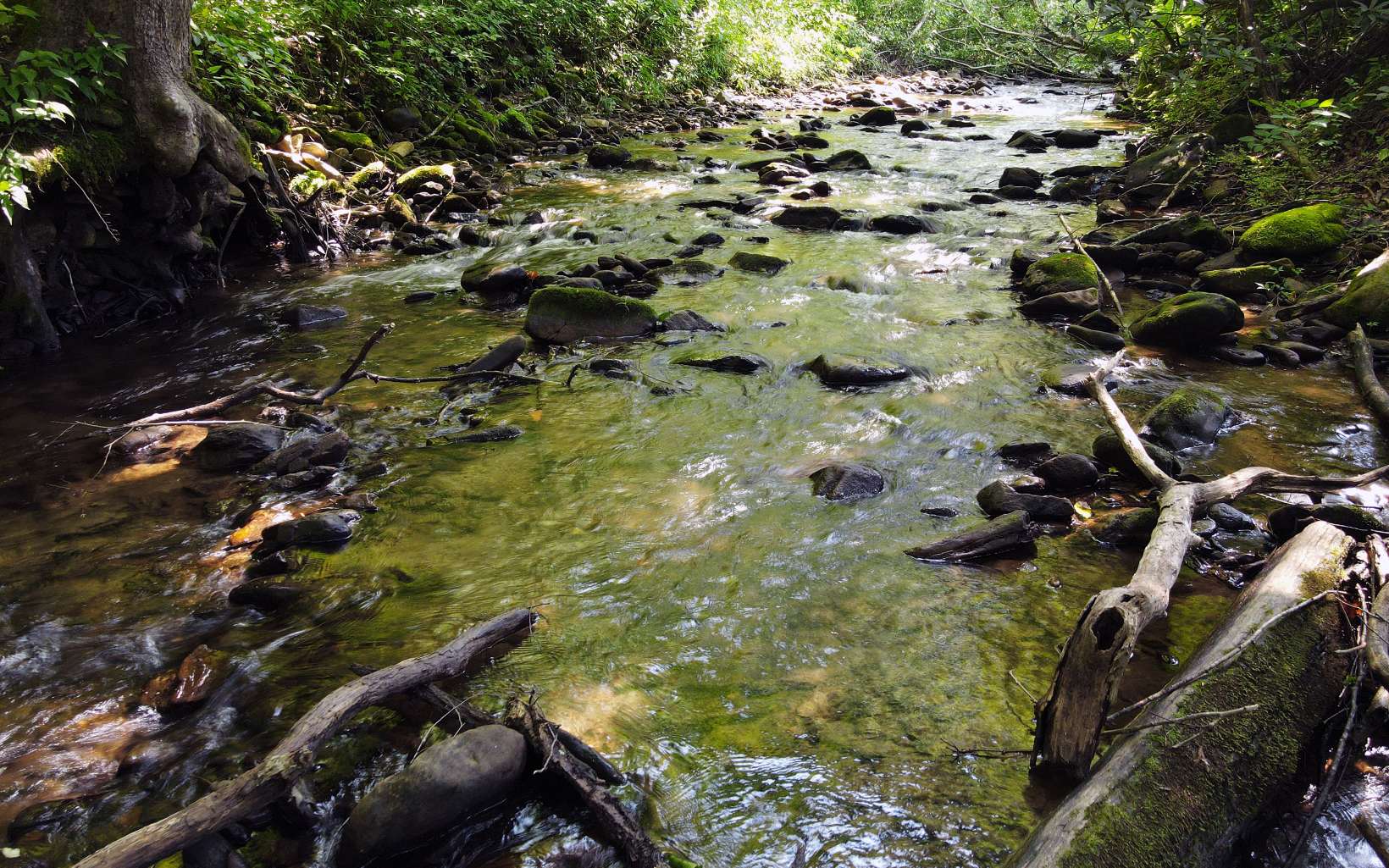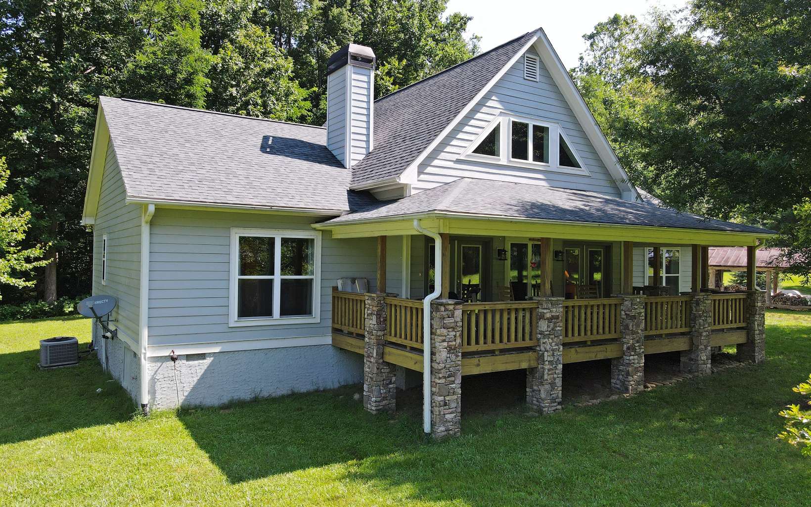 RUSHING CREEKFRONT! One Level home on approx 2 level acres with HUGH workshop/barn. Cathedral ceilings, wood floors, stone fireplace & end of road privacy. Sit On Your Covered Porch AND Enjoy Retirement!