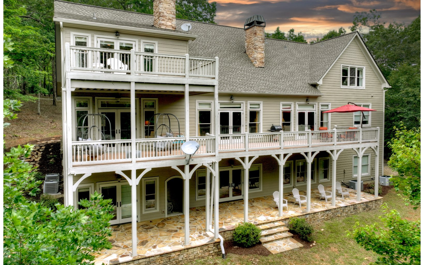 Prepare to be amazed by this stunning dream home nestled in the North GA mountains, offering seasonal mountain views & the soothing sound of Clear Creek flowing at the base of the property. Spanning across 7.24 acres, this 7,335 sqft. residence boasts 6 Br & 6 1/2 Bth. An oversized front covered por