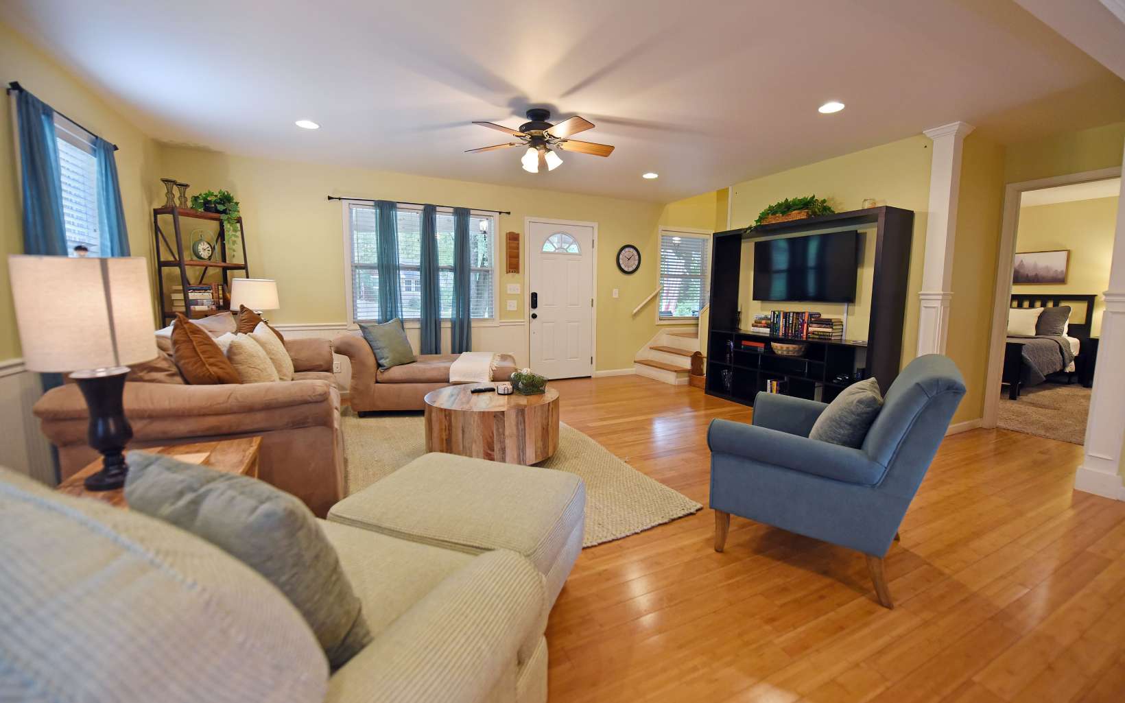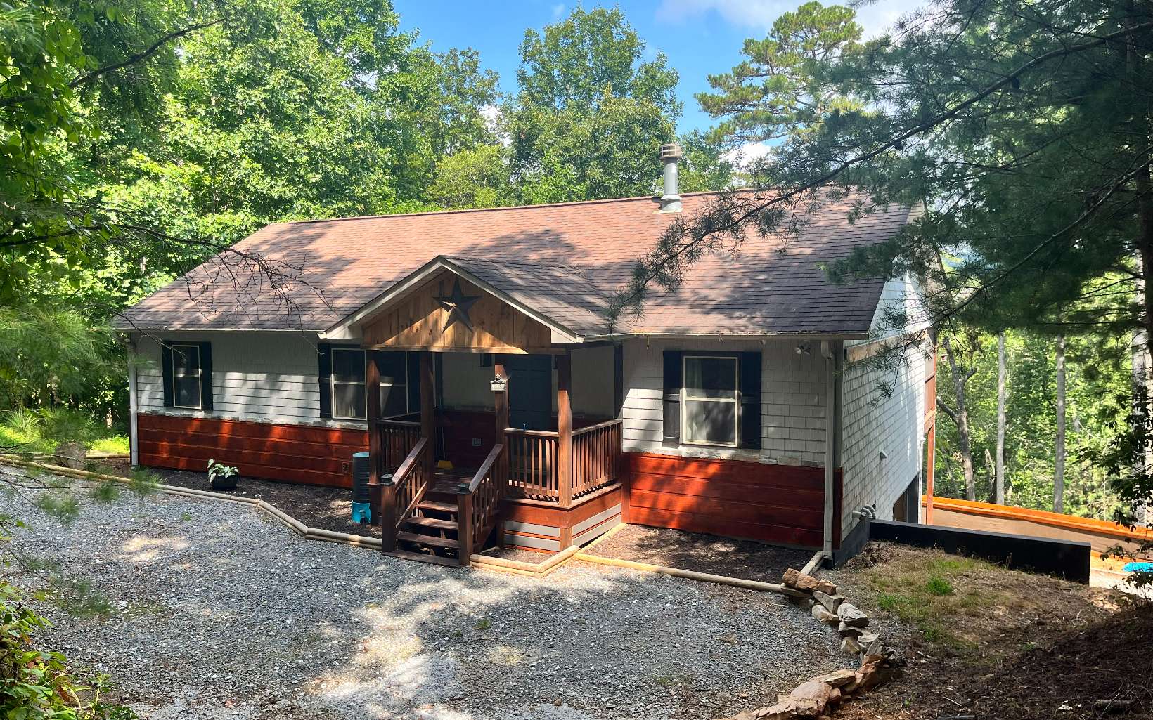 This is the low maintenance, close-to-town cabin that you've been looking for! 638 Twilight Lane offers comfortable and easy floor plan with vaulted ceilings in the living room, breakfast room, and kitchen with primary bedroom and guest bedroom on the main floor. Screened in porch offers year around