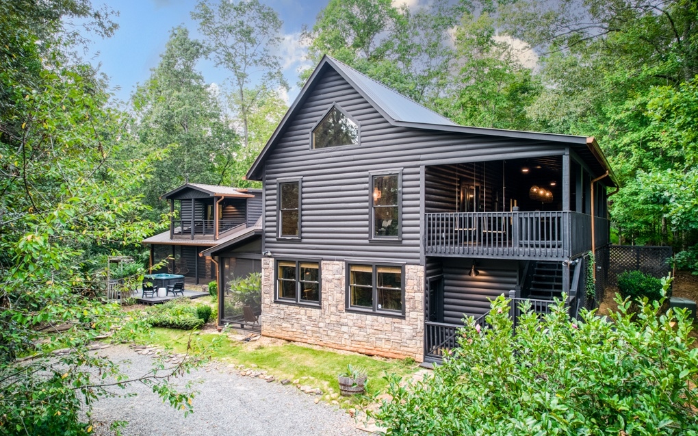 This Gorgeous, one of a kind, property is the perfect getaway in the Mountains of North Georgia and now offered with 5 acres! Whether you want a self sustainable homesteading farm or your very own private oasis to escape the hustle and bustle of the city, this one is for you! Conveniently situated b