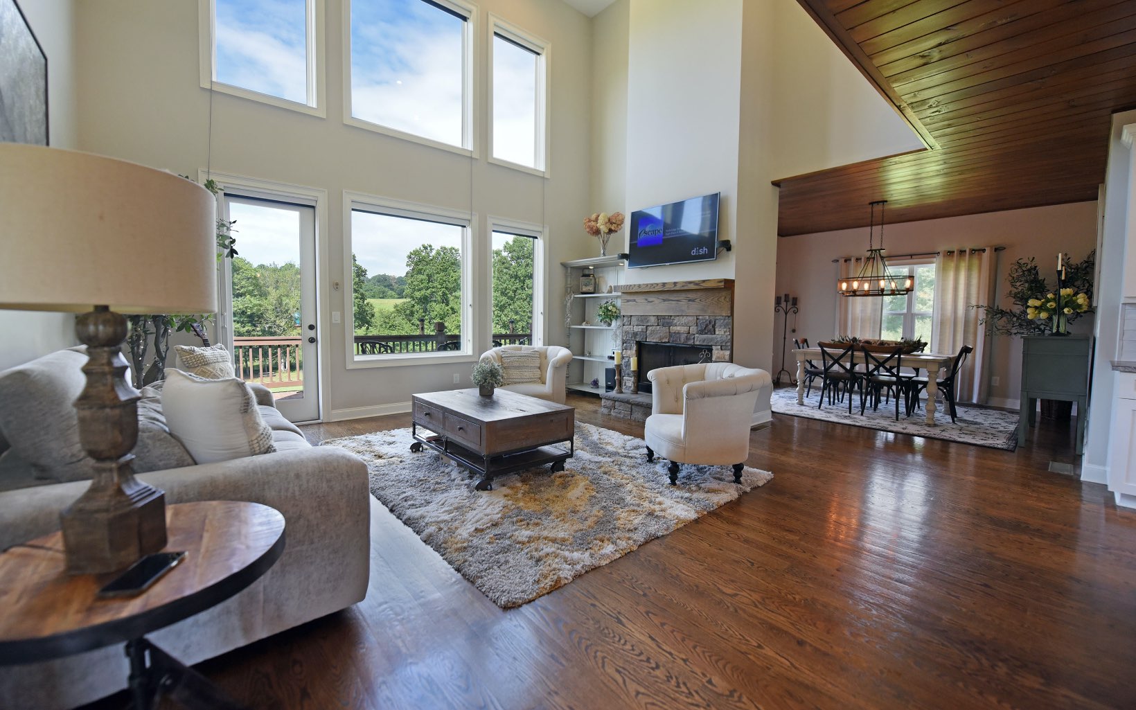 Refined Rustic Flair with Contemporary Lines & Modern Motif...this 3 bedroom/3.5 bath stunning property is nestled on gentle wooded tract with long range mountain & pastoral views...warm wood finishes with light drywall, plentiful glass & soaring ceilings, industrial and distressed finishes with sle