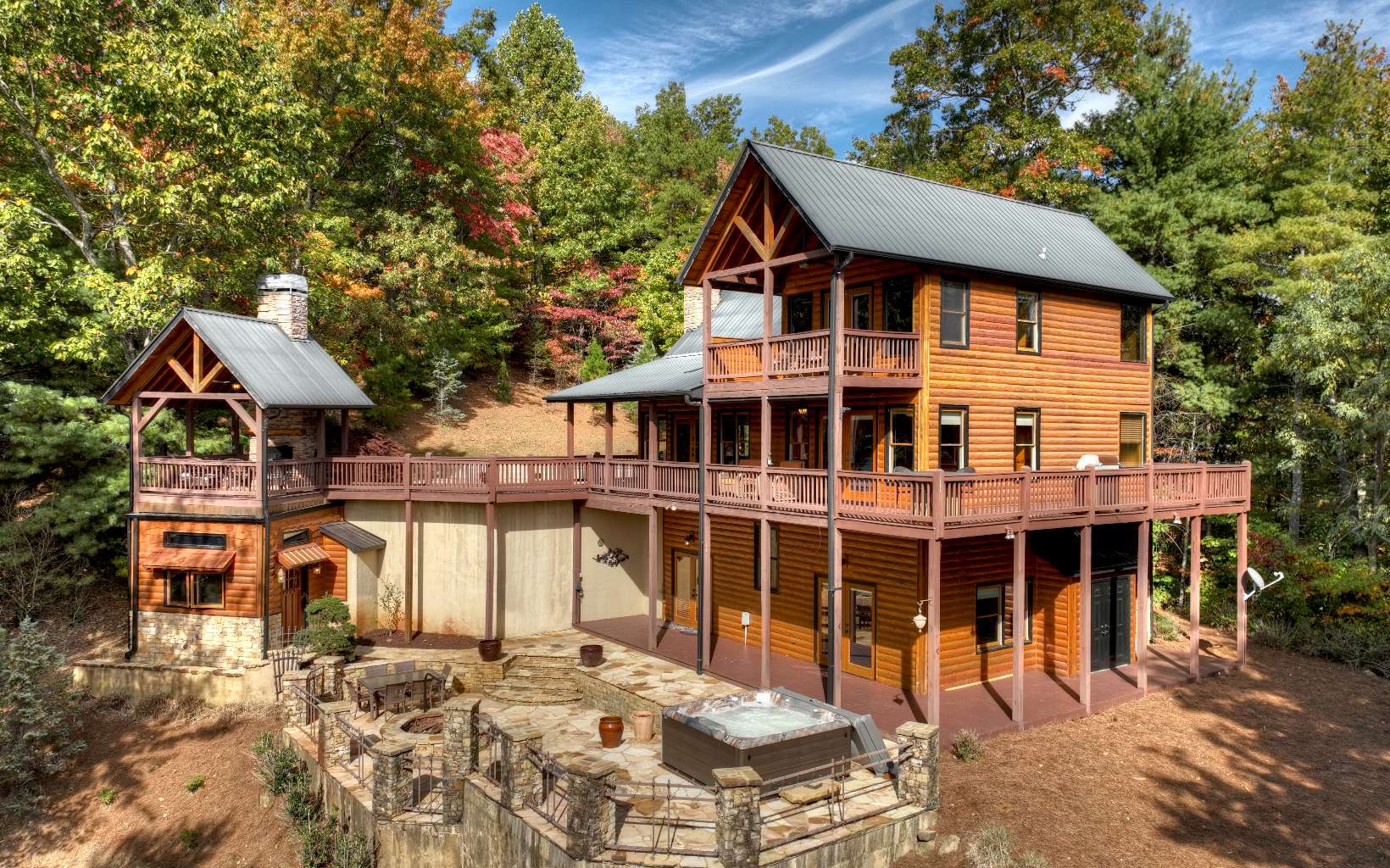 Located in The Highlands of Blue Ridge, this stunning custom-built cabin overlooks the beautiful North Georgia Mountains with incredible long-range views. The large foyer welcomes you inside to the beautiful great room with stone fireplace and cathedral ceilings. A true cooks kitchen and dining area