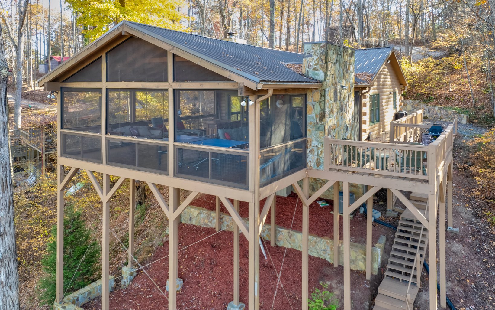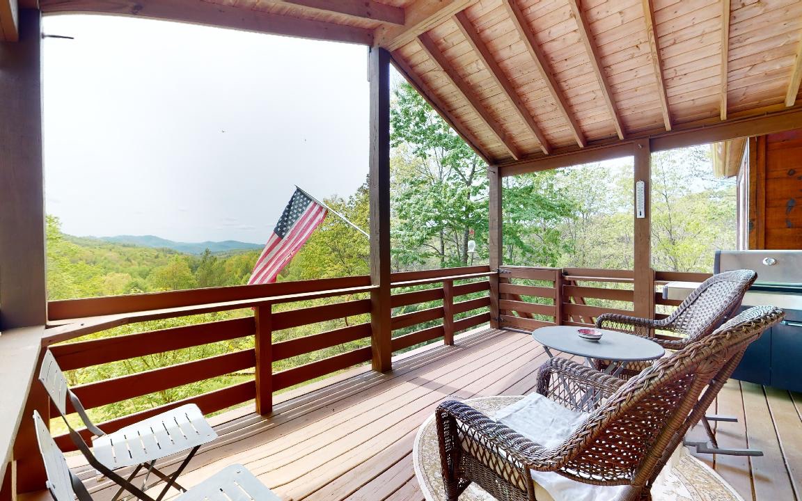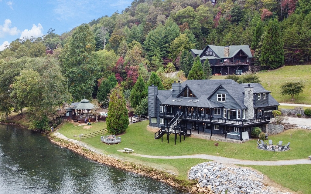 Incredible million dollar views from Brasstown Heights! This home has been customized for the ultimate retreat. You can practically live on the screened in porch (over 700 sq feet) with an outdoor fireplace! Open covered deck for unobstructed views. Second Structure is a raft room and workshop . The