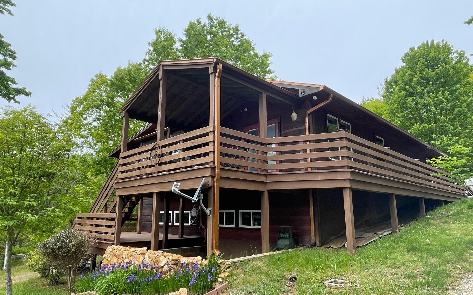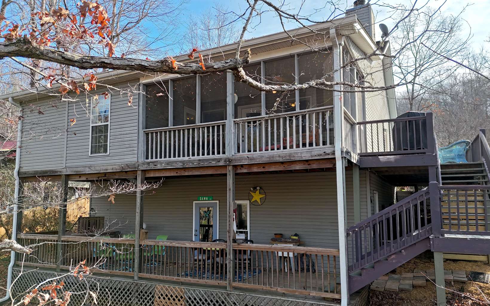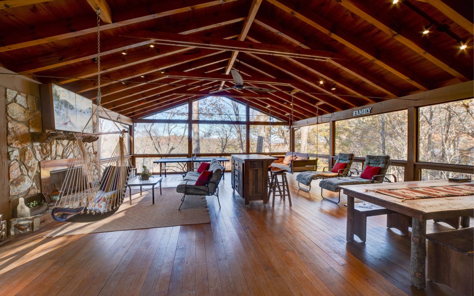 Incredible million dollar views from Brasstown Heights! This home has been customized for the ultimate retreat. You can practically live on the screened in porch (over 700 sq feet) with an outdoor fireplace! Open covered deck for unobstructed views. Second Structure is a raft room and workshop . The