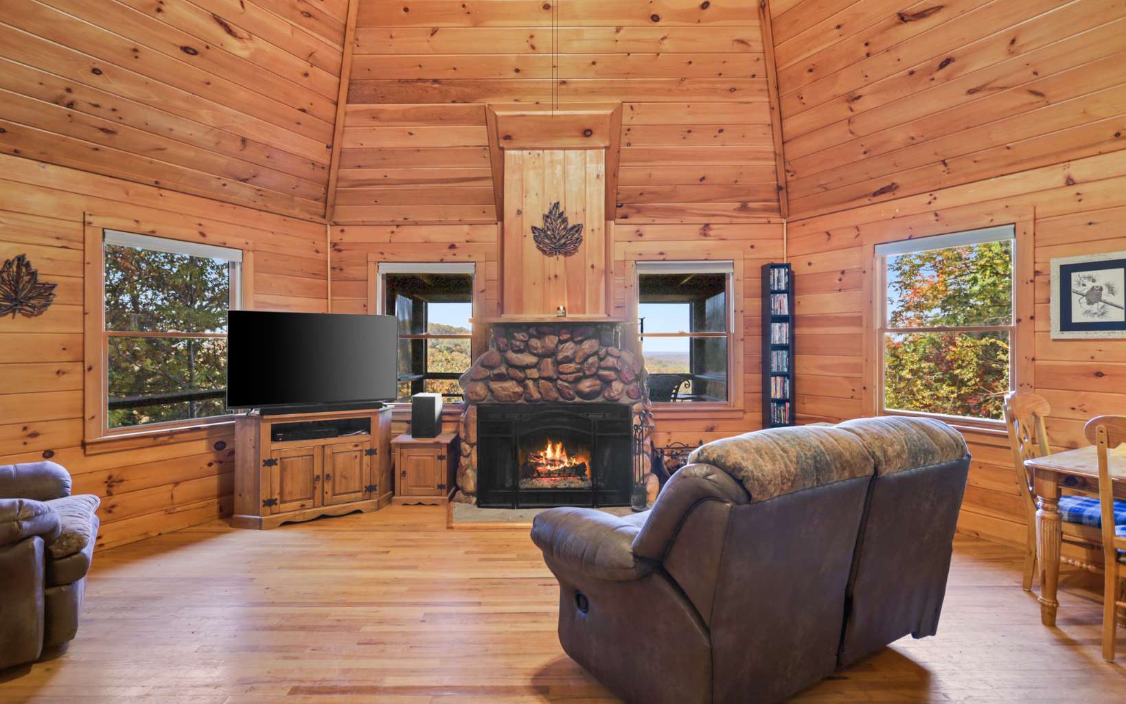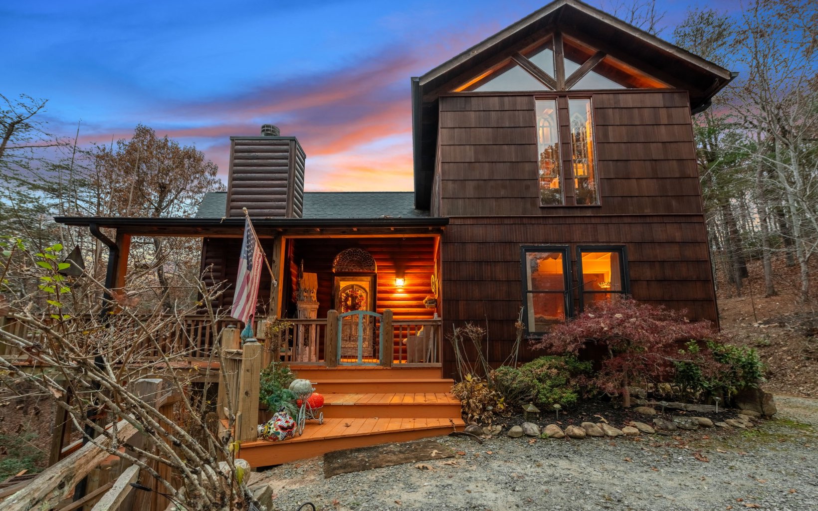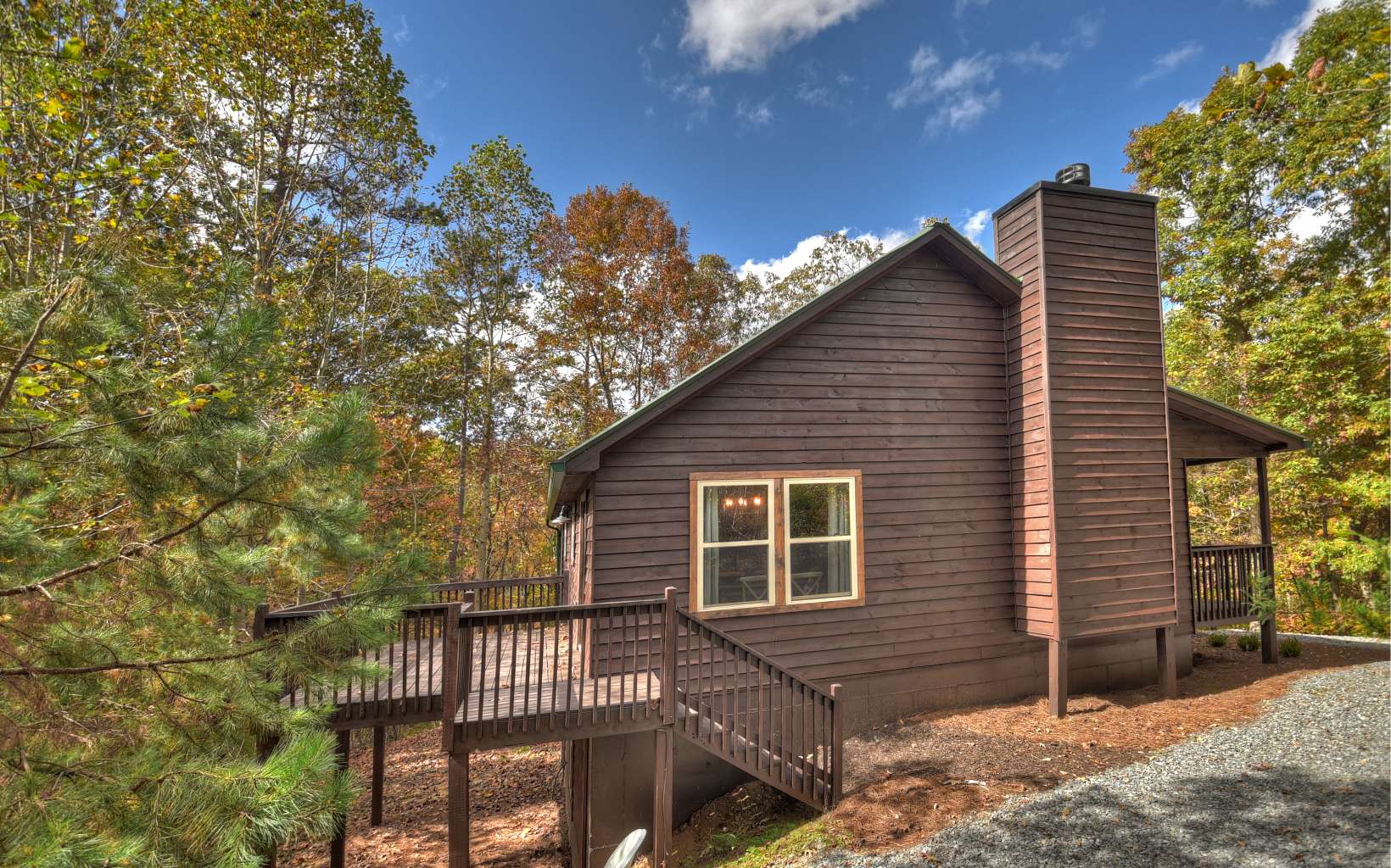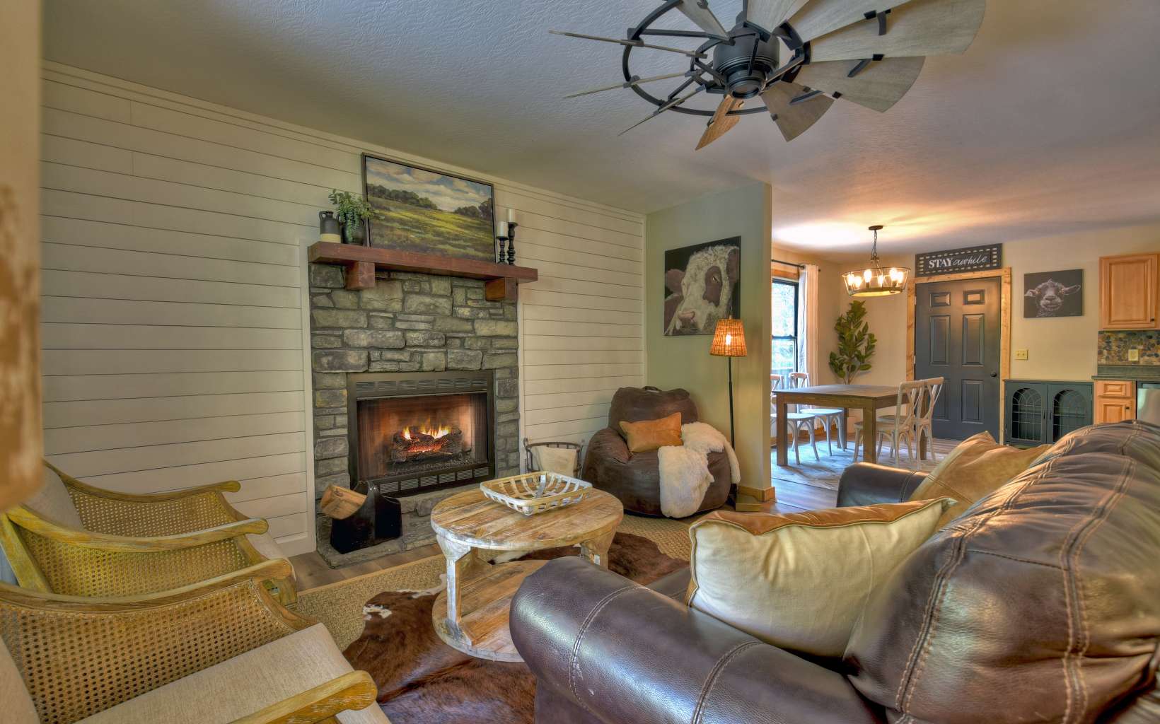 "Red Bird, Take Me Home!" -- situated within lush forestry and less than seven minutes to Downtown Blue Ridge, this contemporary rustic chalet makes for the perfect retreat! Complete with two levels of open-concept living, stacked stone fireplaces inside and out, large outdoor fire pit, jacuzzi spa
