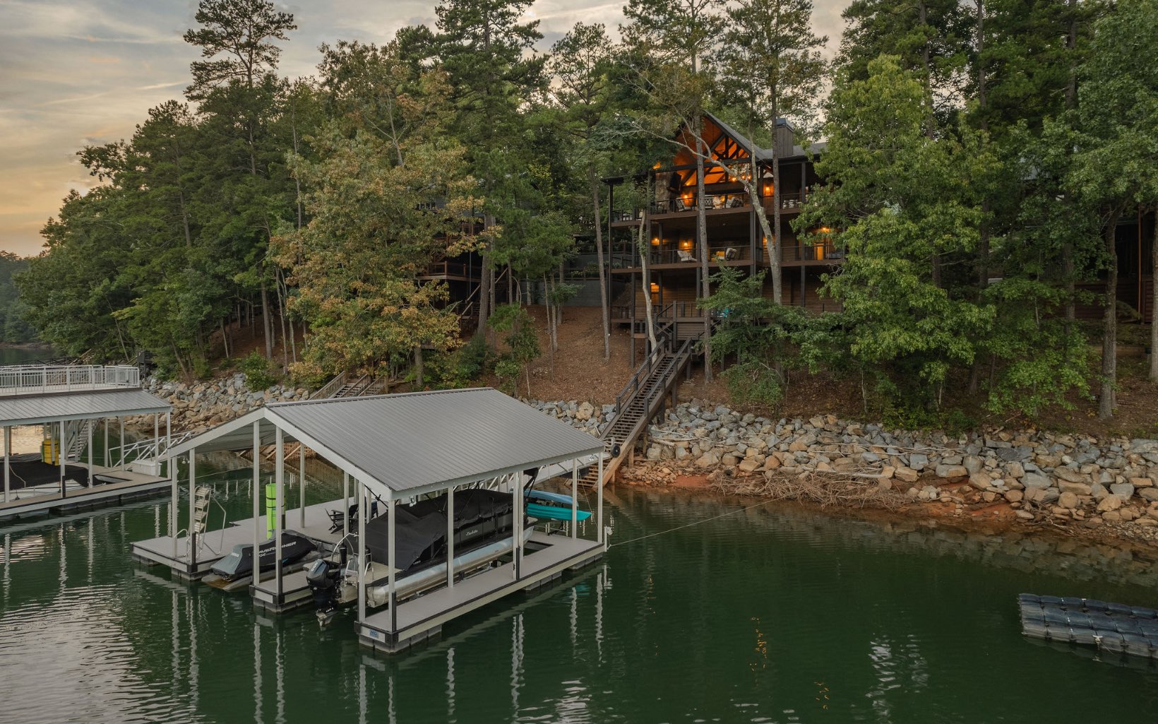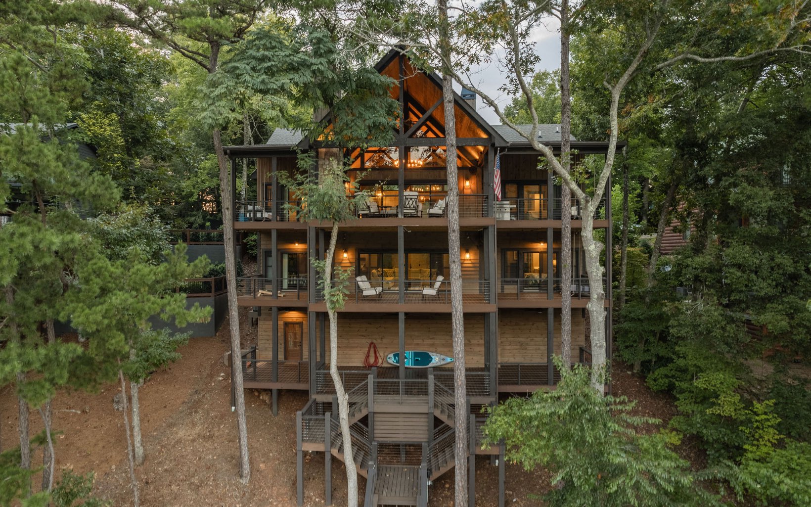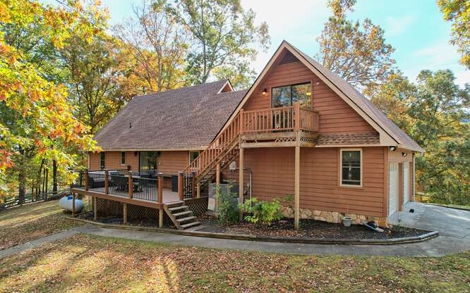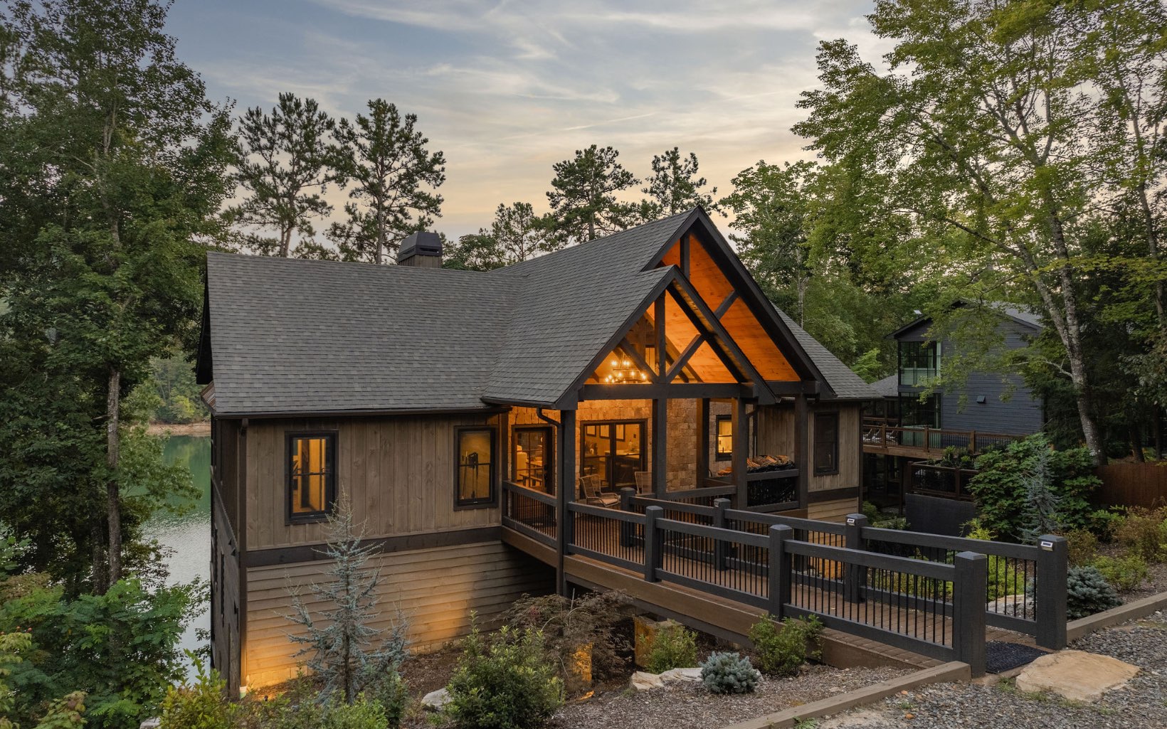 Lakefront serenity & solitude in the Cohutta Wilderness. A secluded mountain home on over 4 AC of land bordered by 20,000 AC of National Forest. Ultimate privacy & relaxation in this European-style home nestled among mountain viewpoints in the small gated community of Hills Lake. The warm stacked st